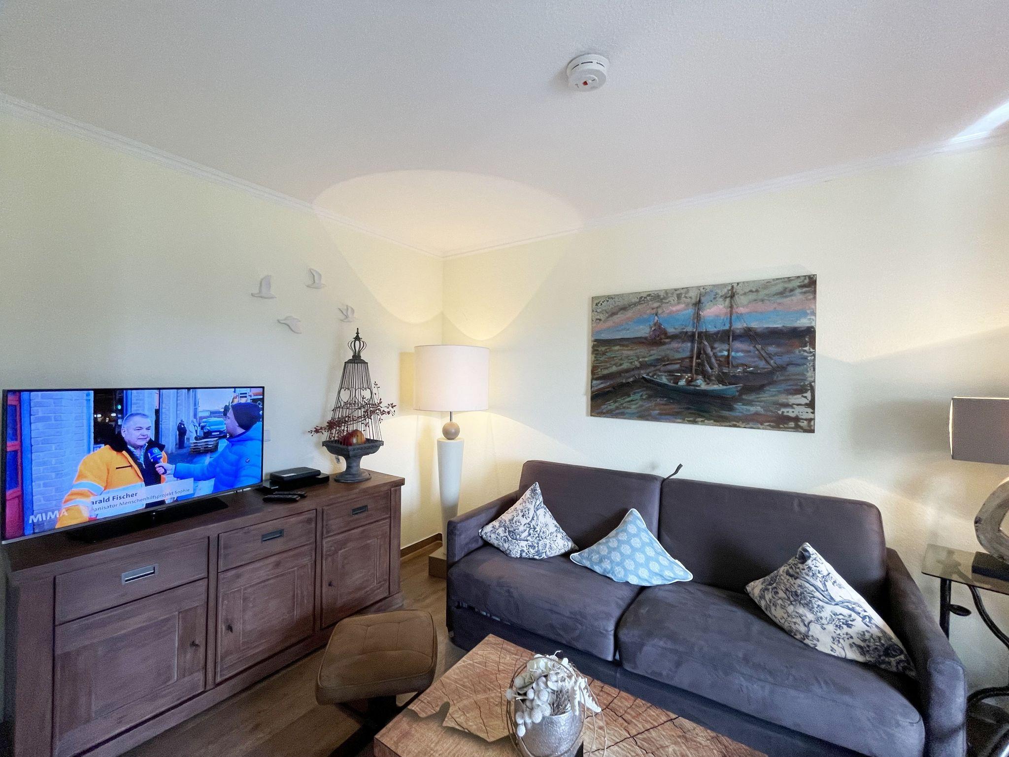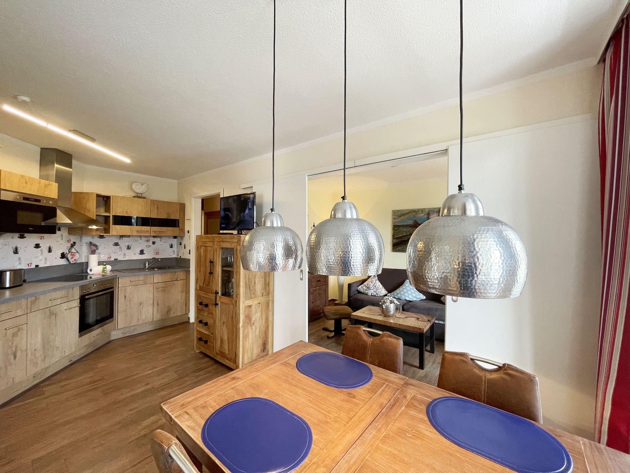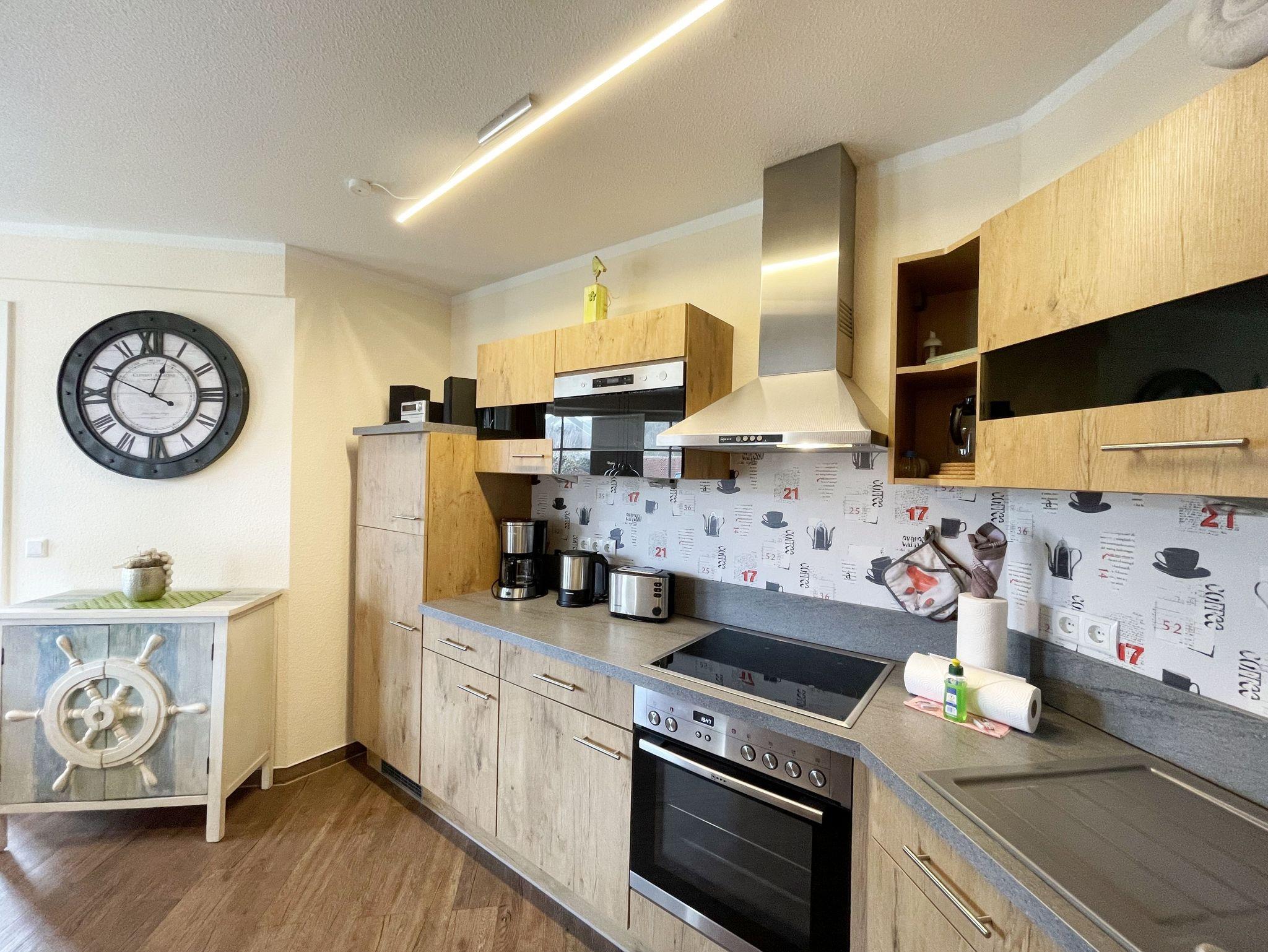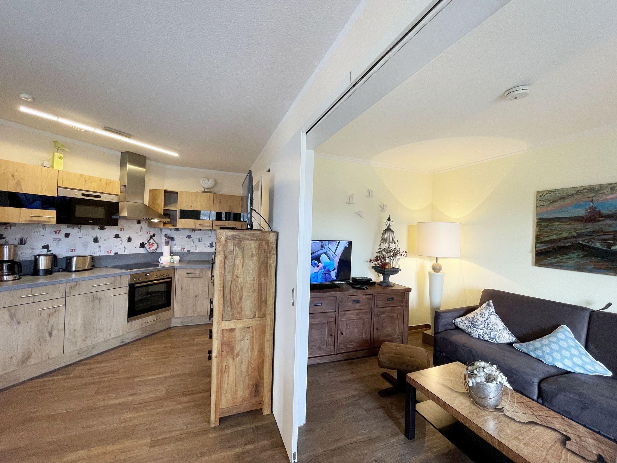 Die gemütlich eingerichtete Nichtraucherwohnung befindet sich in der 1. Etage des Hauses Südperd im Seepark Sellin. Durch die ca. 52 qm große Wohnfläche bietet Sie ausreichend Platz für max. 2 Personen. Der Wohn-/ Essbereich ist mit Schiebetüren voneinander abtrennbar. Der Essbereich verfügt über eine Einbauküche mit Induktionsceranfeld, Spüle, großen Kühl-und Gefrierschrank, Spülmaschine, Mikrowelle, Backofen, Kaffeemaschine, Toaster, Wasserkocher sowie diversen Küchenutensilien. Angrenzend haben Sie einen hellen und gemütlichen Essbereich, der nicht nur für die Mahlzeiten zum Verweilen einlädt. Zusätzlich haben Sie eine Leselampe, ein Highboard mit Smart-TV und Mini-Stereo-Anlage. Ein 2. TV-Flachbild (40?) steht im Wohnbereich zur Verfügung, ebenso ein Blu-Ray-Player. Im Wohnbereich passt sich eine Couch, 1 Sessel, ein Couchtisch sowie eine Anrichte dem Raum an. Das geräumige Schlafzimmer bietet Ihnen ein Doppelbett (2 x 0,90 m x 2,00 m), verstellbare Lattenroste, Nachtischkonsolen und Kleiderschrank. Vom Schlaf-/Ess- & Wohnbereich können Sie den bestuhlten Balkon (Südosten) erreichen. Das Badezimmer ist in 2 Räume aufgeteilt, wo sich in einem der Räume eine ebenerdige Glasdusche sowie ein Waschtisch mit Fön sowie eine Waschmaschine befindet und in einem weiteren Raum das WC mit kleinem Waschbecken. Beide Badezimmer sind gefliest. Alle anderen Räumlichkeiten sind mit einem Vinylboden verlegt worden. Ein eigener PKW-Stellplatz (43) steht Ihnen in der Tiefgarage (Höhe 2,00m) zur Verfügung sowie auch eine Fahrradabstellmöglichkeit. Auch im Urlaub brauchen Sie in Ihrer Wohnung nicht auf einen Internetanschluss (WLAN) zu verzichten. Dieser ist für Sie inklusive!!! Für unsere kleinen Gäste ist 1x Kinderreisebett mit zusätzlicher Matratze (ohne Bettinlett) inklusive. 2 kleine Hunde oder 1 Kniehoher Hund (keine Katzen) sind gegen eine Gebühr gern gesehene Gäste in der Wohnung. Die Erstausstattung eines Wäschepaketes (komplette Bettwäsche, 1 Duschhandtuch, 2 kleine Handtücher) können Sie bis 14 Tage vor Anreise gegen einen Aufpreis dazu buchen oder durch eigene ergänzen. Ab 2 gebuchten Paketen erhalten Sie einmalig 1 Geschirrhandtuch und 1 Duschvorleger hinzu.