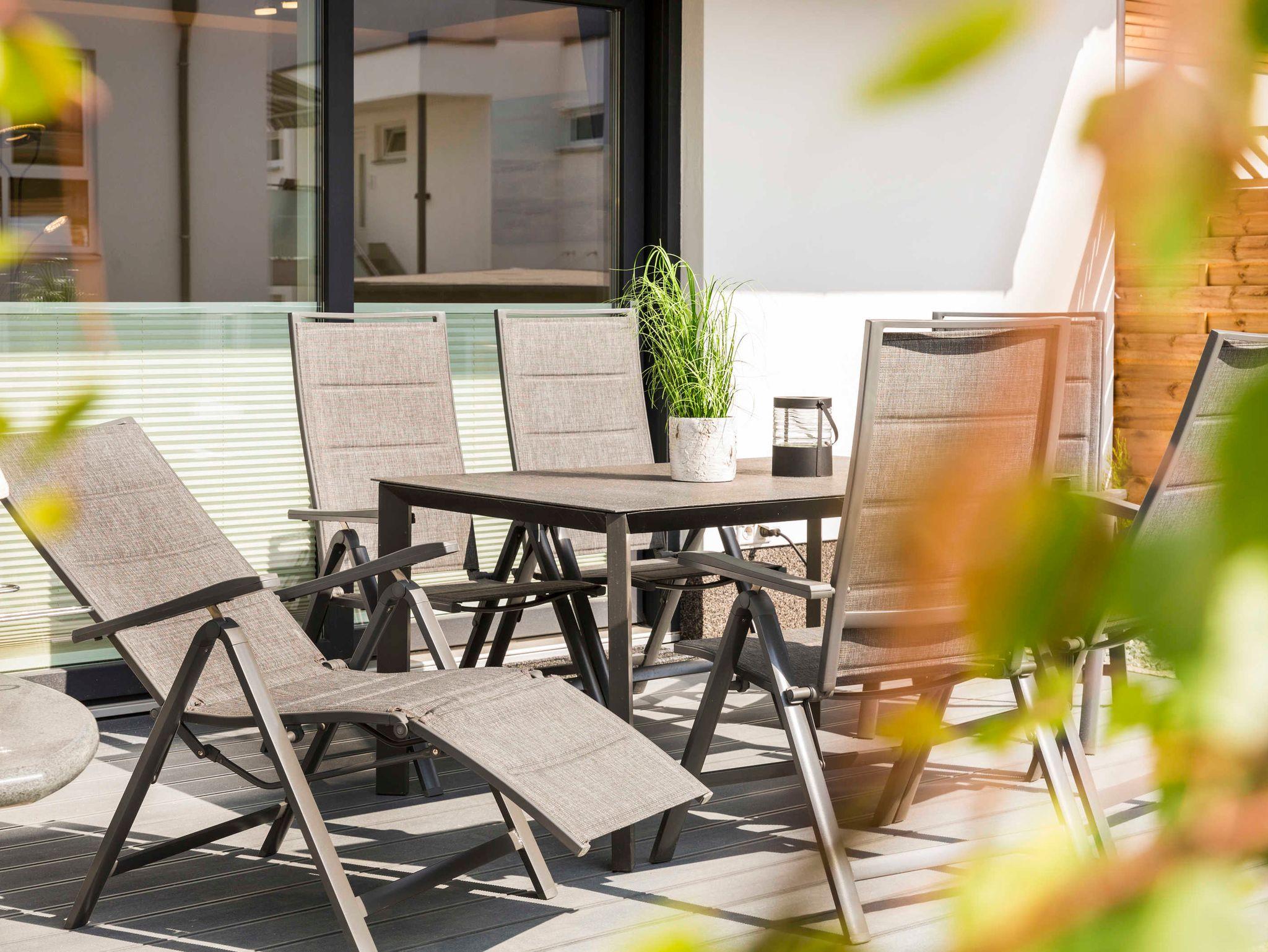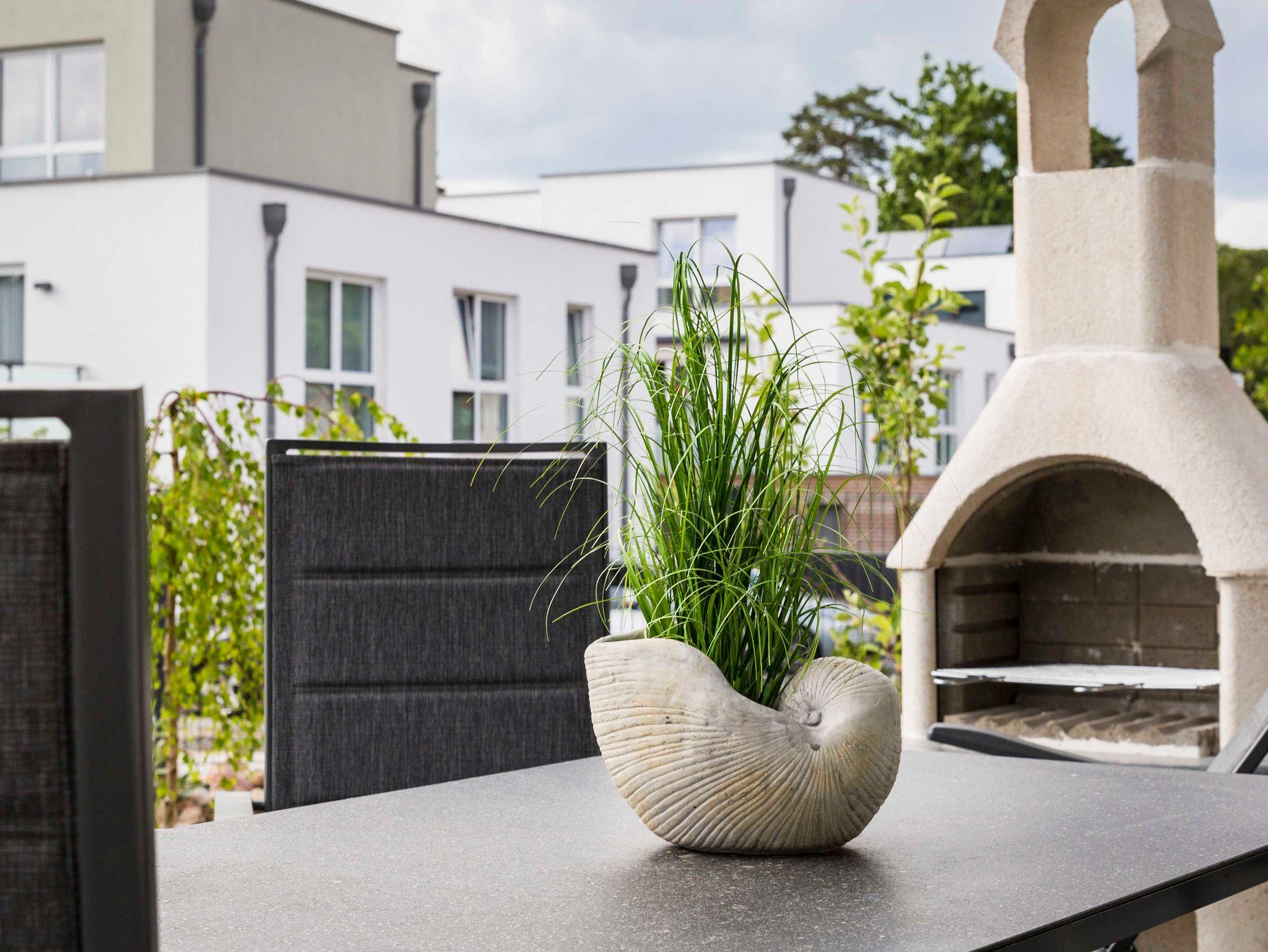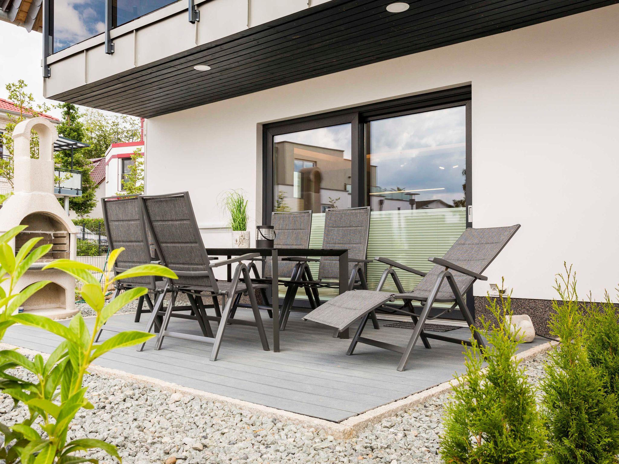 Allen 3 Ferienwohnungen stehen jeweils eine große Terrasse mit Sitzgruppe, Sonnenschirm und massiver Grillkamin zum gemütlichen Verweilen zur Verfügung.