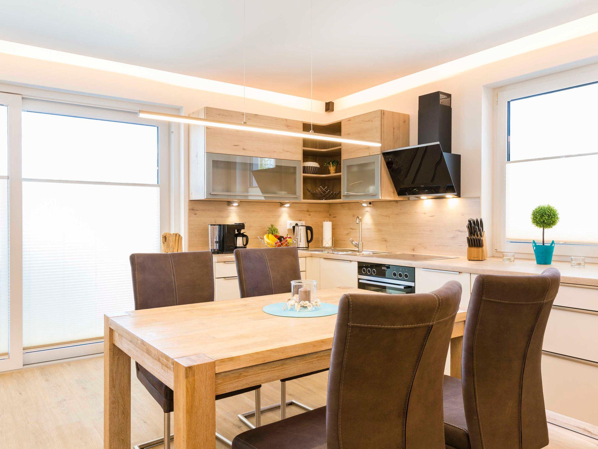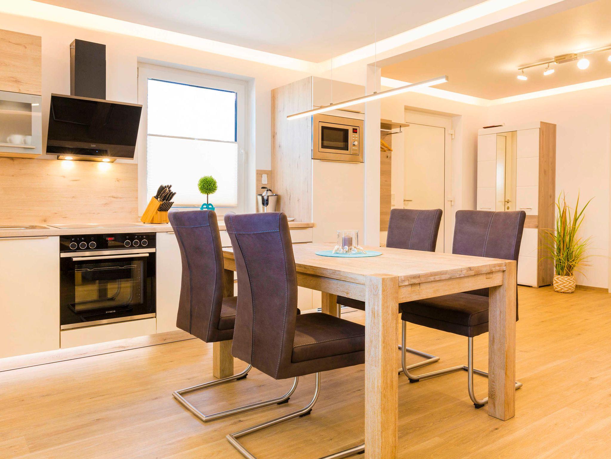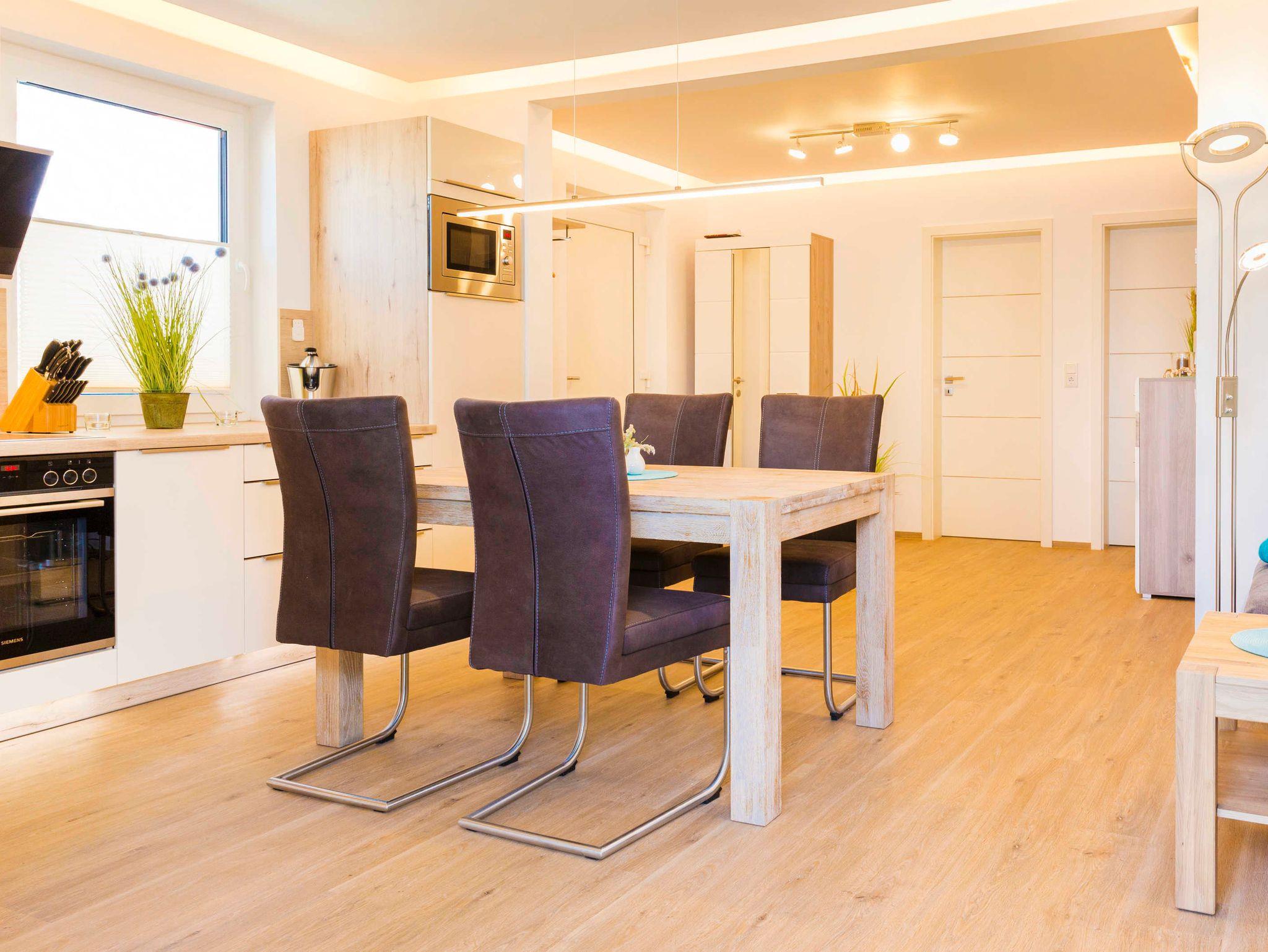 Die komfortabel eingerichtete Nichtraucher-Ferienwohnung befindet sich im Erdgeschoss vom Haus „Meeresleuchten“ und bietet mit ca. 68 m² ausreichend Platz für 4 Erwachsene. Durch den ebenerdigen stufenlosen Eingangsbereich ist es auch für Menschen mit Gehbehinderung leicht zugänglich.