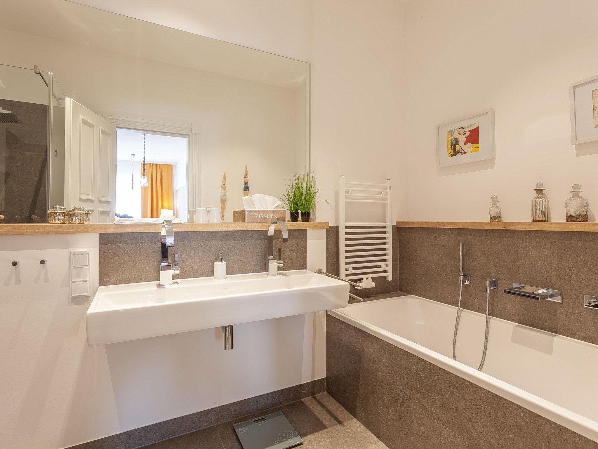 Die Ferienwohnung [at] HOME verspricht viel. Es lädt durch seine überdachte Loggia, bequemen Gartenmöbel und einem traumhaften seitlichen Meerblick zum Verweilen ein. Das 90 qm große Appartement überzeugt durch den offenen Wohnbereich und eine hochwertige Einbauküche. Das Schlafzimmer lädt mit seinem 180x200 cm großen Boxspringbett zum Träumen ein. Hier besteht die Möglichkeit einer Aufbettung zur dritten Person durch ein separates Boxbett (90x200 cm). Selbstverständlich lässt das angrenzende Badezimmer mit bodentiefer Dusche und Badewanne keine Wünsche offen.