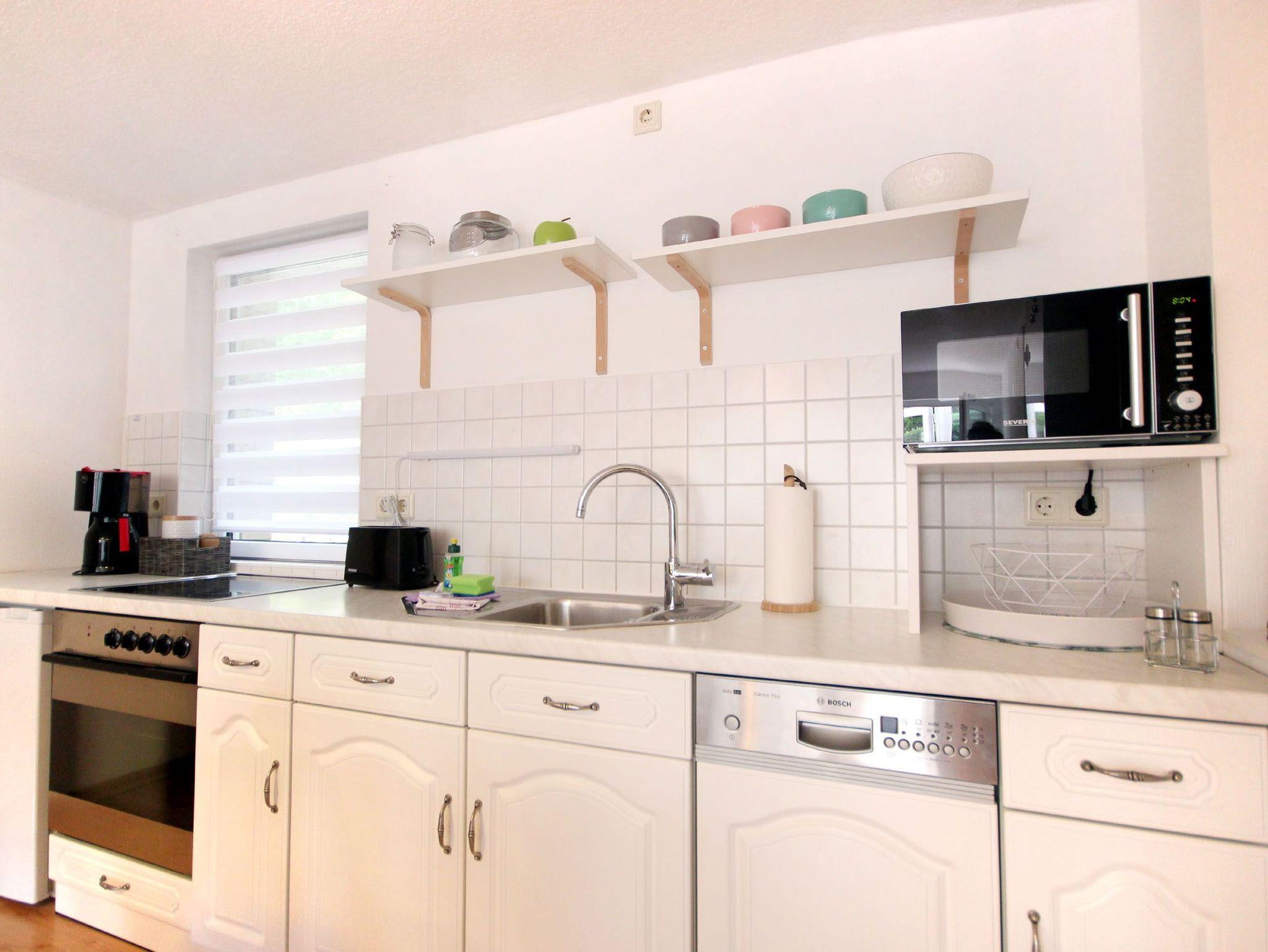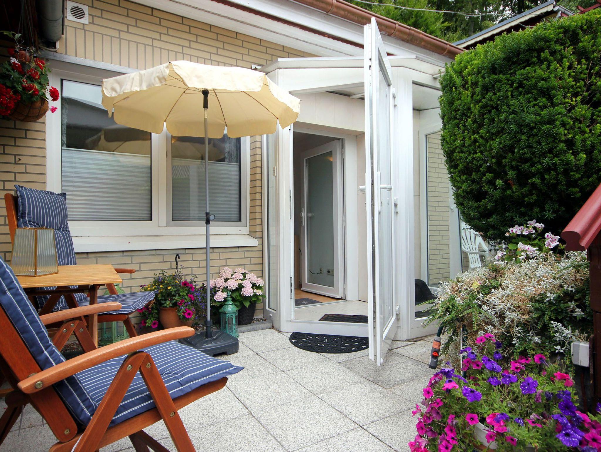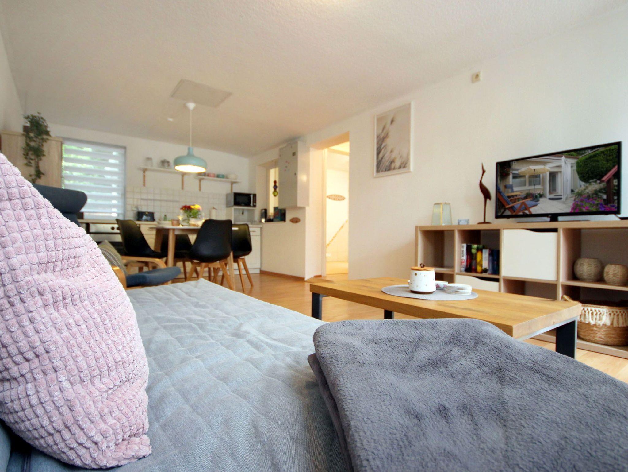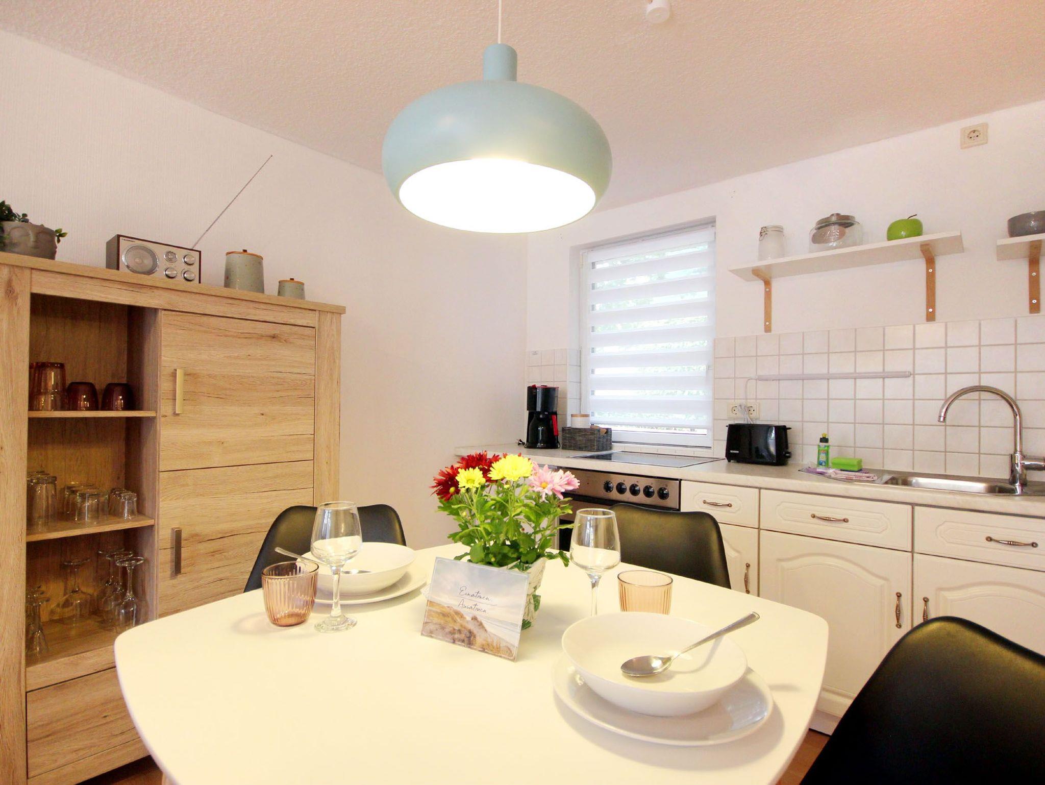Ihre moderne 2-Raum-Ferienwohnung 66RB1 Julia befindet sich im Erdgeschoss und bietet Ihnen auf ca. 45 qm2 genug Platz für bis zu 3 Personen (Nichtraucher). Eine kleine Südwest-Terasse mit Blick ins Grüne lädt zum Verweilen und Entschleunigen ein. Das Appartement teilt sich auf in einen gemütlichen Wohnbereich mit bequemer Sitzecke mit Schlafmöglichkeit für die 3. Person, Essbereich und Küchenzeile, ein Schlafzimmer sowie ein Tageslichtbad. Neben dem schönen Wohnraum mit Flachbildfernseher, WLAN und Radio, ist der Schlafraum mit einem Doppelbett, Kleiderschrank und einer Kommode ausgestattet. Die Küchenzeile mit Essplatz ist komplett mit Cerankochfeld, Backofen, Mikrowelle, Kühlschrank mit kleinem Gefrierfach, Geschirrspüler, Kaffeemaschine, Wasserkocher, Toaster und weiteren diversen Küchenhelfern eingerichtet. Im modernen Badezimmer erwartet Sie eine Dusche, WC und Fön. Zusätzlichen Stauraum für Ihr Gepäck oder Strandutensilien bietet der wohnungseigene Abstellraum. Ein Haustier ist hier herzlich willkommen (auf Anfrage wären auch zwei Haustiere möglich)! Ein PKW-Stellplatz steht Ihnen direkt am Objekt zur Verfügung.