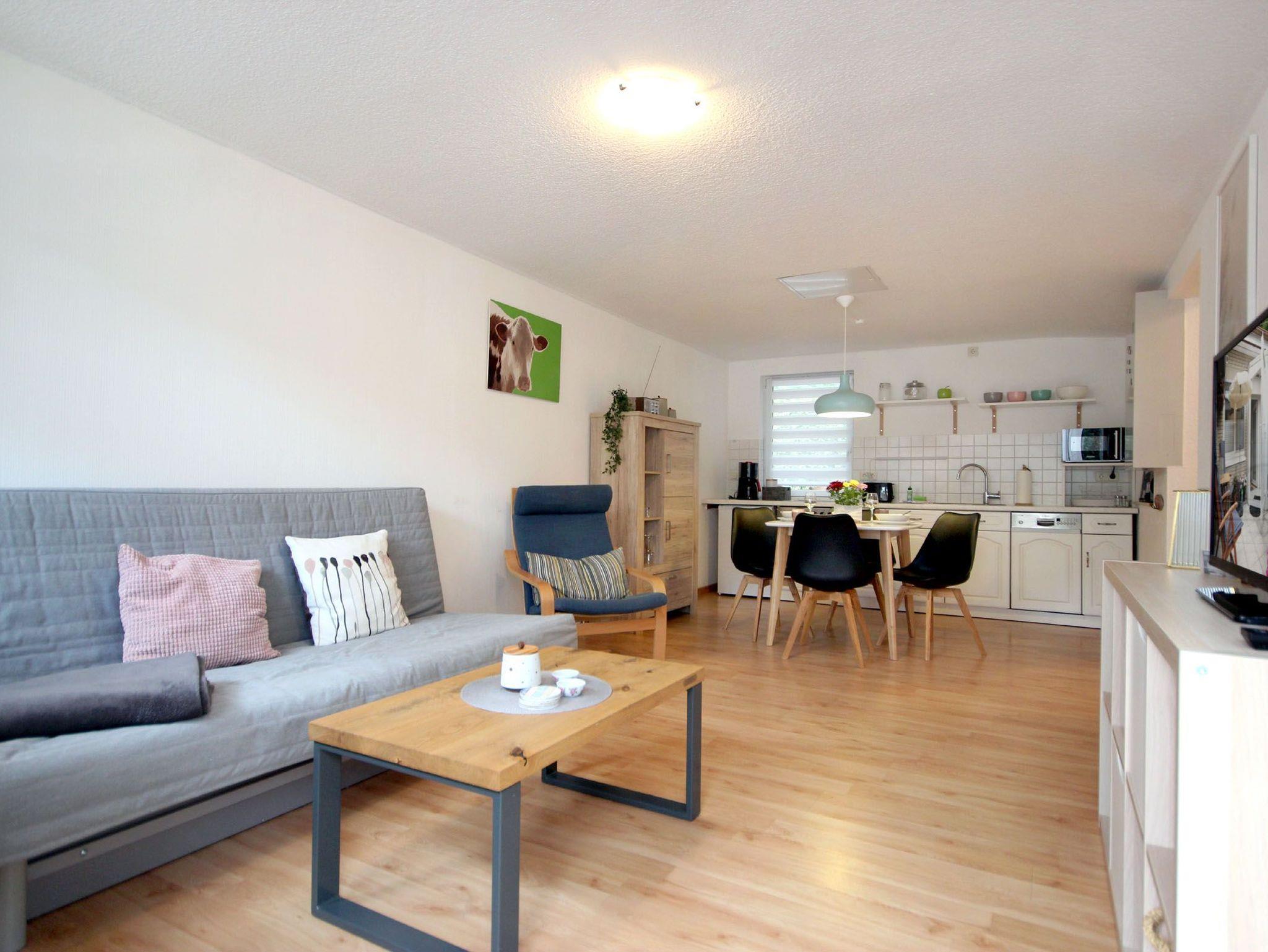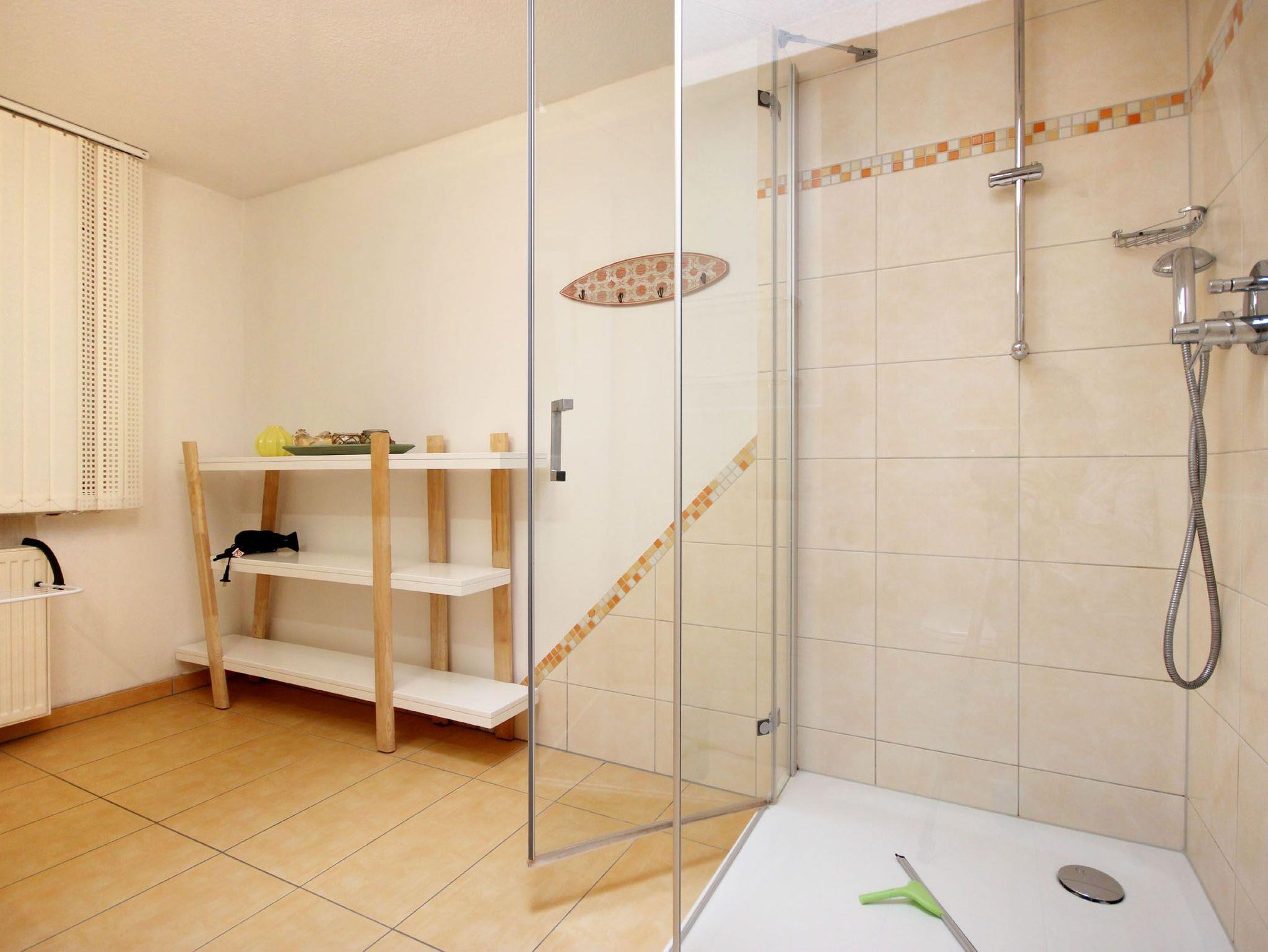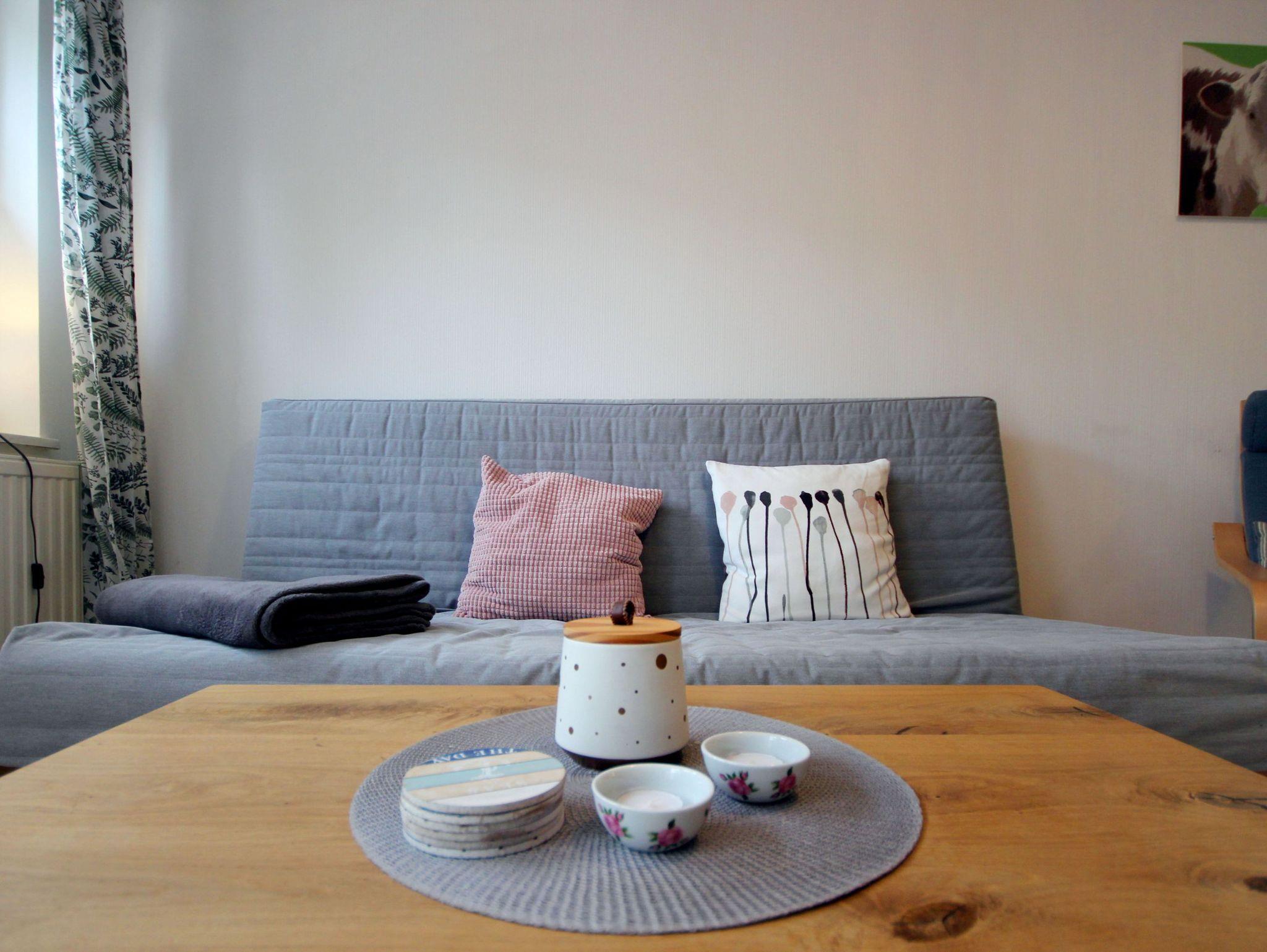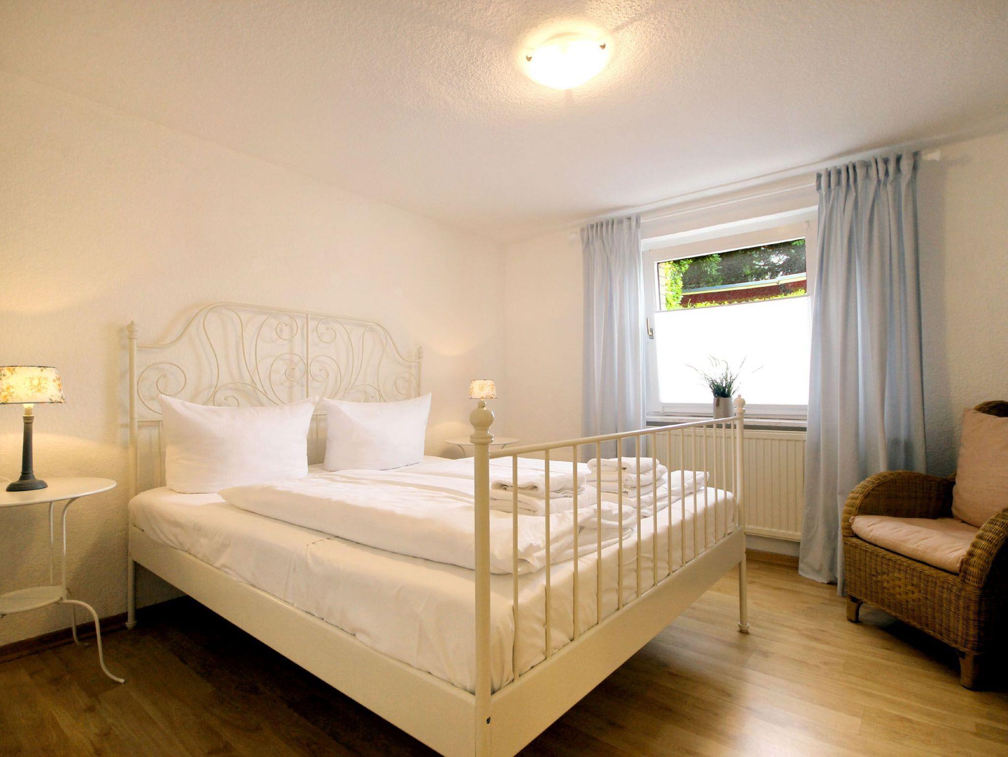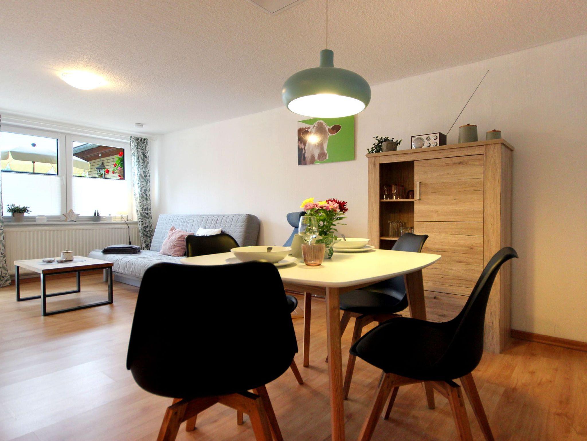 Ihre moderne 2-Raum-Ferienwohnung 66RB1 Julia befindet sich im Erdgeschoss und bietet Ihnen auf ca. 45 qm2 genug Platz für bis zu 3 Personen (Nichtraucher). Eine kleine Südwest-Terasse mit Blick ins Grüne lädt zum Verweilen und Entschleunigen ein. Das Appartement teilt sich auf in einen gemütlichen Wohnbereich mit bequemer Sitzecke mit Schlafmöglichkeit für die 3. Person, Essbereich und Küchenzeile, ein Schlafzimmer sowie ein Tageslichtbad. Neben dem schönen Wohnraum mit Flachbildfernseher, WLAN und Radio, ist der Schlafraum mit einem Doppelbett, Kleiderschrank und einer Kommode ausgestattet. Die Küchenzeile mit Essplatz ist komplett mit Cerankochfeld, Backofen, Mikrowelle, Kühlschrank mit kleinem Gefrierfach, Geschirrspüler, Kaffeemaschine, Wasserkocher, Toaster und weiteren diversen Küchenhelfern eingerichtet. Im modernen Badezimmer erwartet Sie eine Dusche, WC und Fön. Zusätzlichen Stauraum für Ihr Gepäck oder Strandutensilien bietet der wohnungseigene Abstellraum. Ein Haustier ist hier herzlich willkommen (auf Anfrage wären auch zwei Haustiere möglich)! Ein PKW-Stellplatz steht Ihnen direkt am Objekt zur Verfügung.