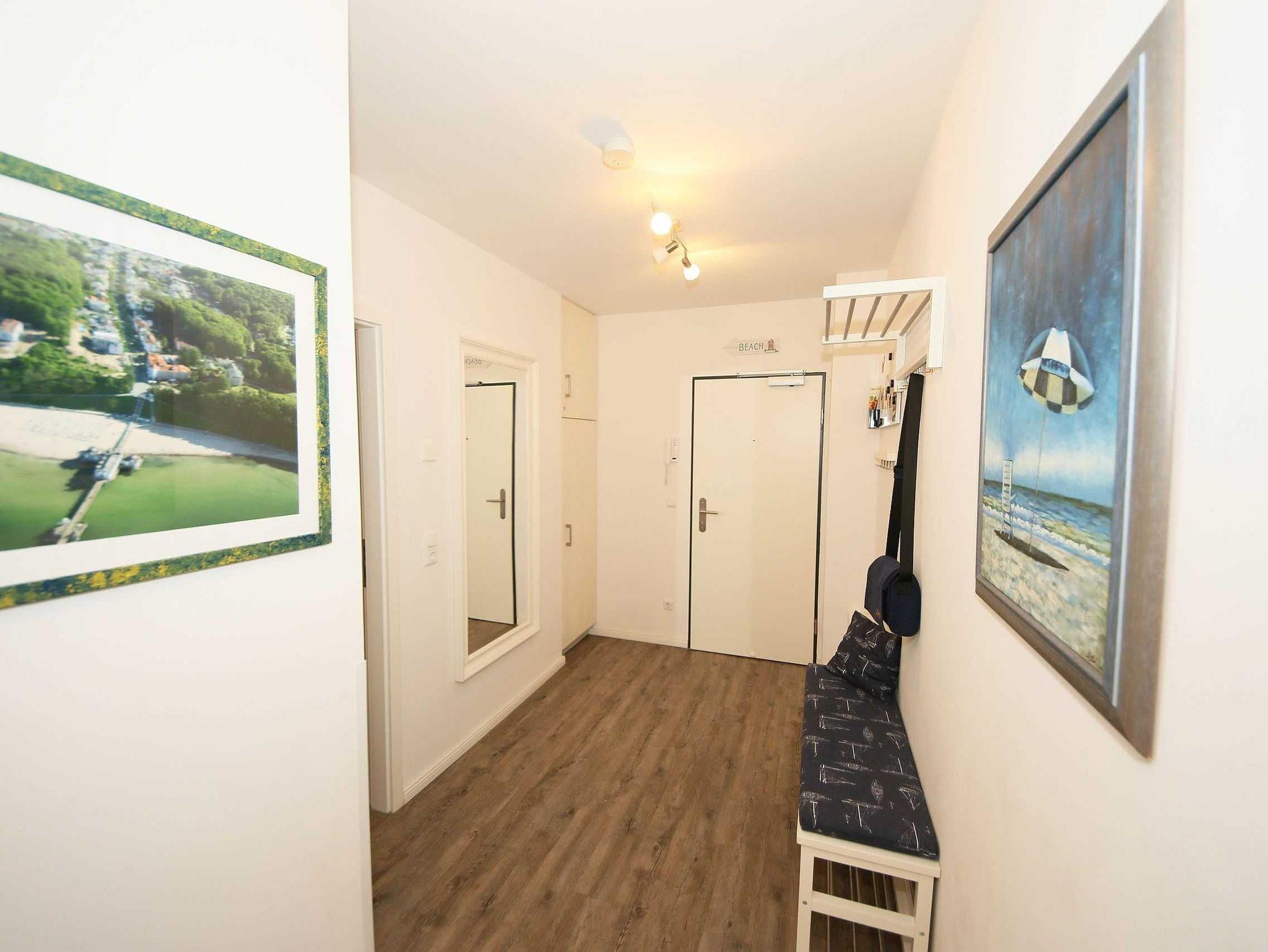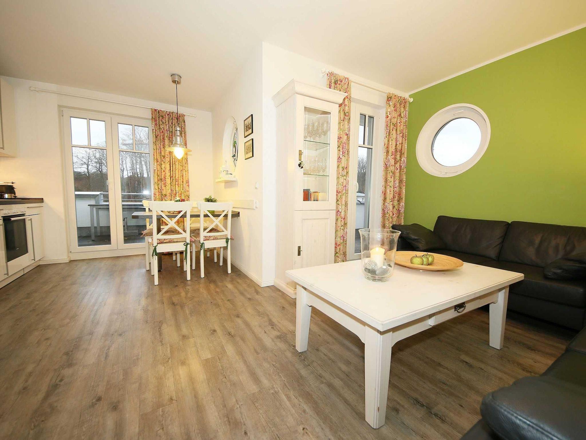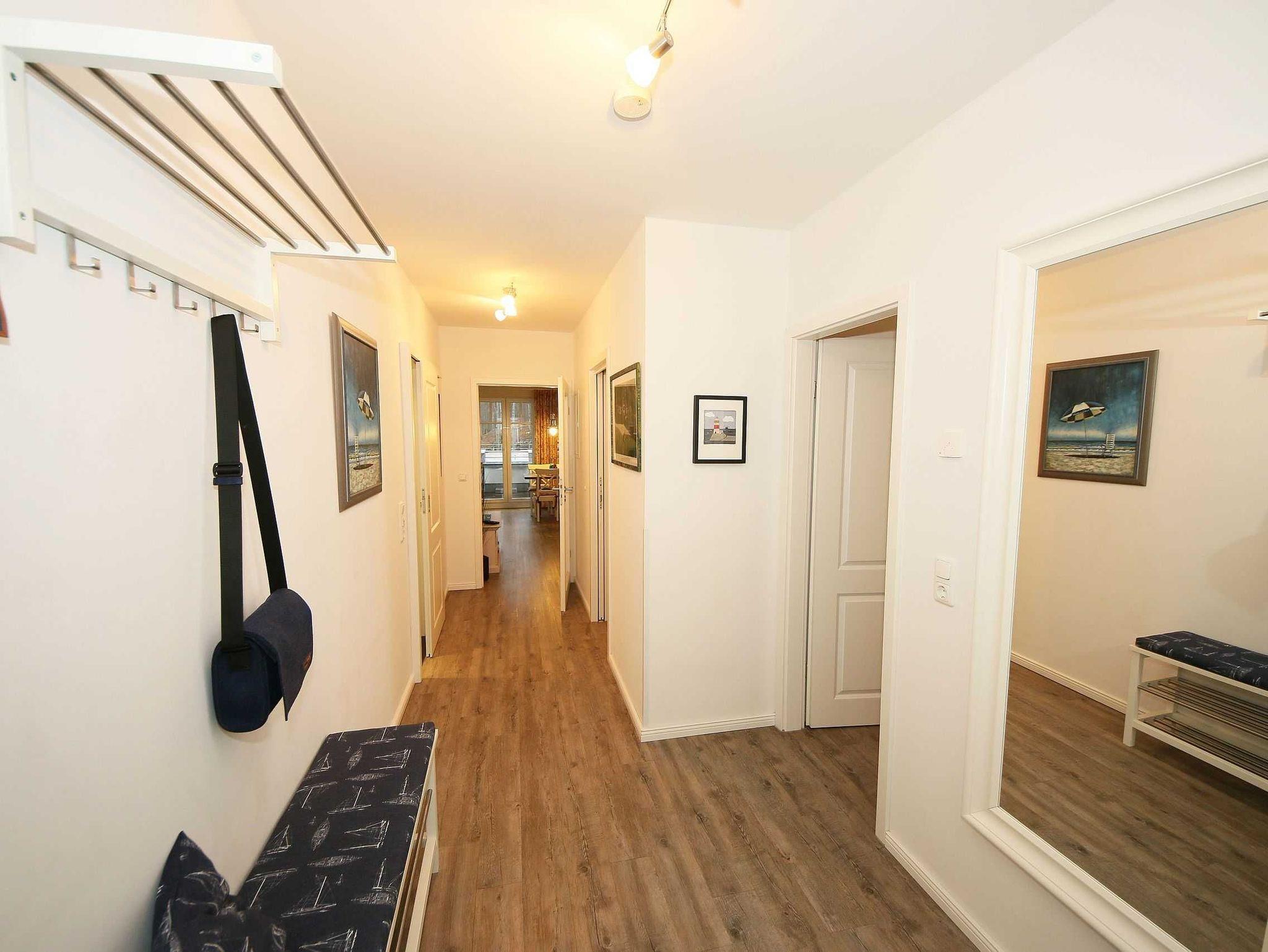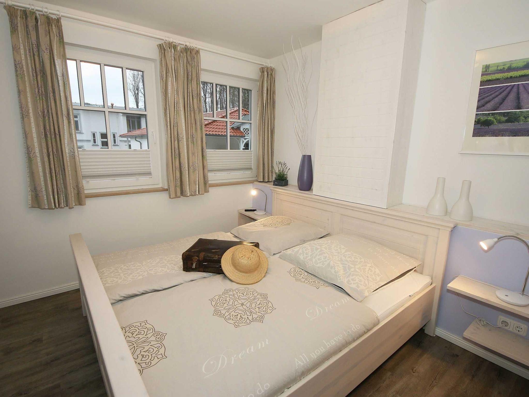 Die liebevoll im Landhausstil eingerichtete 67 qm große Nichtraucher-Wohnung befindet sich in der 3. Etage der Villa Rosa. Als Dreiraumwohnung bietet Sie Ihnen ausreichend Platz für 2 bis 4 Erwachsene und 1 Kleinkind (bis 3 Jahre im Kinderreisebett). Die hochwertige Ausstattung der Wohnung garantiert einen unbeschwerten Urlaub. Die großzügige Küchenzeile bietet Ihnen eine Geschirrspülmaschine, Backofen mit Ceranfeld, Mikrowelle, Kühlschrank mit Gefrierfach, Kaffeemaschine, Senseo Pad-Maschine, Toaster, Wasserkocher, Eierkocher, Mixer, diverse Küchenhelfer sowie ein gemütlicher Essplatz mit 4 Stühlen. Bei schönem Wetter können Sie zusätzlich die Dachterrasse (Süd/West und Nord/West) zu einem Essplatz umfunktionieren. Diese wird durch einen eigenen Strandkorb und eingeschränktem Meerblick abgerundet. Der angrenzende und geschmackvoll eingerichtete Wohnbereich mit 2 Ledercouchen und Couchtisch, Leselampe, Sideboard mit 40 Full-HD Smart-TV mit Blu-Ray-Player, Musikanlage mit DAB-Radio sowie Glasvitrine runden die Gemütlichkeit ab. Auch auf einen Internetzugang (WLAN) brauchen Sie nicht verzichten. Dieser ist für Sie inklusive. Alle Räumlichkeiten wurden mit einem hochwertigen Vinylboden, Fliesen sowie Fußbodenheizung versehen. Im großen Schlafzimmer mit Doppelbett (1,80 m x 2,00 m), 7-Zonen-Kaltschaummatratzen, verstellbaren Lattenrosten, Nachttischablagen und Kleiderschrank finden Sie zusätzlich ein TV-Gerät. Von hier gelangen Sie auch auf die Dachterrasse. Das kleine Schlafzimmer ist mit einem Kojenbett (ausziehbar bis zu einer Liegefläche von 1,60 m x 2,00 m), 7-Zonen-Kaltschaummatratze, Nachttischablage und Kleiderschrank ausgestattet. Für einen ruhigen Schlaf dienen die Verdunklungsmöglichkeiten. Der Mittelpunkt des Bades ist ein moderner Waschplatz, ein WC, eine ebenerdige Dusche (0,90m x 1,40m), Fön und eine Waschmaschine (inklusive). Ein eigener Tiefgaragenparkplatz (Nr.16, Einfahrtshöhe 2,00m) steht Ihnen inklusive zur Verfügung. Im Untergeschoss finden Sie zudem einen großen abschließbaren Fahrradraum sowie einen Extraraum für Kinder- und Bollerwagen. Der Fahrstuhl bringt Sie bequem zur Wohnung. Im Erdgeschoss der Villa Rosa finden Sie einen kleinen kostenpflichtigen Spa-Bereich mit Sauna, Dampfsauna, Dusche und Ruheraum. Ab einem Aufenthalt von 5 Nächten, sind 2 Saunamarken in der Zeit vom 01. November bis 30. April für Sie inklusive. Die Wertmarken können Sie auf Nachfrage während Ihres Urlaubes in der Zimmervermittlung erwerben. Der kleine Garten hinter dem Haus steht allen Gästen zur Verfügung. Hier gibt es einen Grillplatz und einen kleinen Spielplatz. 1x stabiles Kinderbett (1,20 m x 0,60 m, ohne Bettinlett) und 1x Kinderhochstuhl sind für unsere kleinen Gäste inklusive. Haustiere sind nicht erlaubt. Die Erstausstattung eines Wäschepaketes (komplette Bettwäsche, 1 Duschhandtuch, 1 kleines Handtuch) können Sie bis 14 Tage vor Anreise gegen einen Aufpreis dazu buchen oder durch eigene ergänzen. Ab 2 gebuchten Paketen erhalten Sie einmalig 1 Geschirrhandtuch und 1 Duschvorleger hinzu.