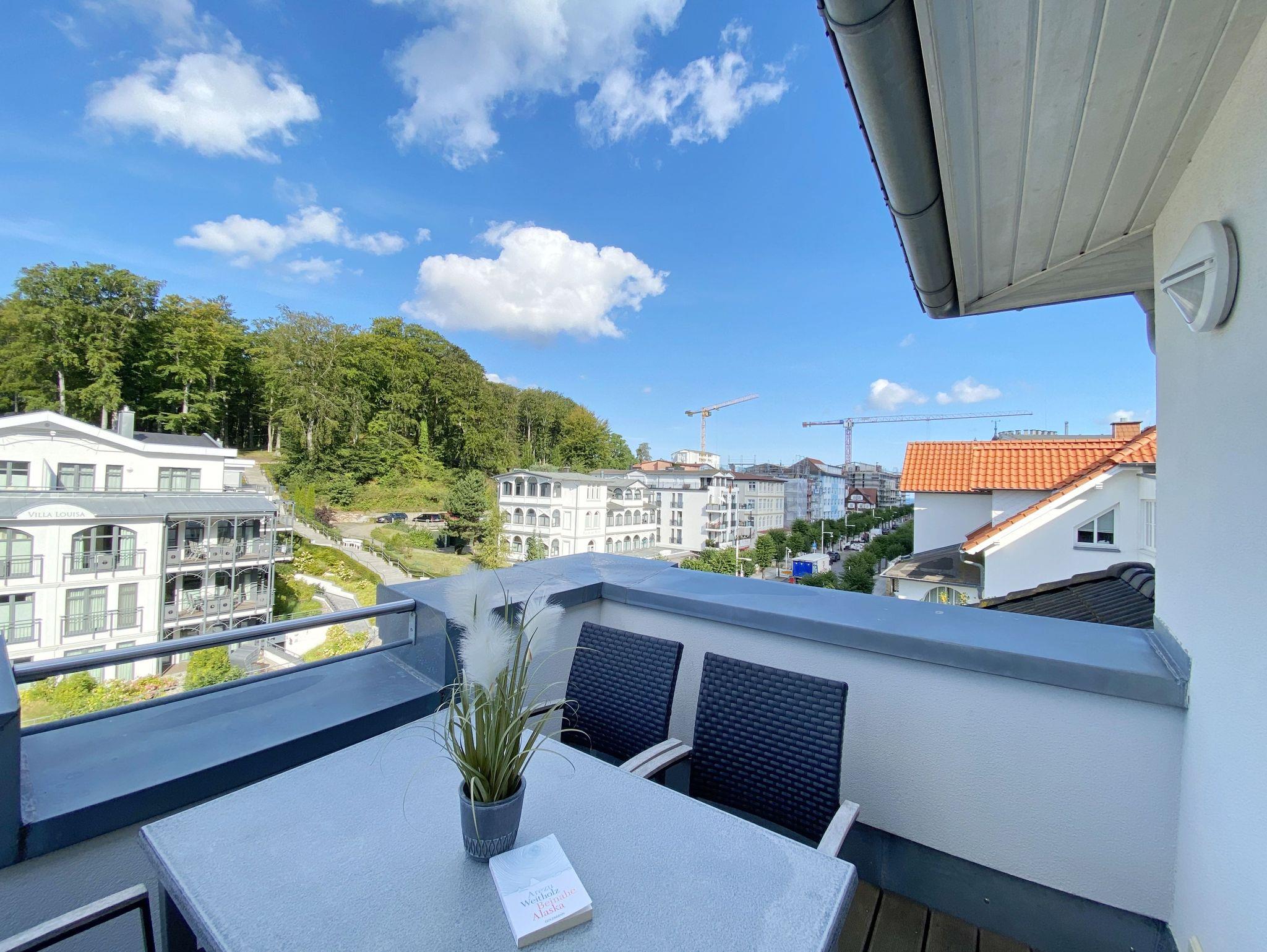 Die Villa Rosa ist ein Apartmenthaus mit 19 Ferienwohnungen, das auf einem 1200 qm großen Hanggrundstück in der bekannten Wilhelmstraße errichtet wurde. Sie fügt sich ein in die Reihe der prachtvollen Villen im Stile der Bäderarchitektur, die den Charme der Straße ausmachen. Zahlreiche kleine Läden und Restaurants laden zum Flanieren ein. Von den zwei Dachterrassen die zur Wohnung gehören, genießen Sie einen Rundumblick vom Selliner See im Süden über die Wilhelmstraße und den Friedensberg bis zum Meer im Norden.