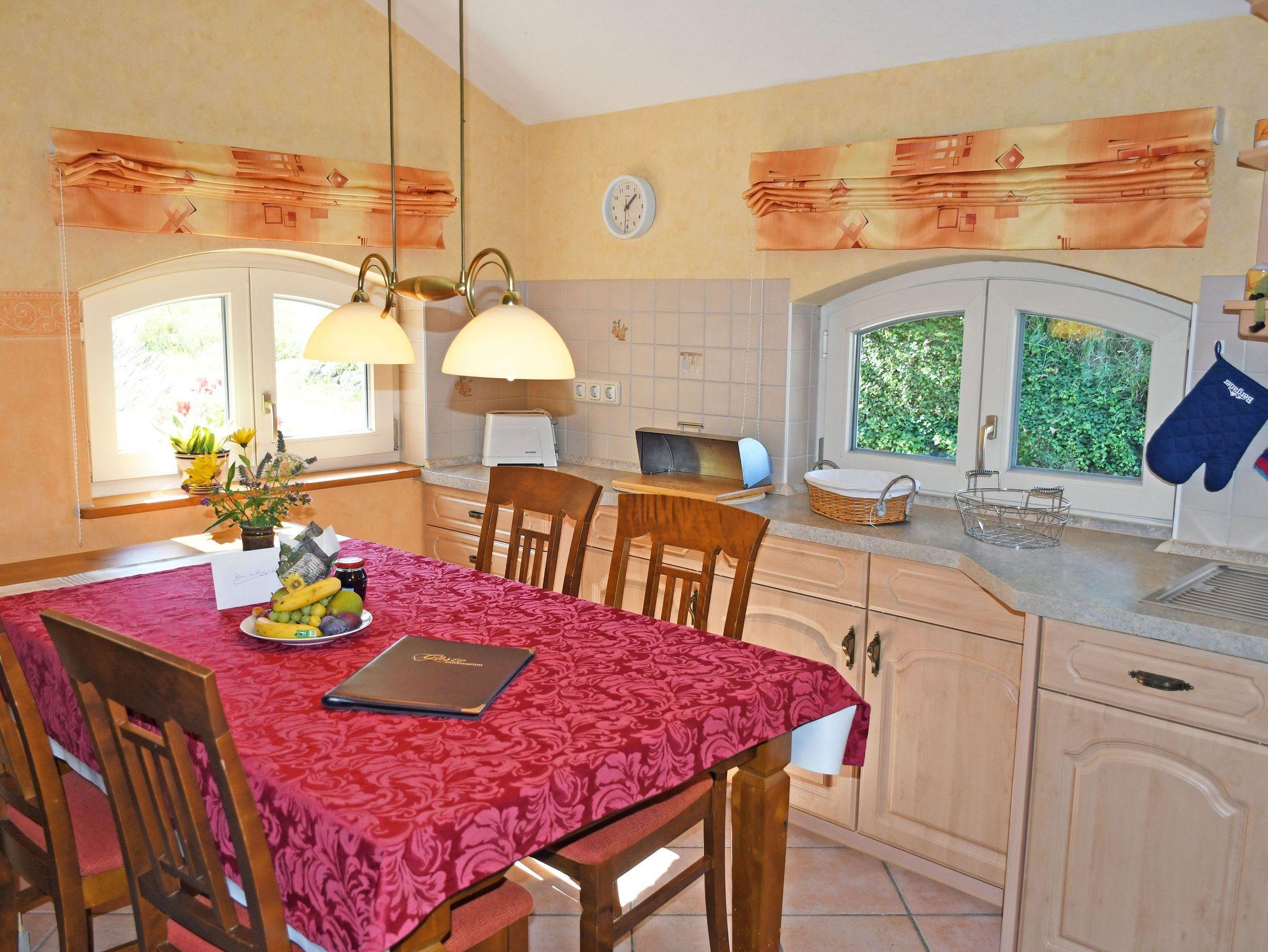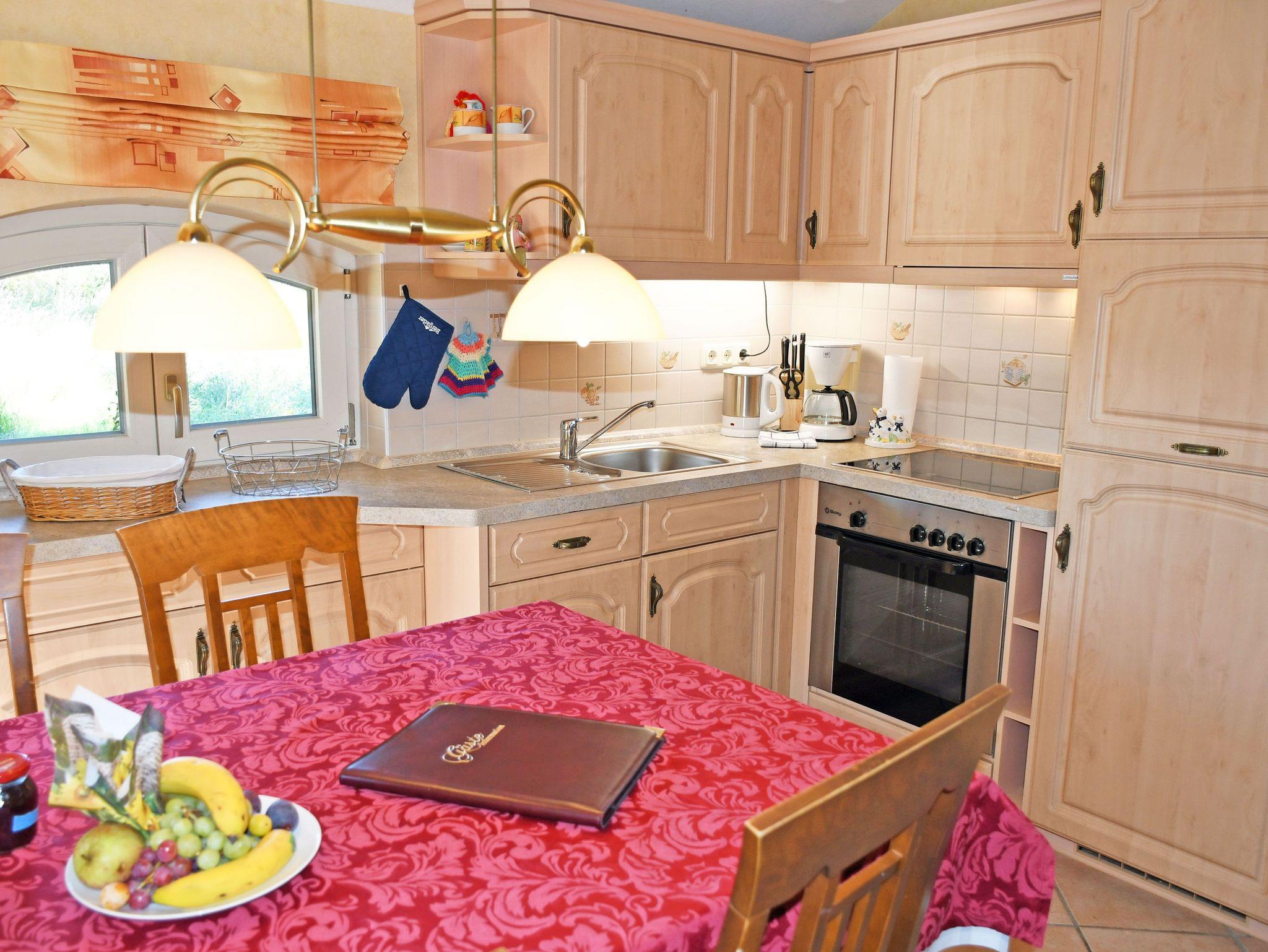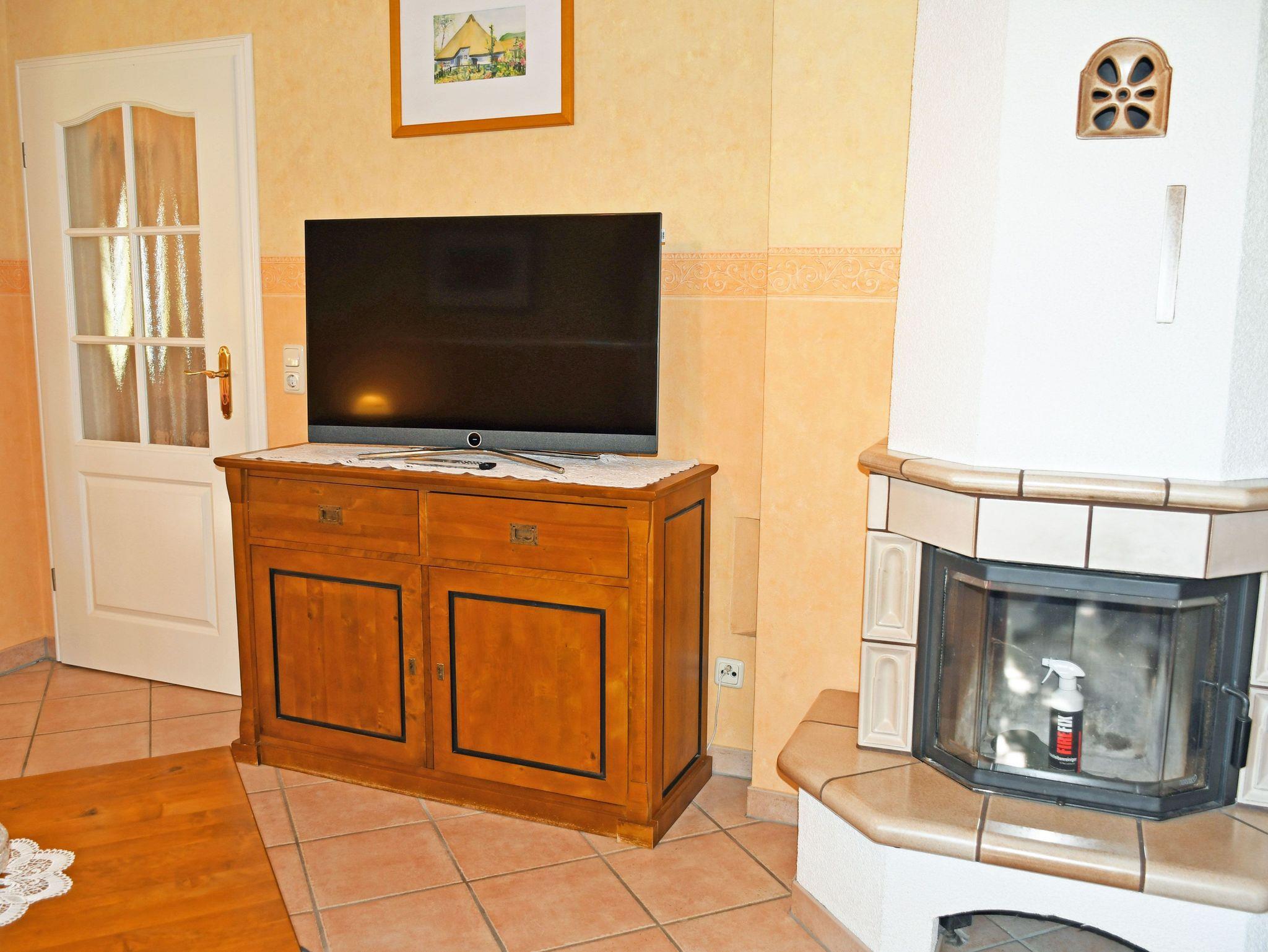 Das modern und sehr schön ausgestatte Ferienhaus (85 qm, 4 Gäste, 4 Sterne nach DTV) liegt ruhig. Es verfügt im Erdgeschoß über ein Wohnzimmer mit Flachbild-TV, Musikanlage, DVD-Player, Kachelkamin, Sitzecke, Esstisch und einer Küchenzeile mit Cerankochfld, Backofen, Geschirrspüler, Kühlschrank, Gefrierschrank und Mikrowelle.
