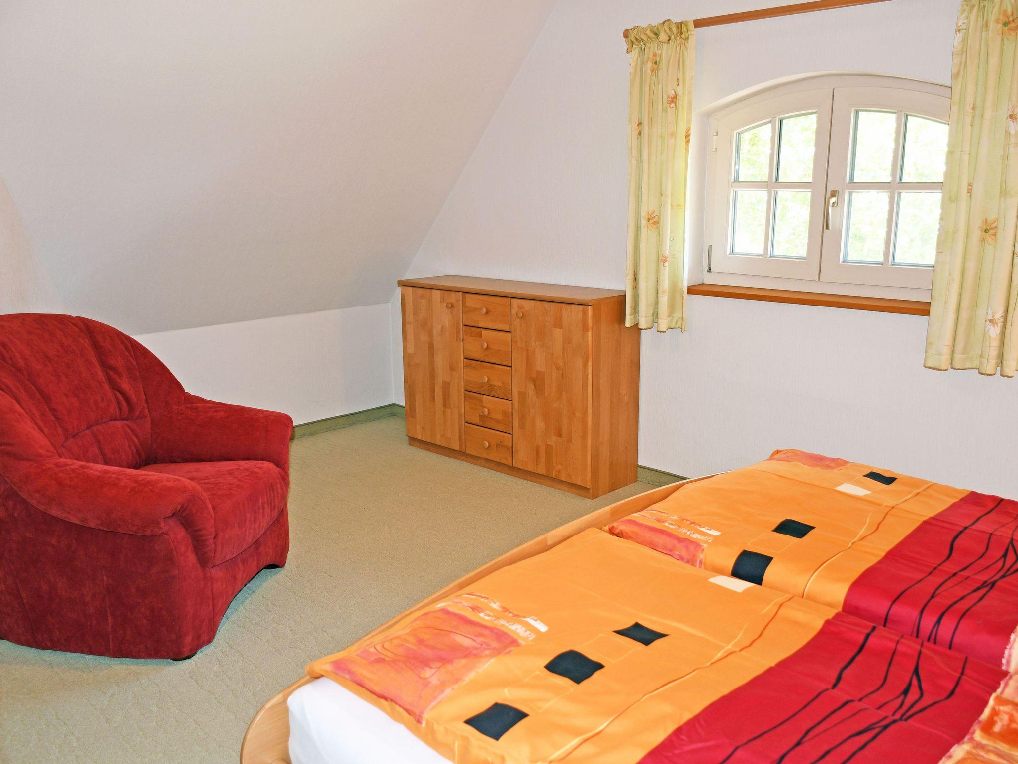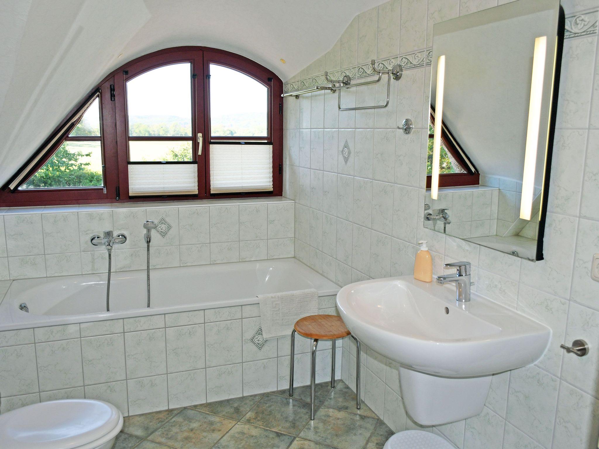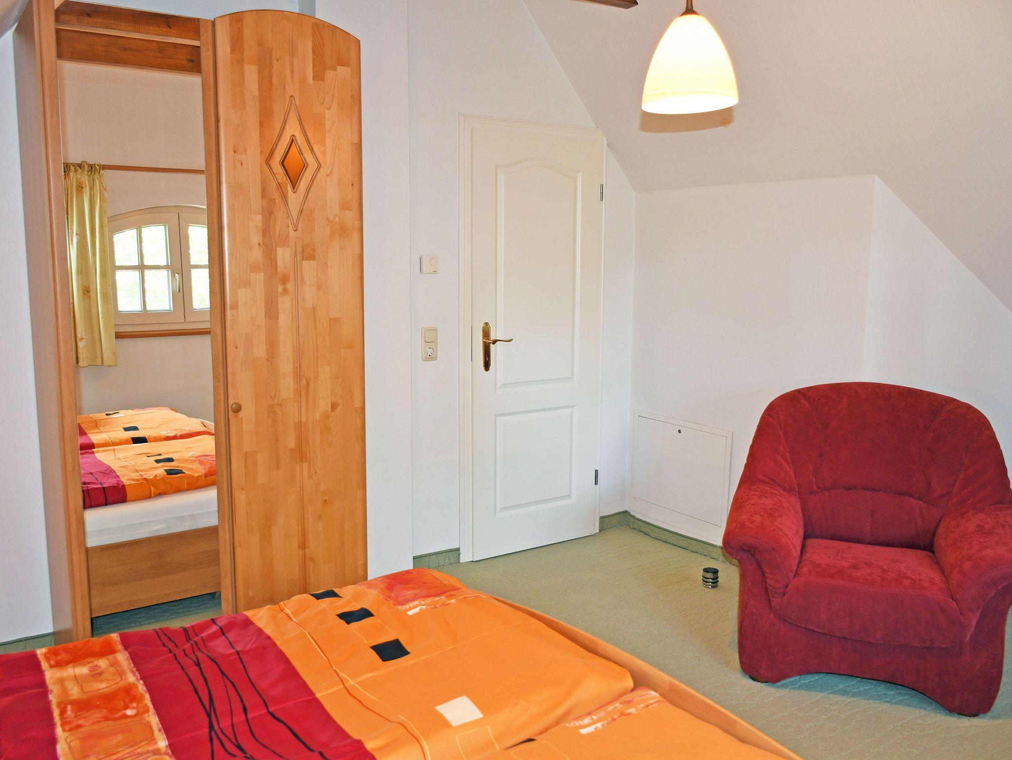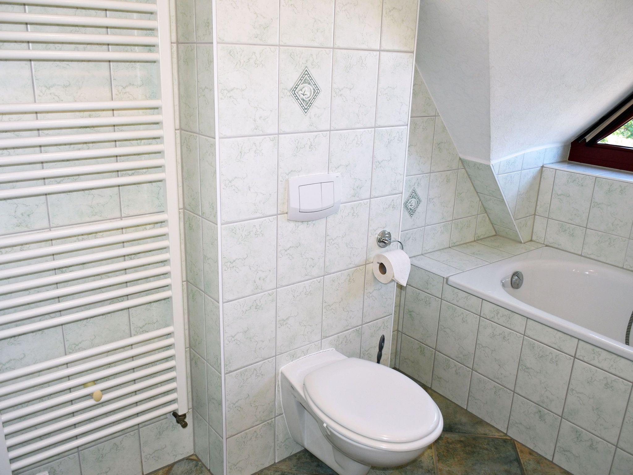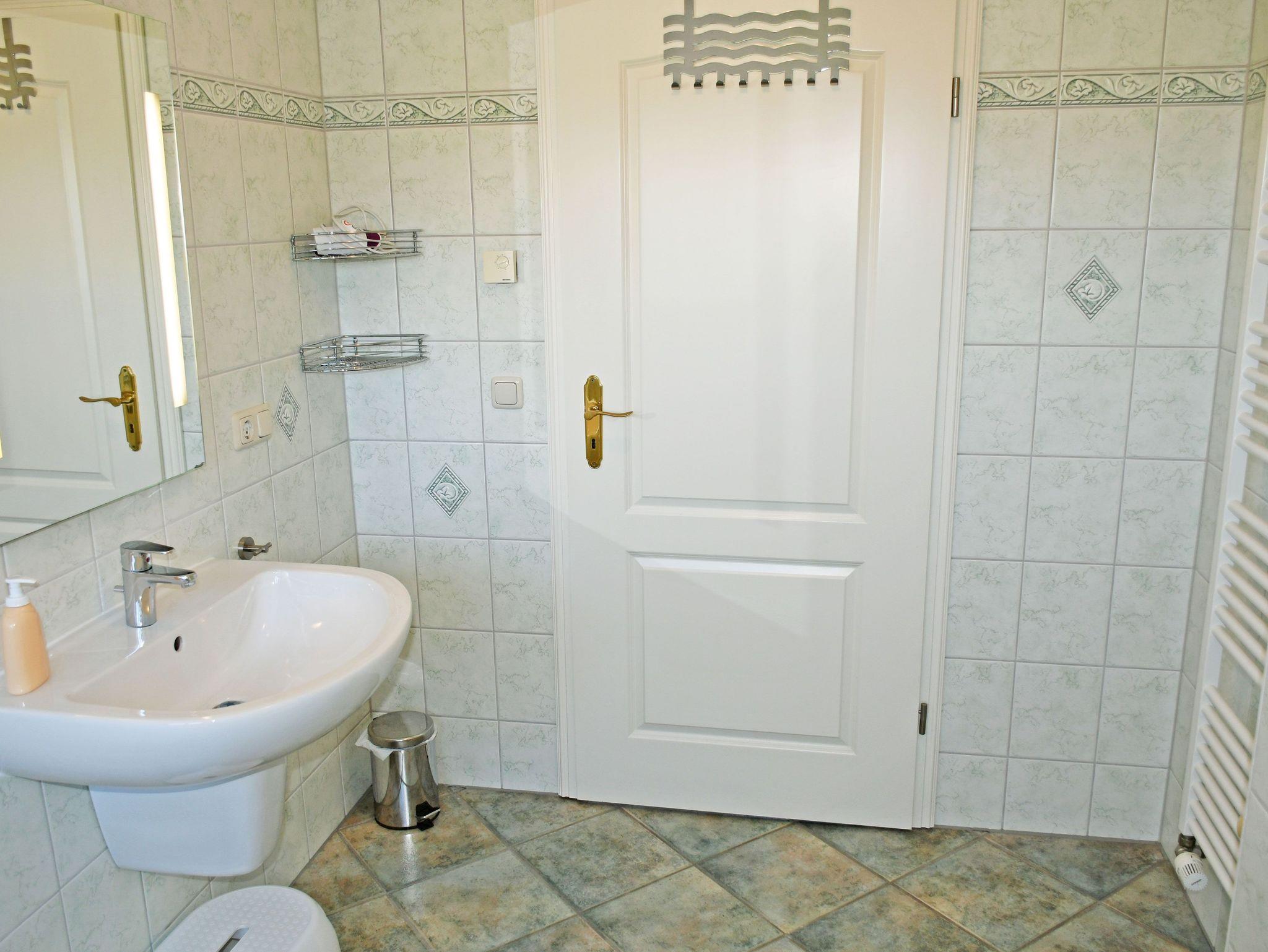 Über eine Treppe gelangen Sie ins Obergeschoß. Hier befinden sich das zweite Bad mit Badewanne und WC, ein Schlafzimmer mit Doppelbett, Nachtschränken mit Leselampen, Kleiderschrank sowie einem weiteren großen Schlafzimmer mit zwei getrennt stehenden Betten. Hier kann bei Bedarf auch ein Reisebett aufgestellt werden.