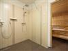 Im Nebenhaus befindet sich der großzügige Saunabereich mit Entspannungsraum und Dusche, der allein oder zusammen mit den anderen Gästen des Hauses genutzt werden kann (1 / 10 Minuten).