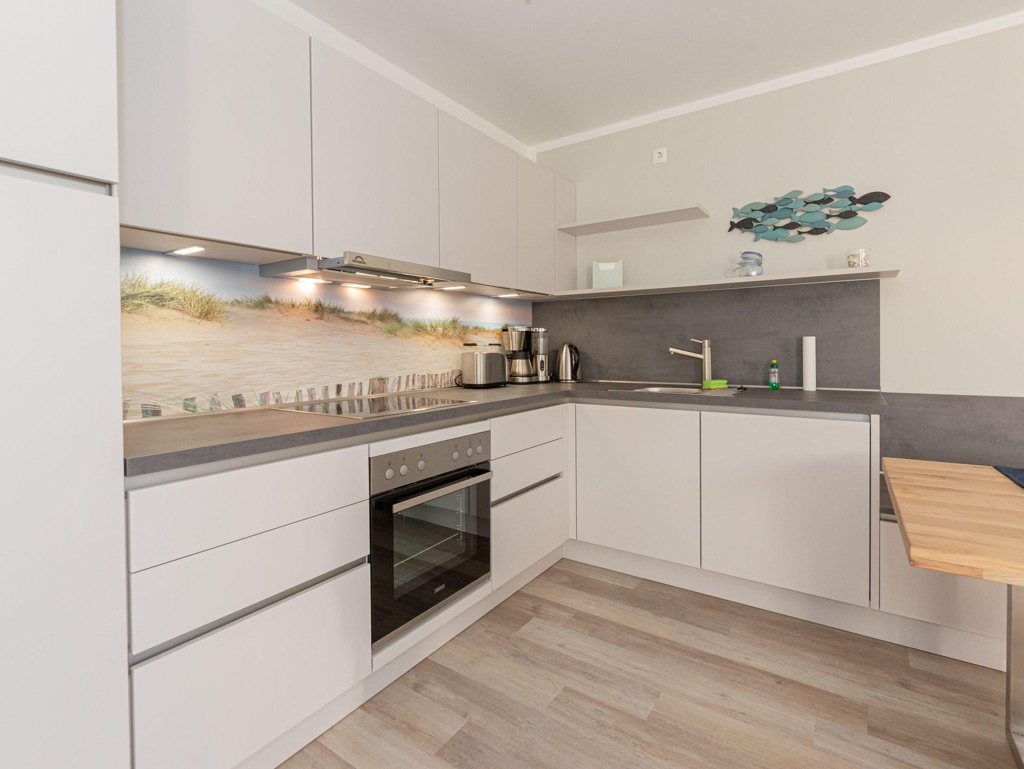 In der voll ausgestatteten Küche finden Sie alle nötigen Utensilien, die es für ein kulinarisches Abendessen benötigt; einen Kühlschrank, ein großes Kochfeld, einen Backofen, eine Mikrowelle und allerlei Küchenkleingeräte (Kaffeemaschine, Wasserkocher...). Der angrenzende Essbereich ist gemütlich gestaltet und bietet Platz für bis zu 6 Personen.