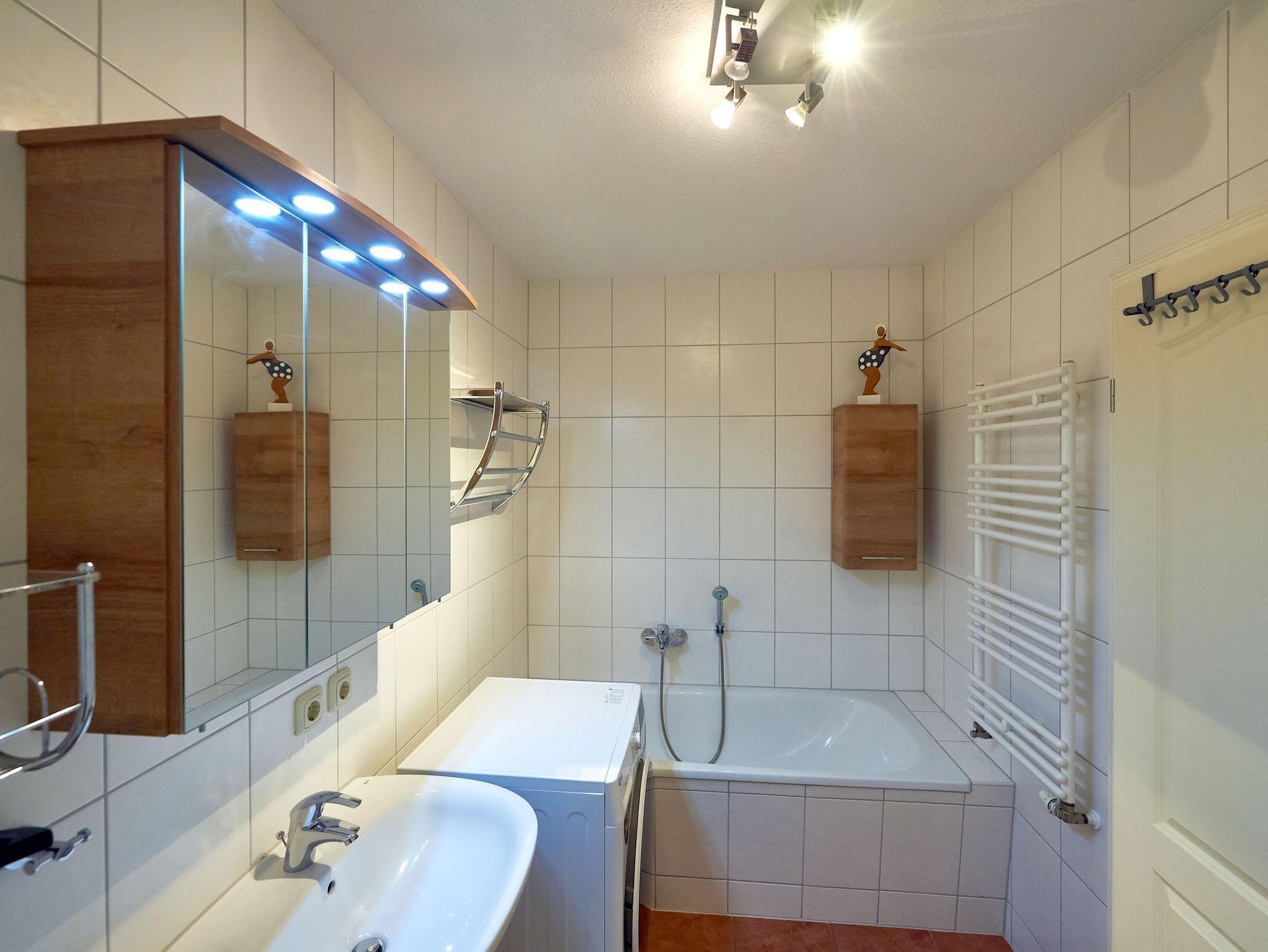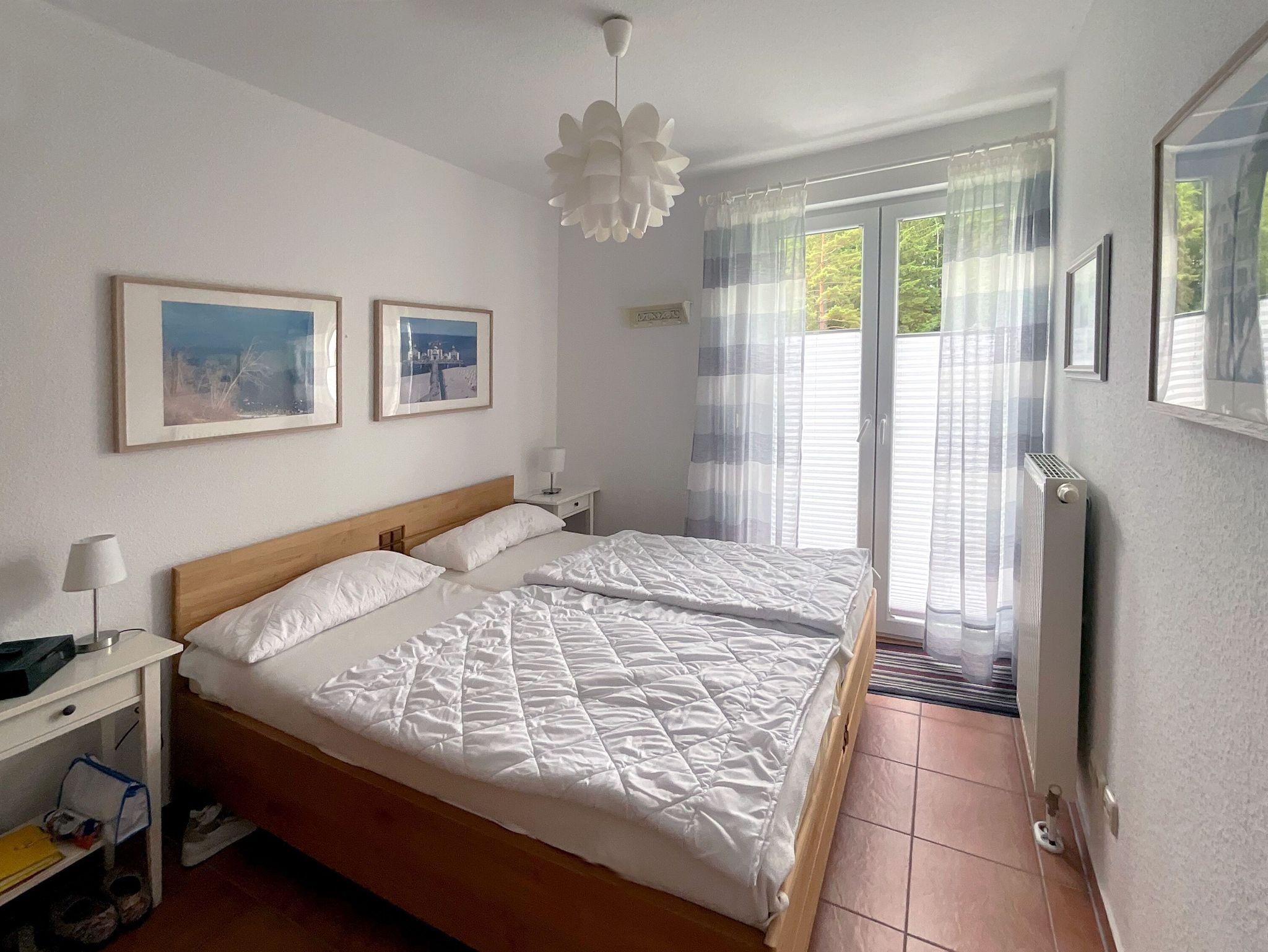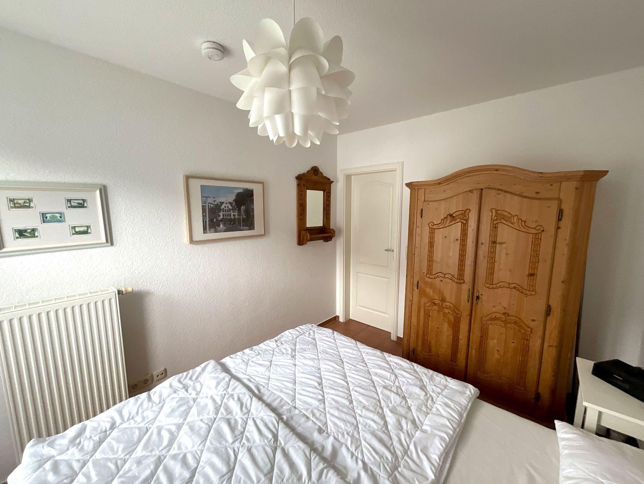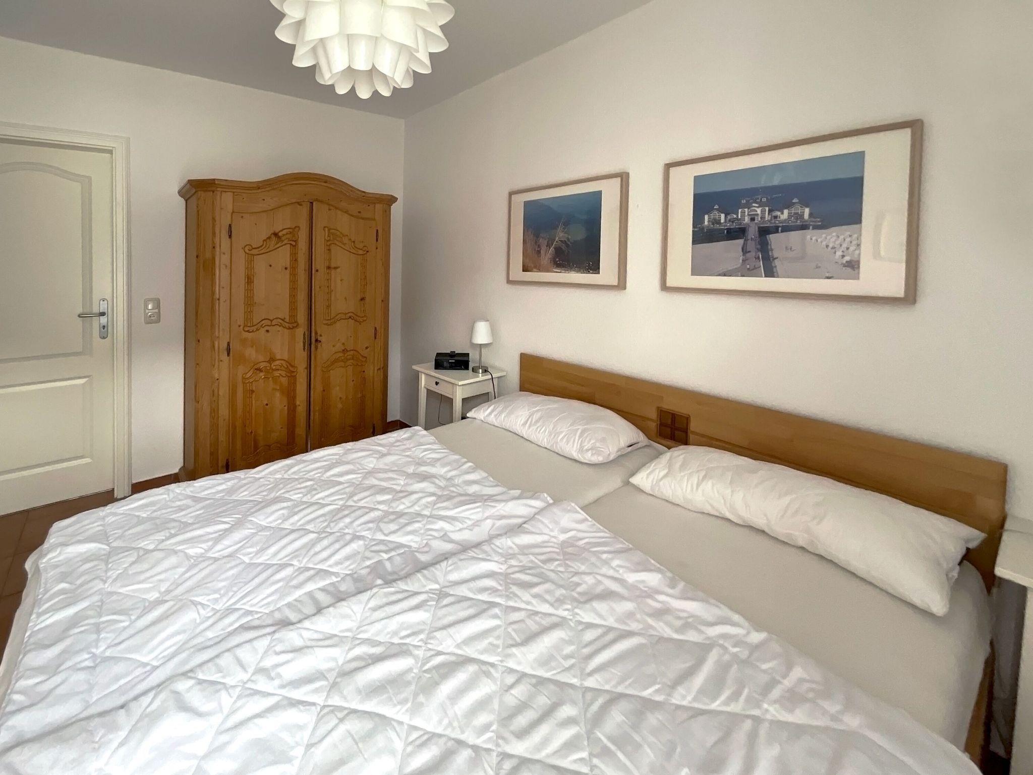 Es gibt zwei Schlafzimmer mit je einem Doppelbett (1 x 180x200cm, 1 x 160x200cm). Weiterhin verfügt die Wohnung über ein modernes Badezimmer mit Dusche und Badewanne, Haartrockner sowie einem Waschtrockner.