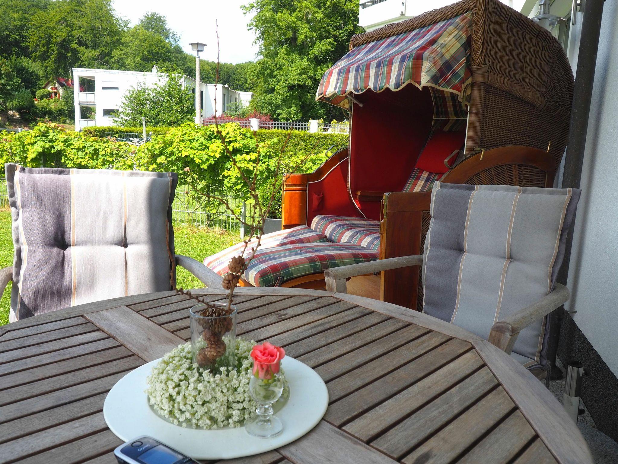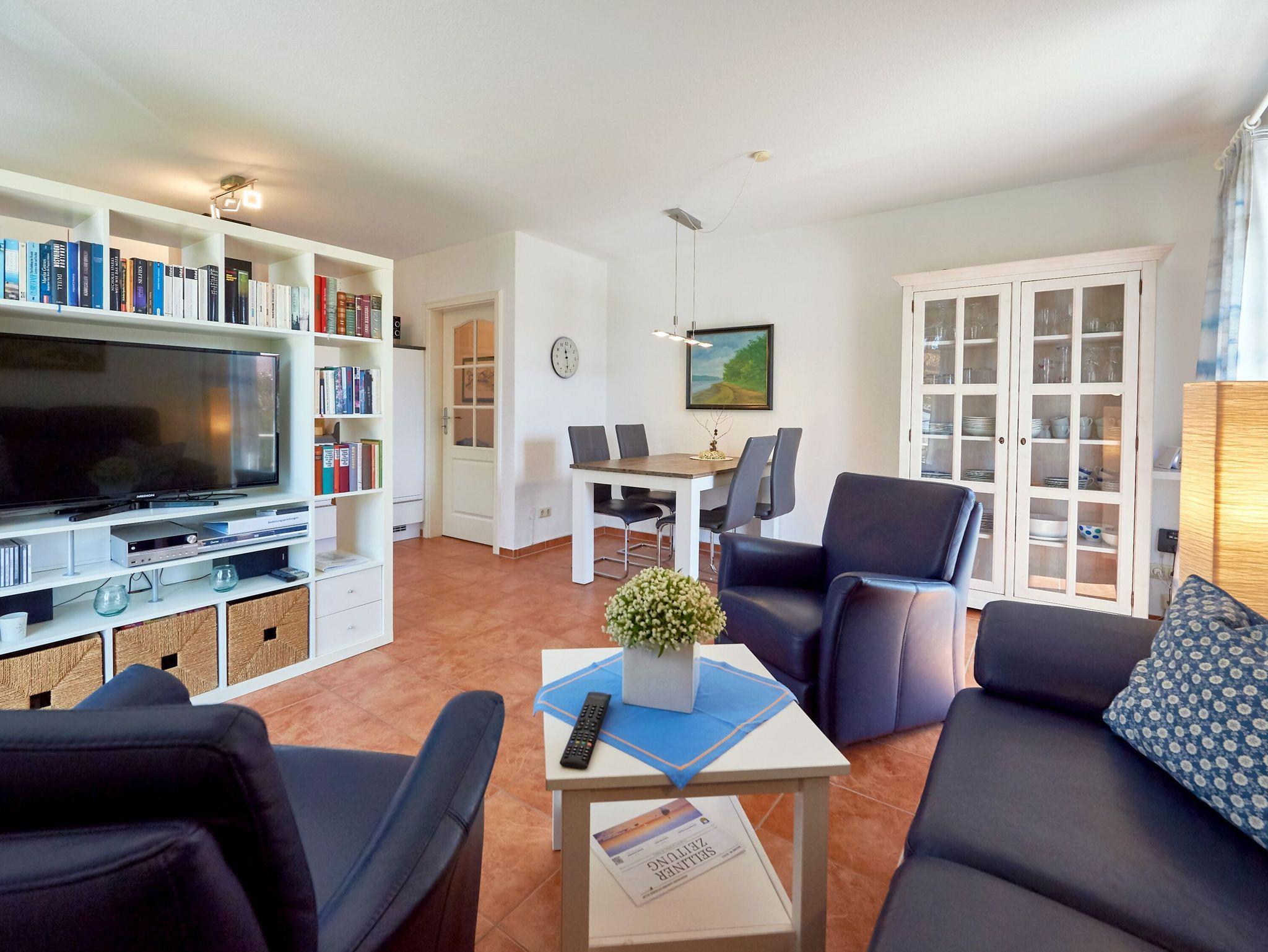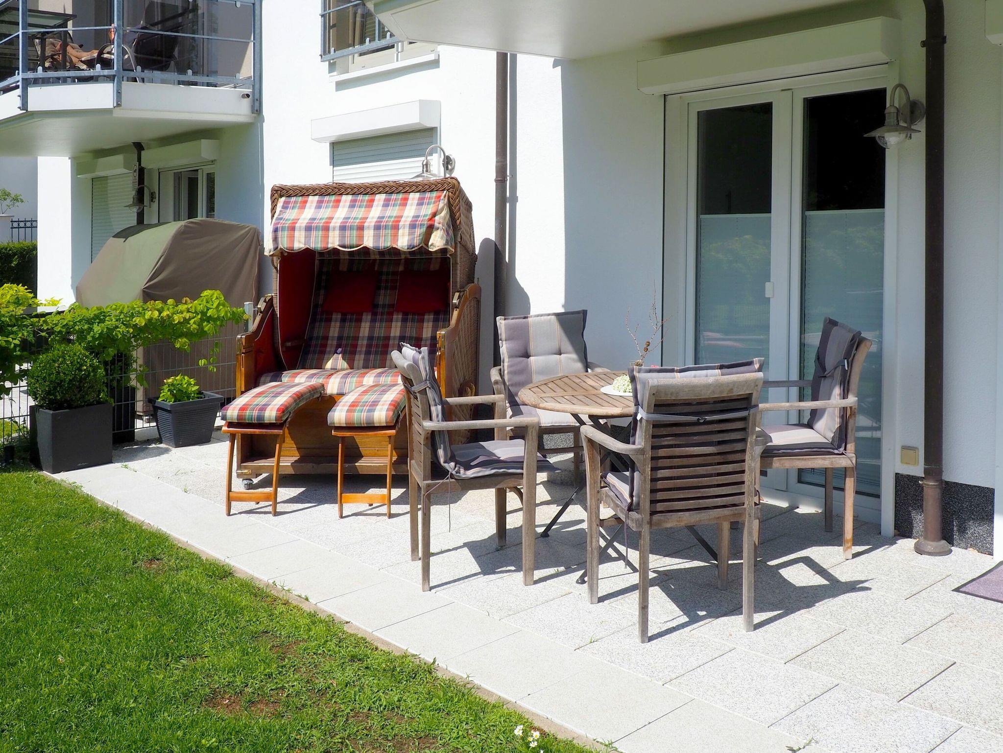 Die Nichtraucherwohnung im Erdgeschoss des Hauses hat eine Wohnfläche von ca. 70 m², ist sehr geschmackvoll eingerichtet und verfügt über zwei Terrassen. Von der möblierten Süd-West-Terrasse mit Garten und Strandkorb können Sie ganztägig die Sonne genießen. Die ebenfalls möblierte Süd-Ost-Terrasse lädt mit Blick auf die Ostsee zu einem sonnigen Frühstück ein.