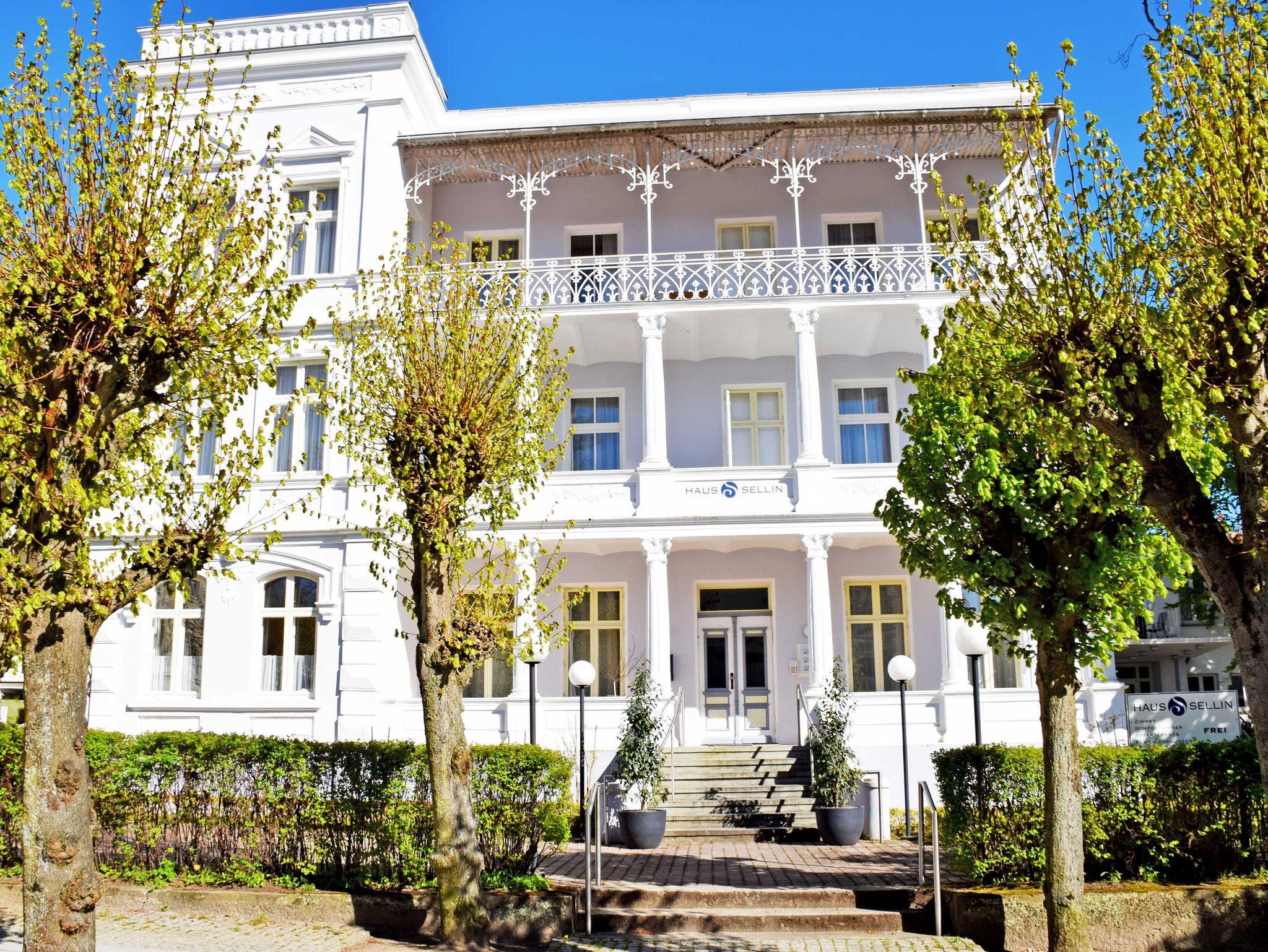 Unsere bereits 1902 in schönster Bäderarchitektur errichtete Villa, begrüßt Sie gern in bester Lage. Sie ist eines der schönsten Häuser in Sellins Hauptpromenade, der Wilhelmstraße, die direkt zum feinsandigen, kilometerlangen Badestrand an der berühmten Selliner Seebrücke zuführt. Hier können Sie in Ihrem Rügen-Urlaub den Charme der goldenen Zwanziger Jahre genießen. Bis zum Badestrand mit der Seebrücke an der Ostsee sind es nur ca. 300 m. Das Ostseebad Sellin gehört zum UNESCO Biosphärenreservat Südost-Rügen mit herrlicher, unverbrauchter Natur. In der näheren Umgebung gibt es zahlreiche Rad- und Wanderwege.