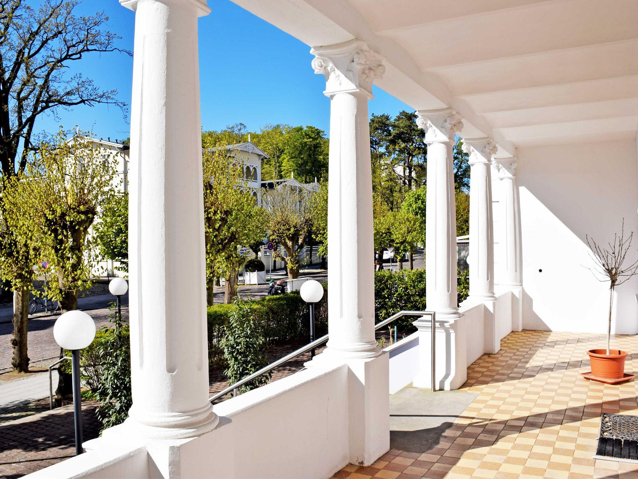 Das Ortzentrum des Ostseebades erreichen Sie in ca. 100 m und der Kleinbahnhof für den „Rasenden Roland“ nach ca. 800 m entfernt. Im Zentrum laden diverse Geschäfte, Läden, viele Restaurants zum Verweilen ein.