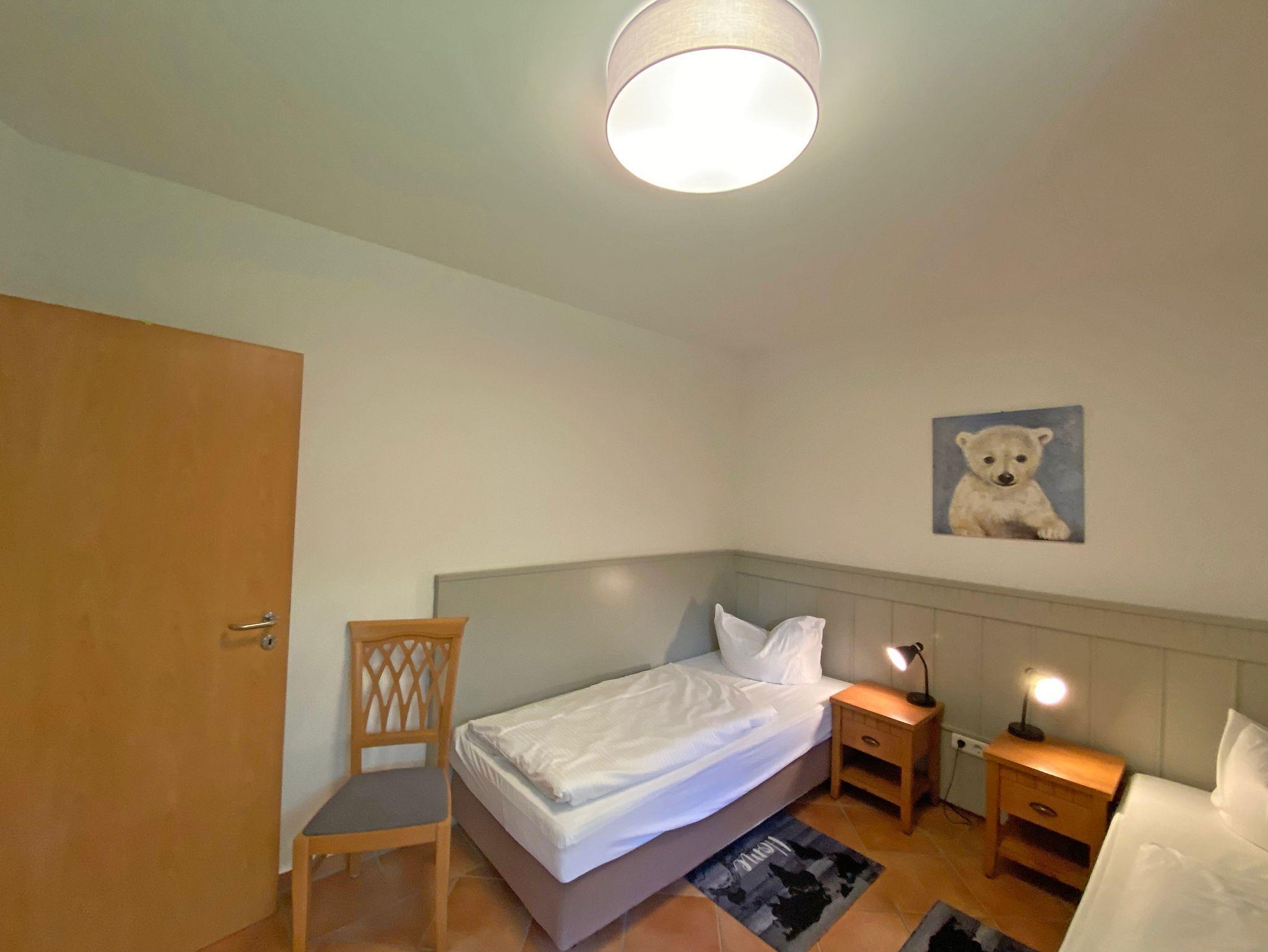 Die Nichtraucherwohnung mit ca. 77qm besticht durch ihre komfortable Raumaufteilung. Die im Parterre liegende Ferienwohnung Nr.02 bietet ausreichend Platz für 2 bis 4 Erwachsene + 1 Kleinkind bis 3 Jahre im Kinderreisebett. Im Wohnbereich wird die Unterhaltungstechnik durch einen modernen 42 Zoll LCD-TV und ein CD bzw. Blu-Ray-Player abgerundet. Auch im Urlaub müssen Sie nicht auf einen Internetanschluss (W-LAN) verzichten. Dieser ist für Sie inklusive. Für die Gemütlichkeit wurde der Wohnbereich mit Massivmöbeln, einer Stehlampe, zwei Sessel und zwei Couchen ausgestattet. Die bestuhlte und große Terrasse (Süden) mit einem Sonnenschirm können Sie vom Wohnbereich erreichen. Sie lädt bei einem Glas Wein zum Entspannen ein. Die angrenzende Küchenzeile verfügt über eine Spülmaschine, eine Mikrowelle, Ceranfeld mit Backofen, Kühlschrank mit Eisfach, Wasserkocher, Toaster, Kaffeemaschine und diverse Küchenutensilien. Bei Ihren Mahlzeiten können Sie vom Esstisch aus den Blick auf den Selliner See genießen. Das 1. Schlafzimmer wurde mit einem Doppelbett (1,80m x 2,00m), Nachtischablagen sowie einen Kleiderschrank ausgestattet. Das 2. Schlafzimmer verfügt über 2 Einzelbetten (0,90m x 2,00m) auch als Doppelbett stellbar, Nachttischablagen und einen Kleiderschrank. Im Tageslichtbad können Sie in einer Badewanne relaxen. Durch eine separate Dusche, einen großen Waschtisch, einen Fön und ein WC wird der Sanitärbereich abgerundet. Fensterläden und Vorhänge dienen zum Verdunkeln der Räumlichkeiten. In allen Räumlichkeiten finden Sie Nachtspeicheröfen. Im Abstellraum finden Sie unter anderem einen Wäscheständer, zwei Sonnenliegen sowie Reinigungsutensilien. Haustiere sind nicht erlaubt. Ein PKW-Stellplatz Nr.02 befindet sich direkt auf dem Grundstück. Ihre mitgebrachten oder geliehenen Fahrräder können Sie nach Verfügbarkeit im abschließbaren Fahrradraum unterstellen. Die Erstausstattung eines Wäschepaketes (komplette Bettwäsche, 1 Duschhandtuch, 1 kleines Handtuch) können Sie bis 14 Tage vor Anreise gegen einen Aufpreis dazu buchen oder durch eigene ergänzen. Ab 2 gebuchten Paketen erhalten Sie einmalig 1 Geschirrhandtuch und 1 Duschvorleger hinzu.