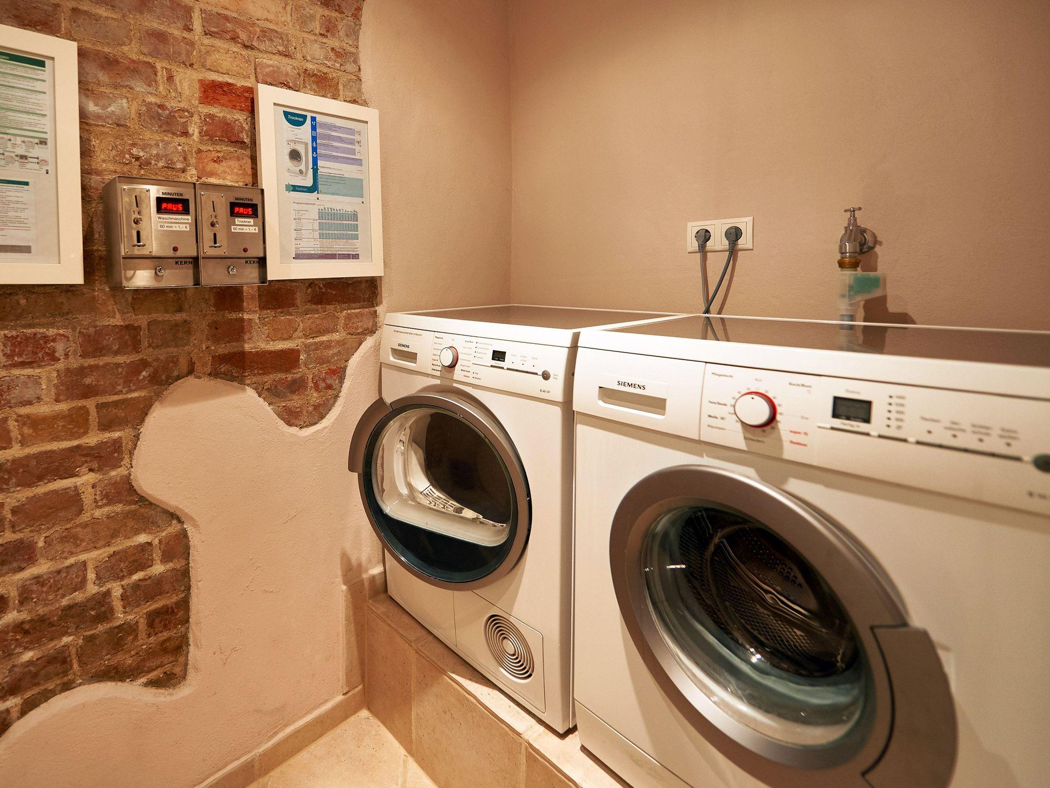 • Gegen Gebühr finden Sie im Souterrain eine Waschmaschine, einen Trockner und ein Solarium zu Ihrer Nutzung vor. Bügelutensilien erhalten Sie kostenlos auf Anfrage.