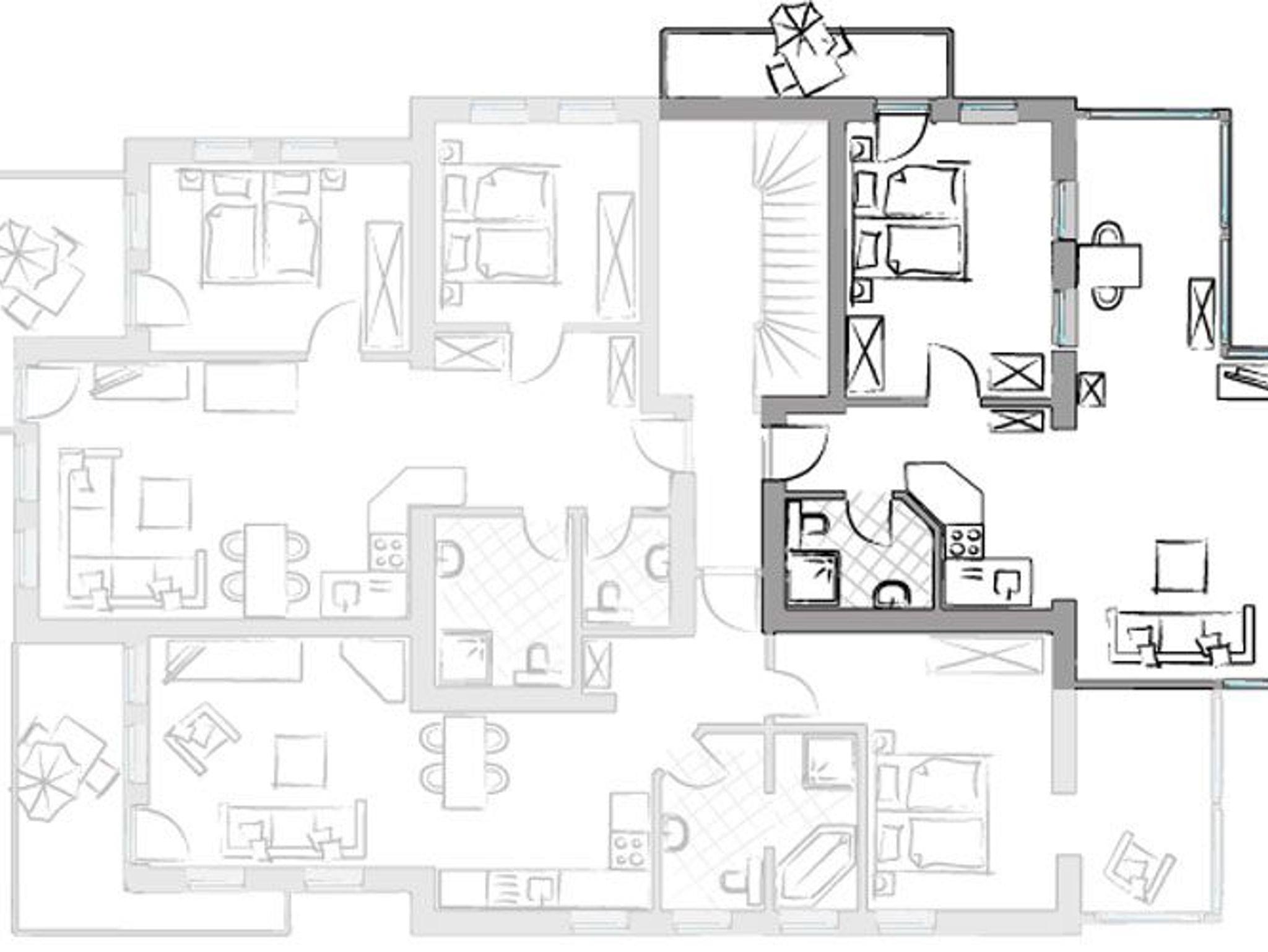 • Im Souterrain des Hauses steht ein kleiner Wellnessbereich mit Sauna, Duschen, WC und Ruhezone kostenlos zur Verfügung.