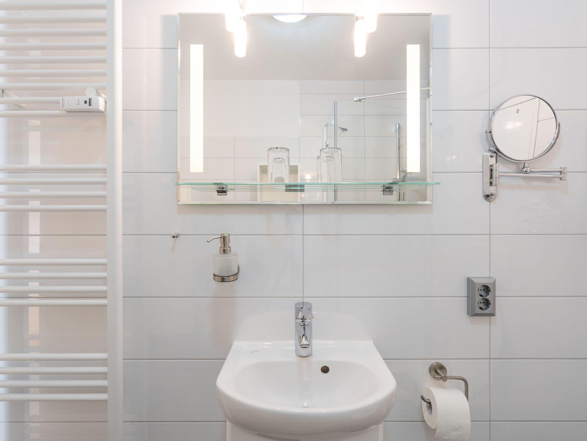 Die Ferienwohnung verfügt über kostenfreies WLAN und die Erstausstattung an Bettwäsche ist inklusive. Das Schlafzimmer mit Verdunklung verfügt über ein Doppelbett, im Wohnzimmer befindet sich zusätzlich eine Doppelschlafcouch. Darüber hinaus verfügt die Ferienwohnung über ein Bad mit Dusche/WC, Föhn und Kosmetikspiegel. Die voll ausgestattete, offene Küche mit Backofen, Mikrowelle, Geschirrspüler, Kaffeemaschine und Toaster lässt keine Wünsche offen. Zwei Fernseher inkl. 3 Sky-Sender runden die Einrichtung ab.