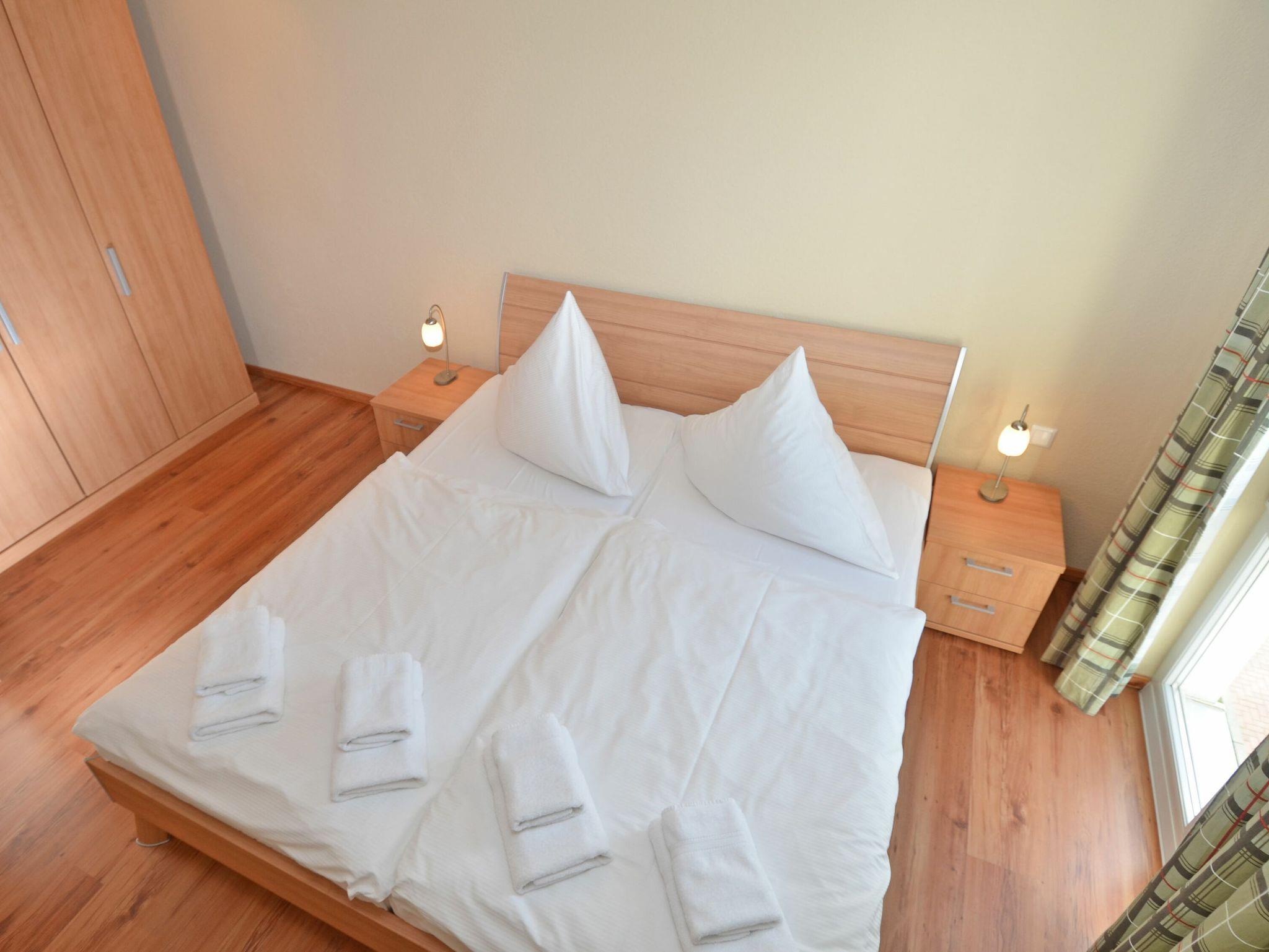 Weiterhin gibt es zwei Schlafzimmer mit jeweils einem Doppelbett und ausreichend Platz für Ihre Garderobe sowie ein modernes Bad mit Dusche/WC und einem Haartrockner.