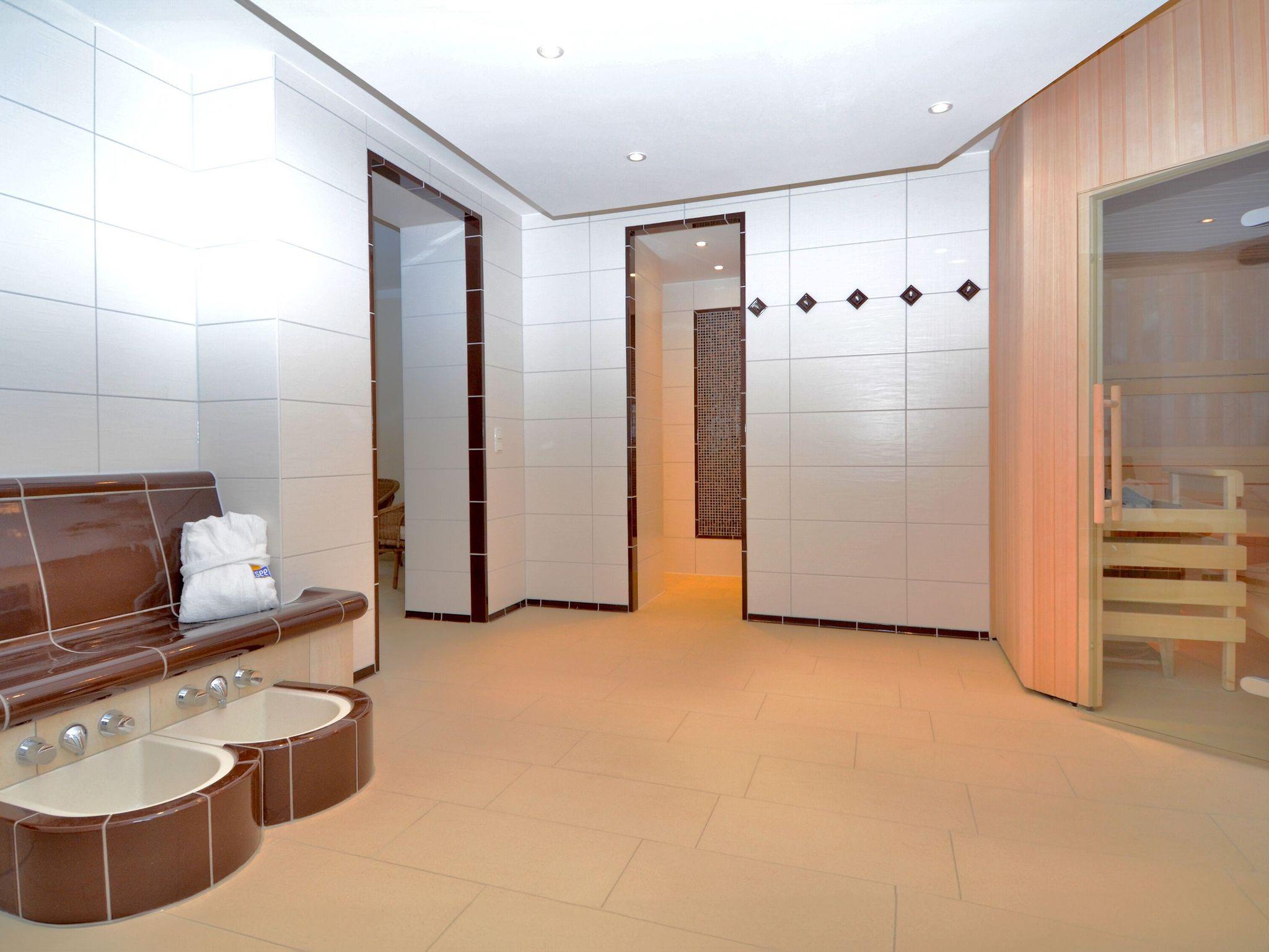 Im Erdgeschoss des Hauses befindet sich ein schöner Wellnessbereich mit finnischer Sauna, Dampfbad und Ruheraum, den Sie kostenpflichtig nutzen können.