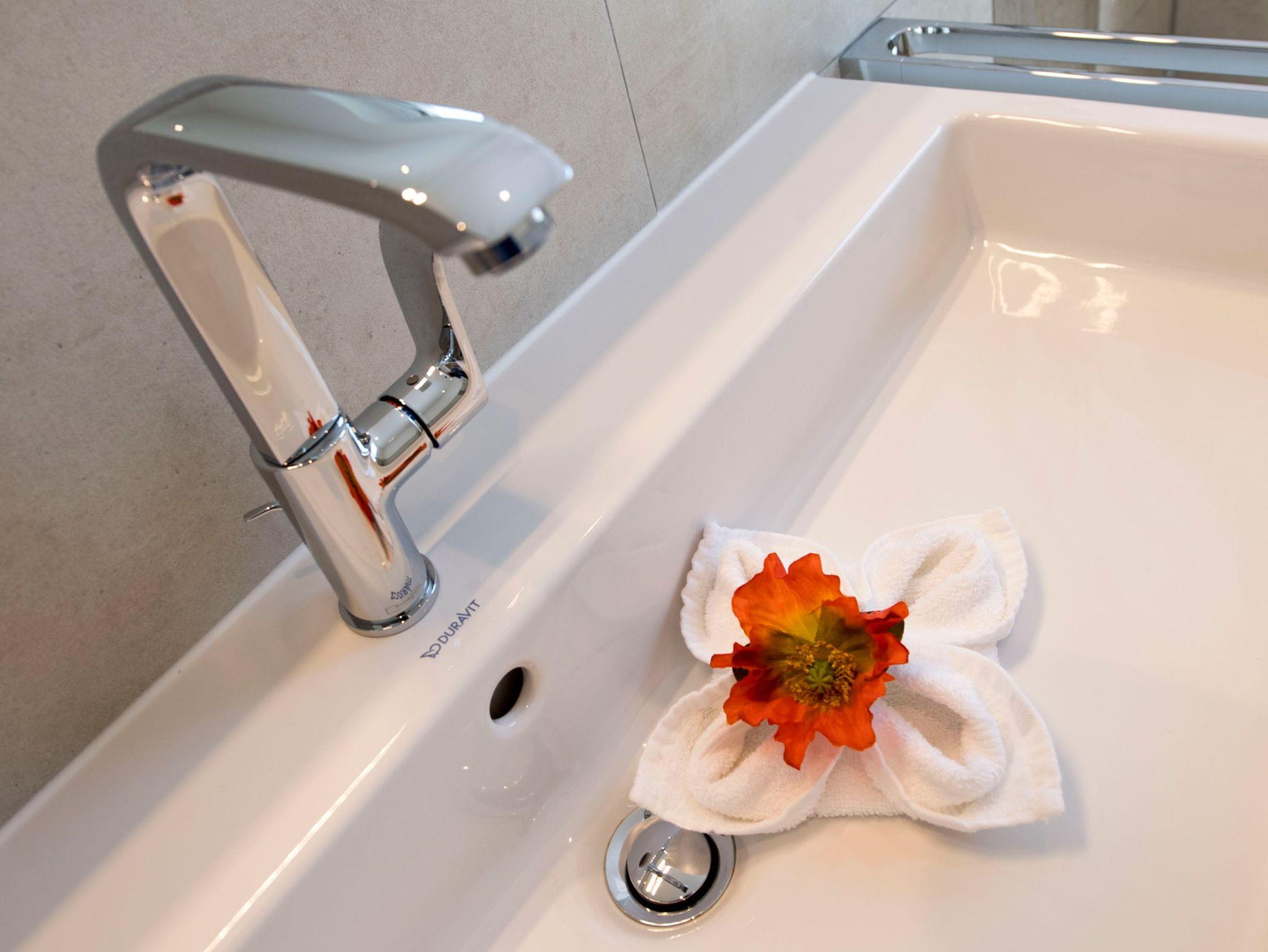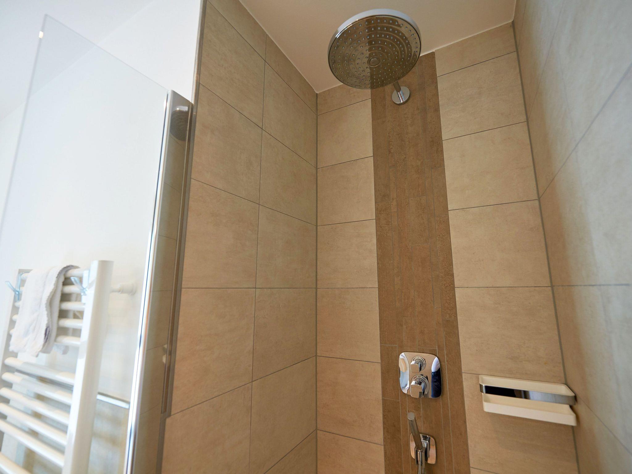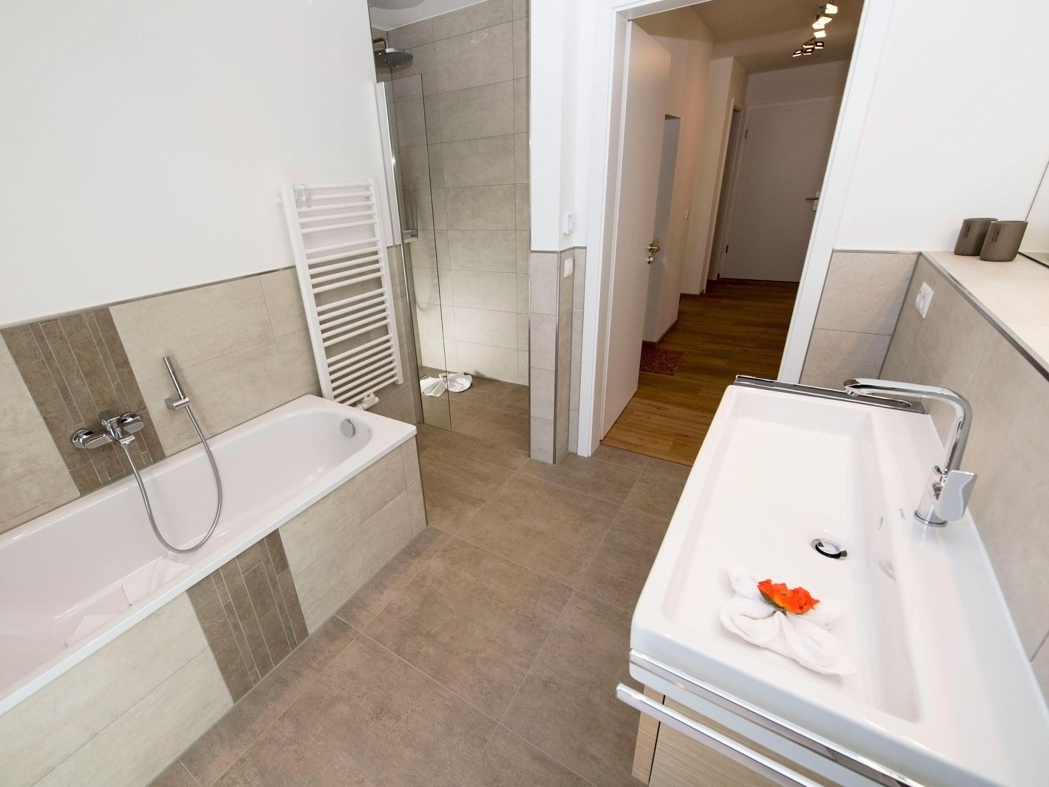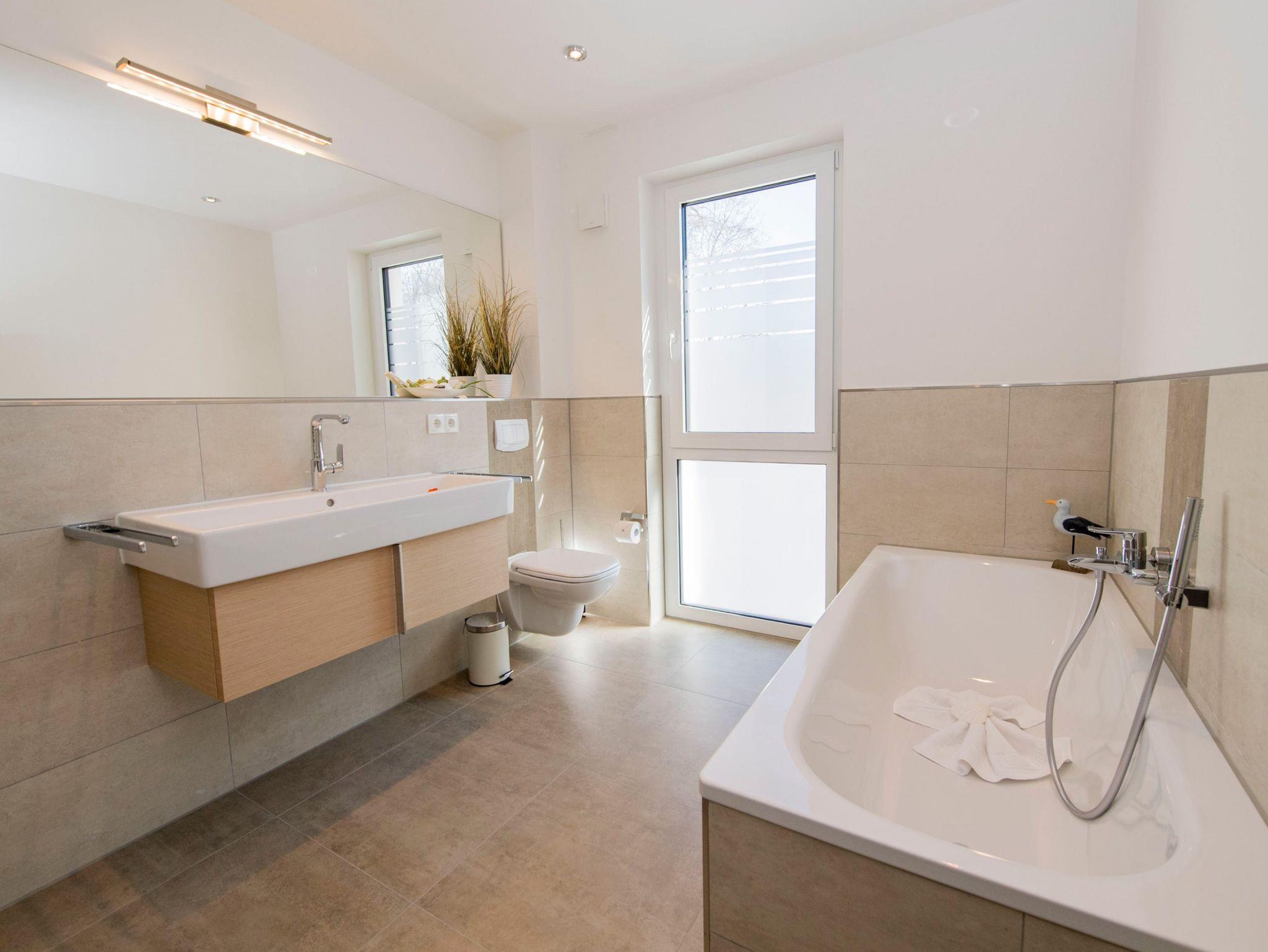 Das moderne Tageslichtbad überzeugt mit seiner gehobenen Ausstattung und bietet Ihnen sowohl den Komfort einer großen Regendusche sowie einer Badewanne. Genießen Sie darüber hinaus, beispielsweise nach Ihrem Strandspaziergang, einen entspannenden Abend in Ihrer persönlichen Sauna. Diese stellt in der Umgebung durchaus ein Alleinstellungsmerkmal dar.