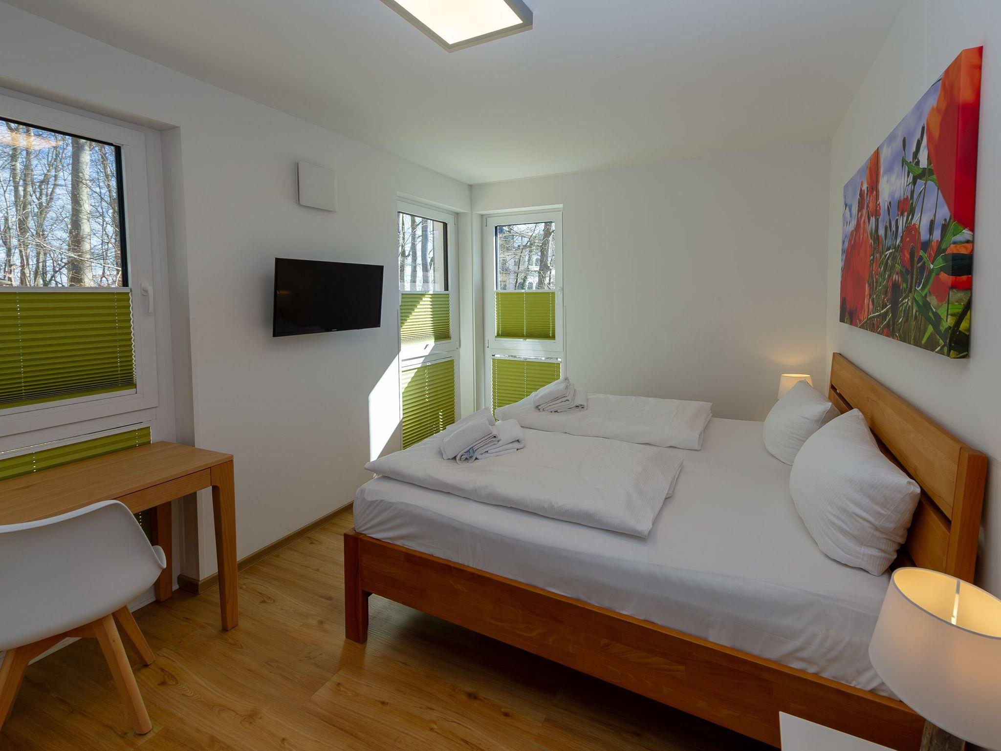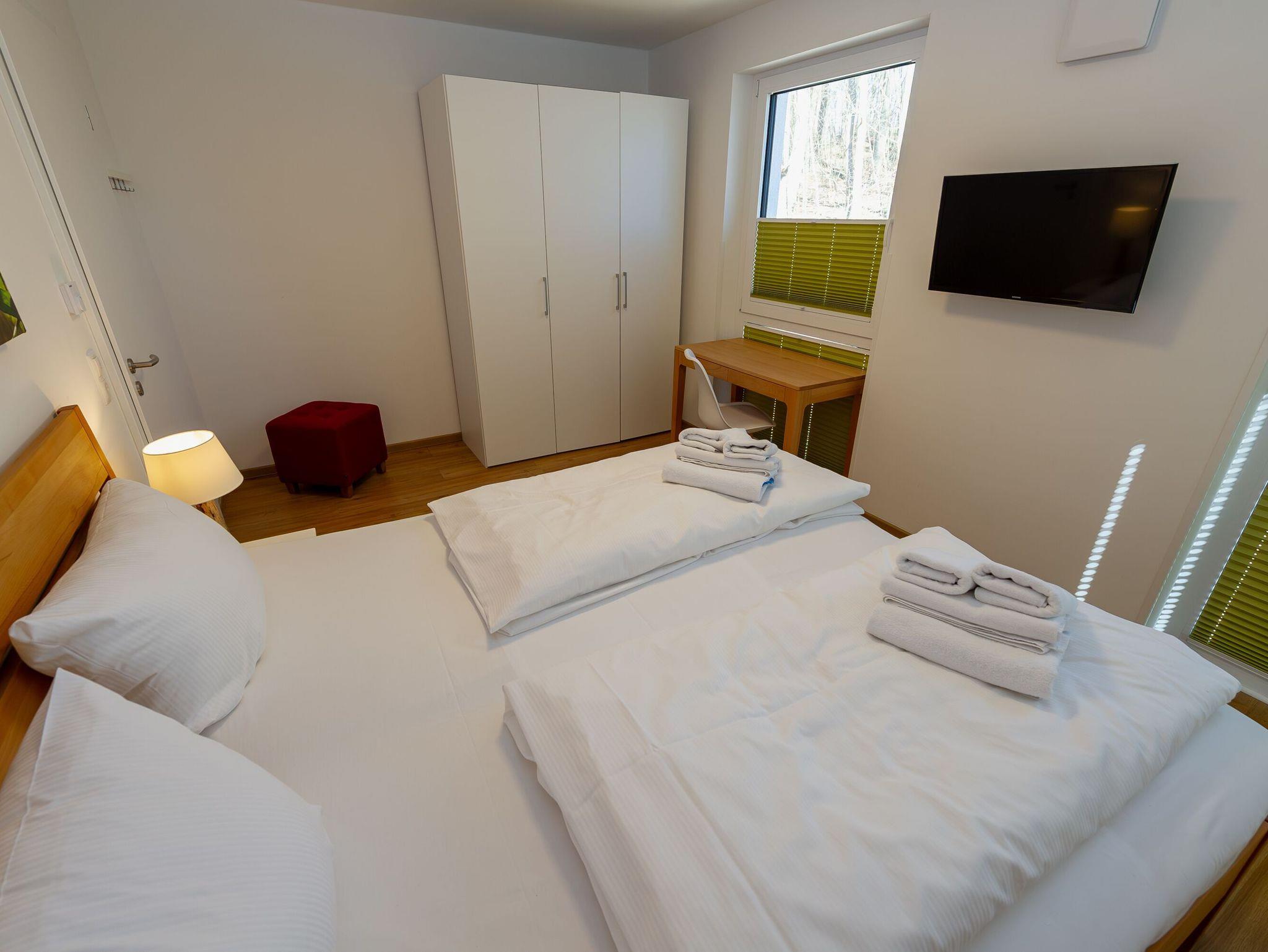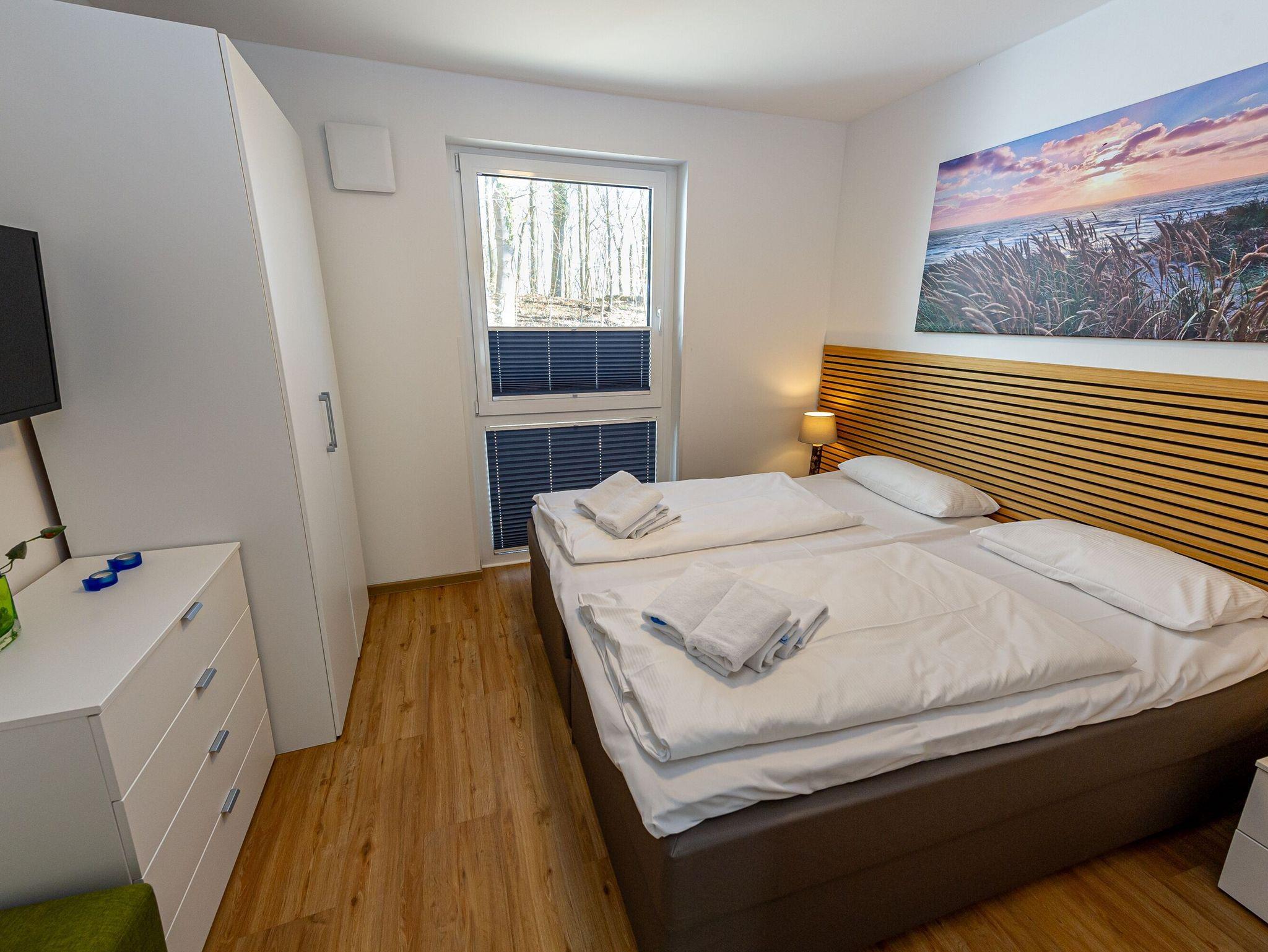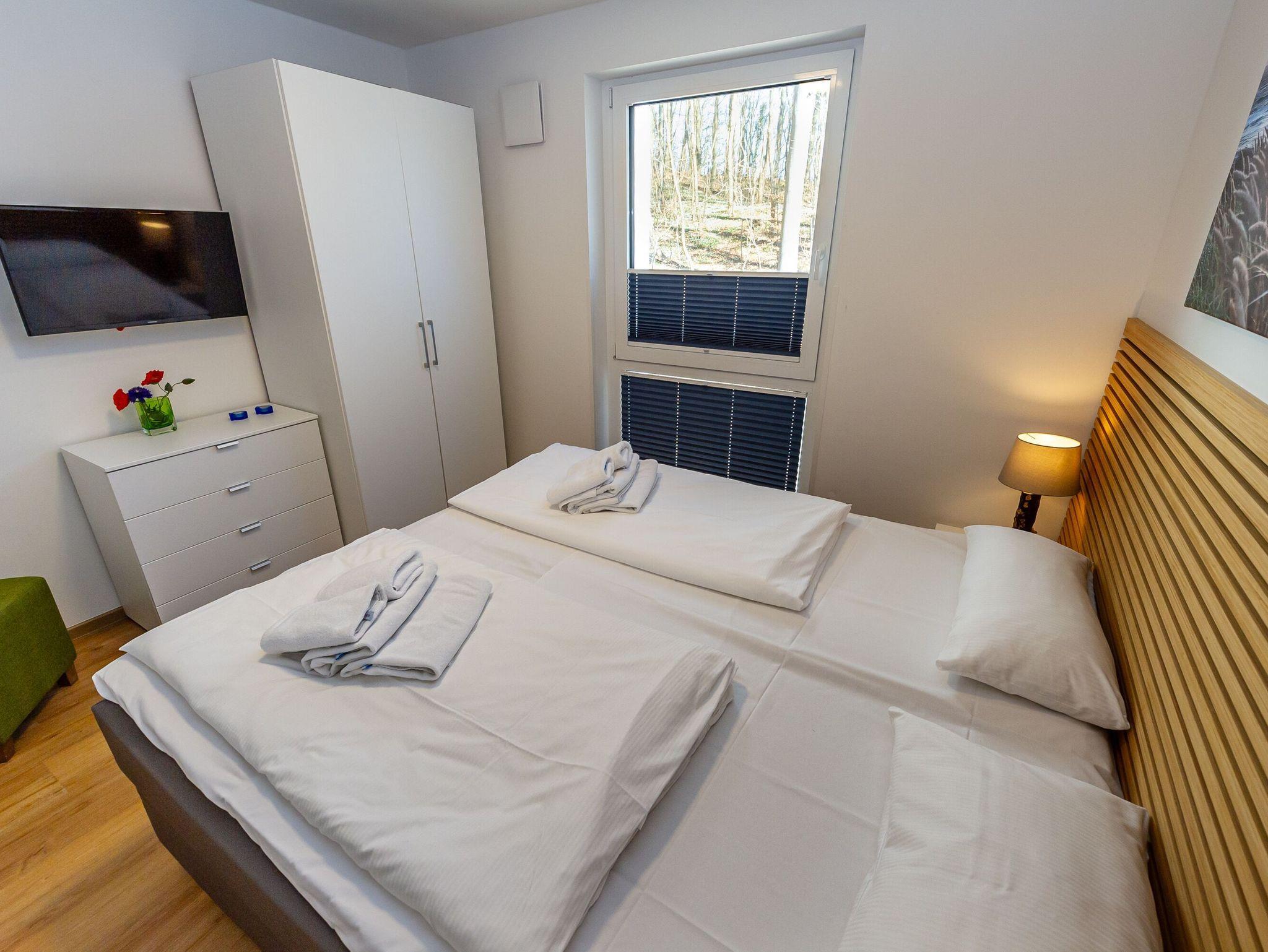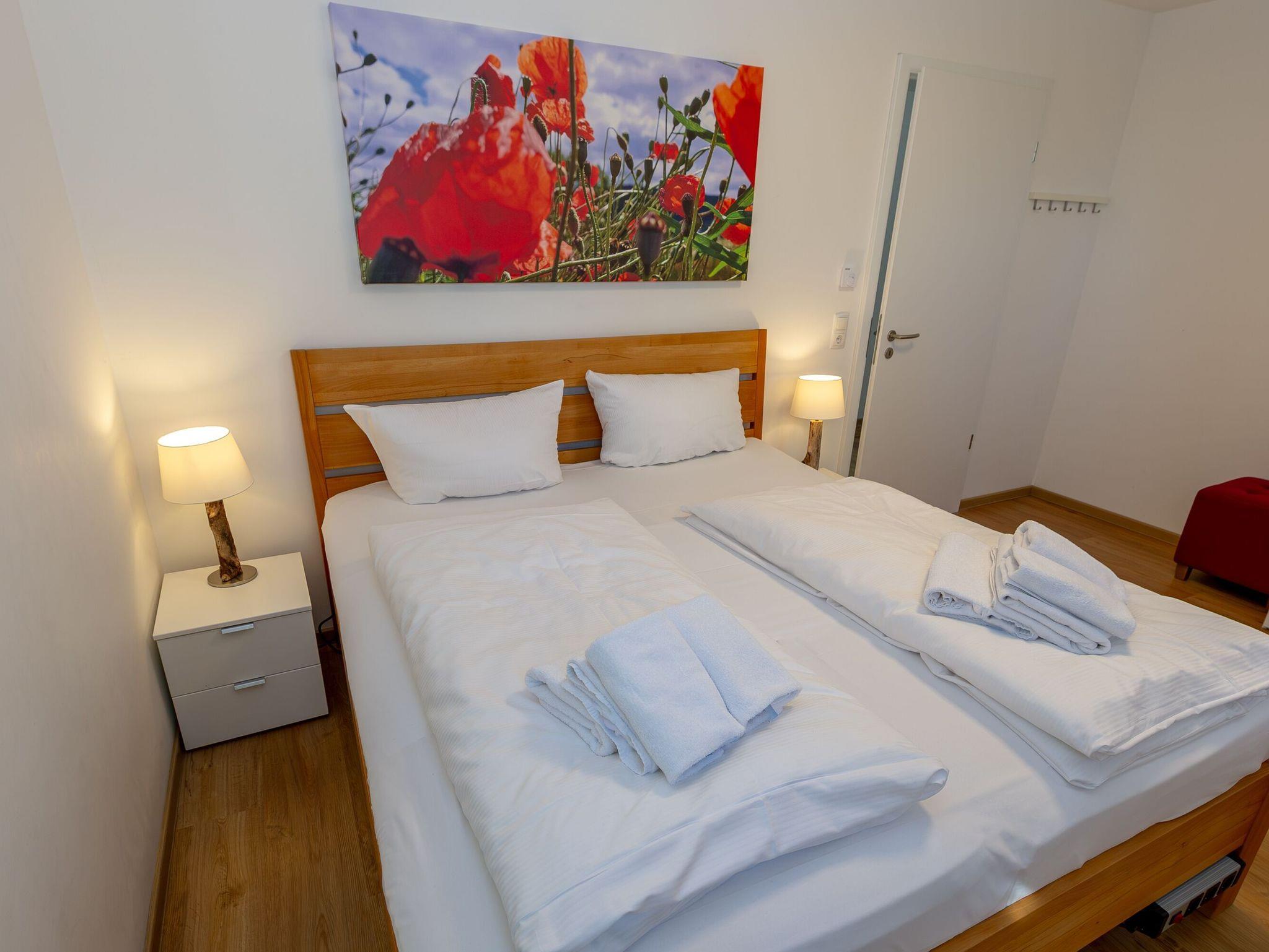 Ihre beiden Schlafzimmer sind mit wunderbar bequemen Betten (1,80x2,00m), geräumigen Kleiderschränken und zusätzlichen 32 Smart-TVs ausgestattet. Die Boxspringbetten im kleinen Schlafzimmer können entweder als Einzelbetten gestellt werden oder als Doppelbett.