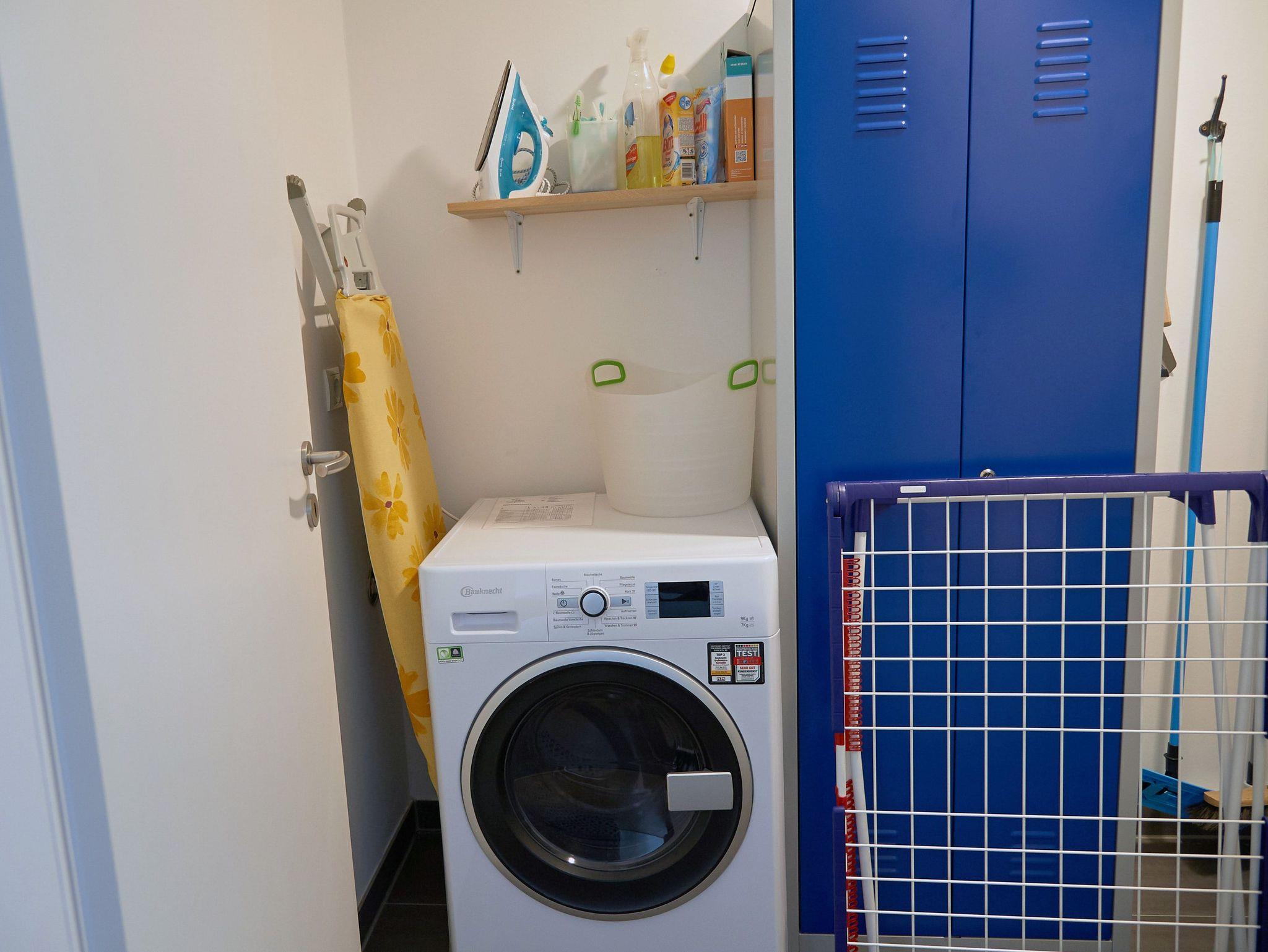 • Im Hauswirtschaftsraum stehen Ihnen u.a. ein Waschtrockner sowie Bügel- und Reinigungsutensilien zur Verfügung.