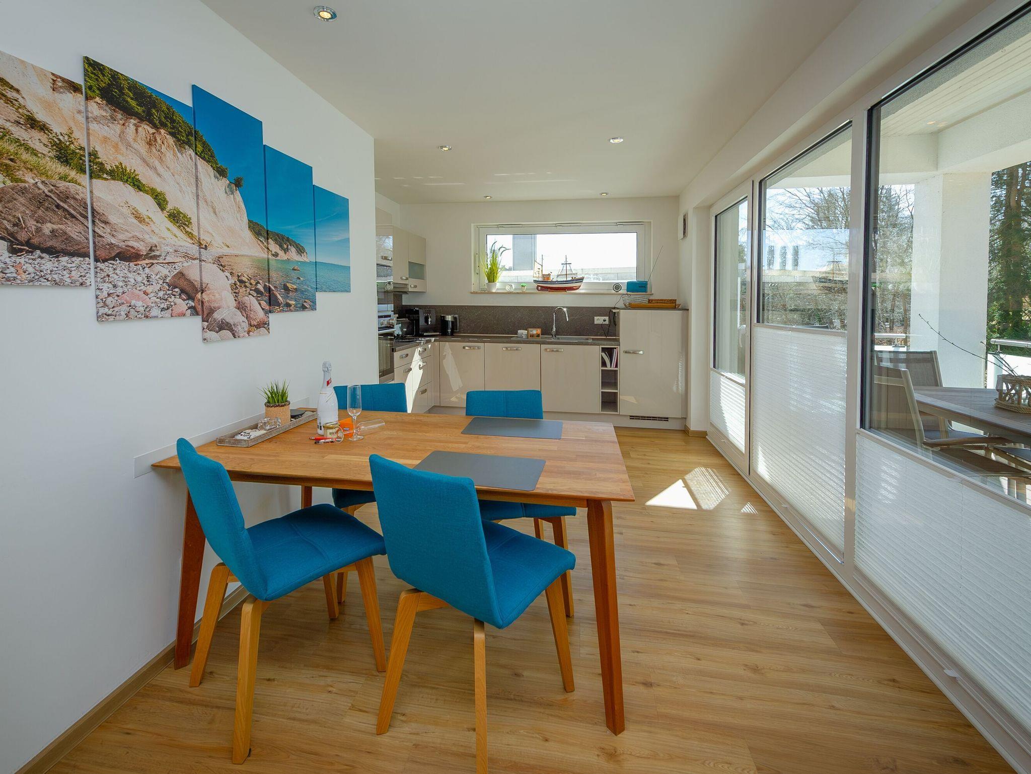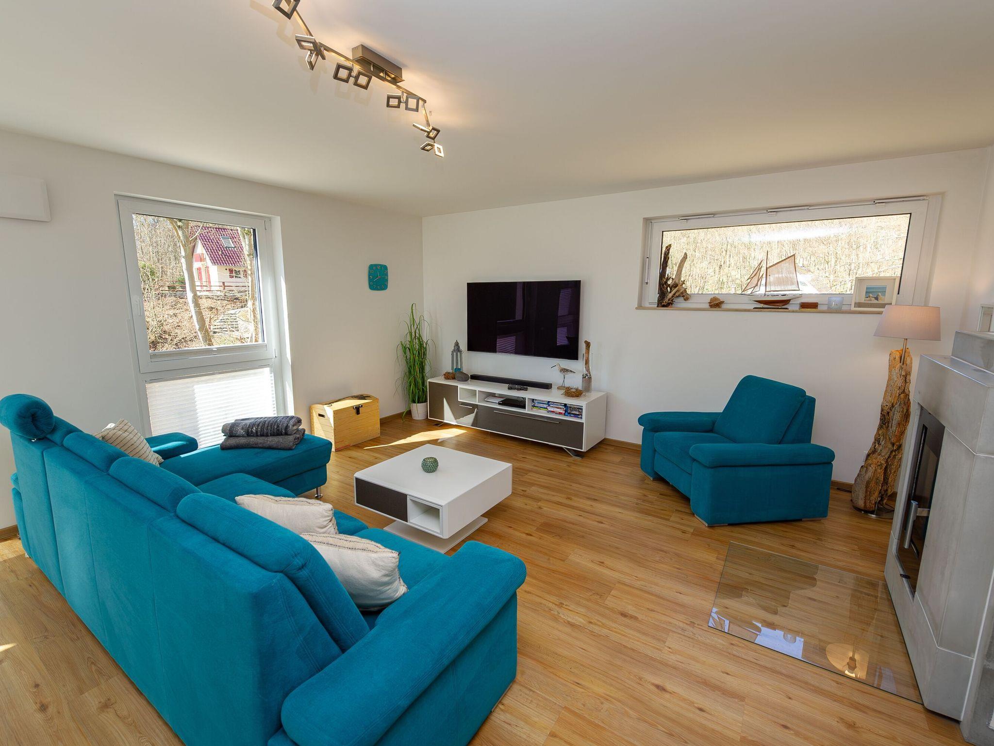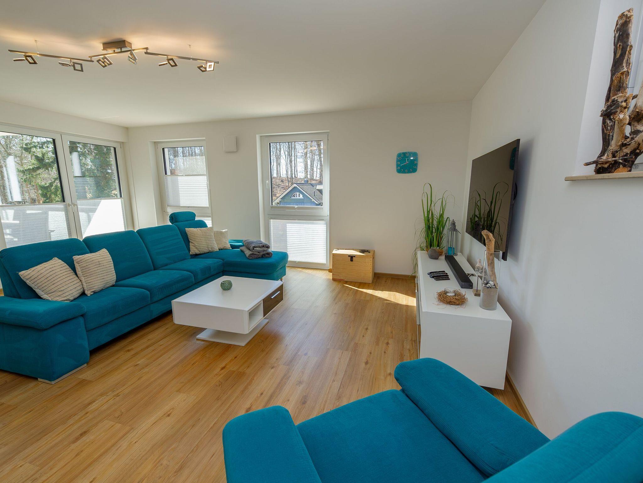 Herzstück Ihres Zuhauses auf Zeit ist das offen gestaltete Wohn- und Esszimmer mit Kaminofen (Holz ist kostenfrei vorhanden),[nbsp] einem bequemen Relaxsofa, einem Sessel und einem 65“ QLED 4K Smart-TV mit Bluetooth Soundbar und Bluray-Player. Natürlich steht Ihnen in der gesamten Wohnung auch kostenfreies W-LAN zur Verfügung. Einen Schreibtisch zum mobilen Arbeiten gibt es auch.