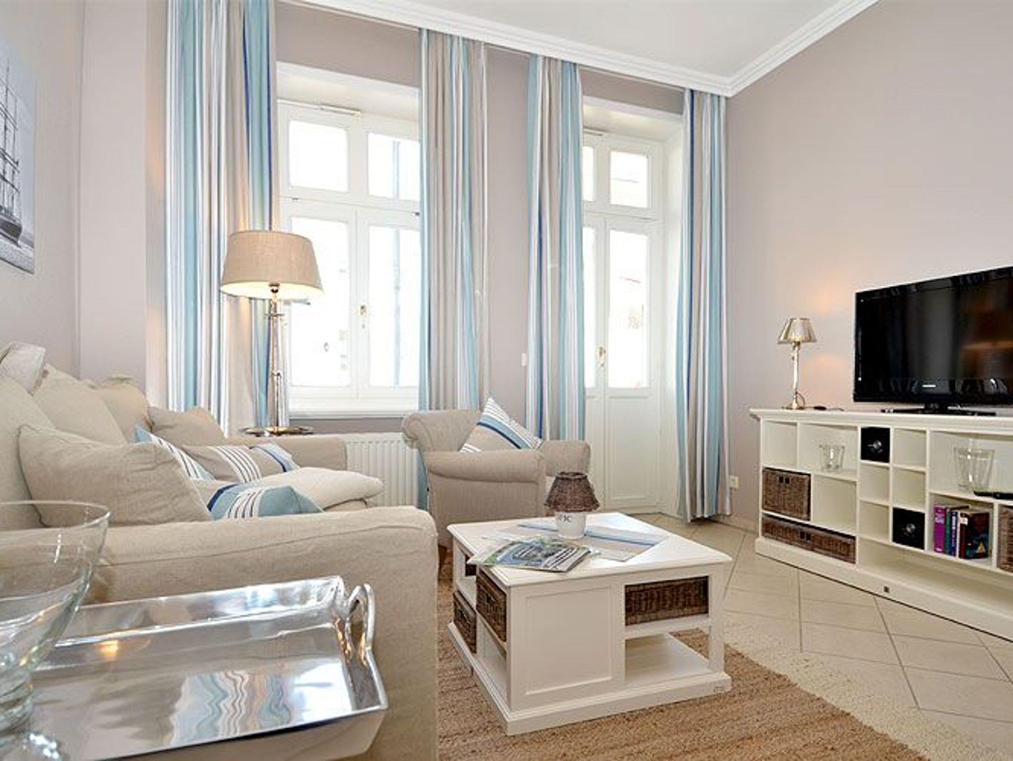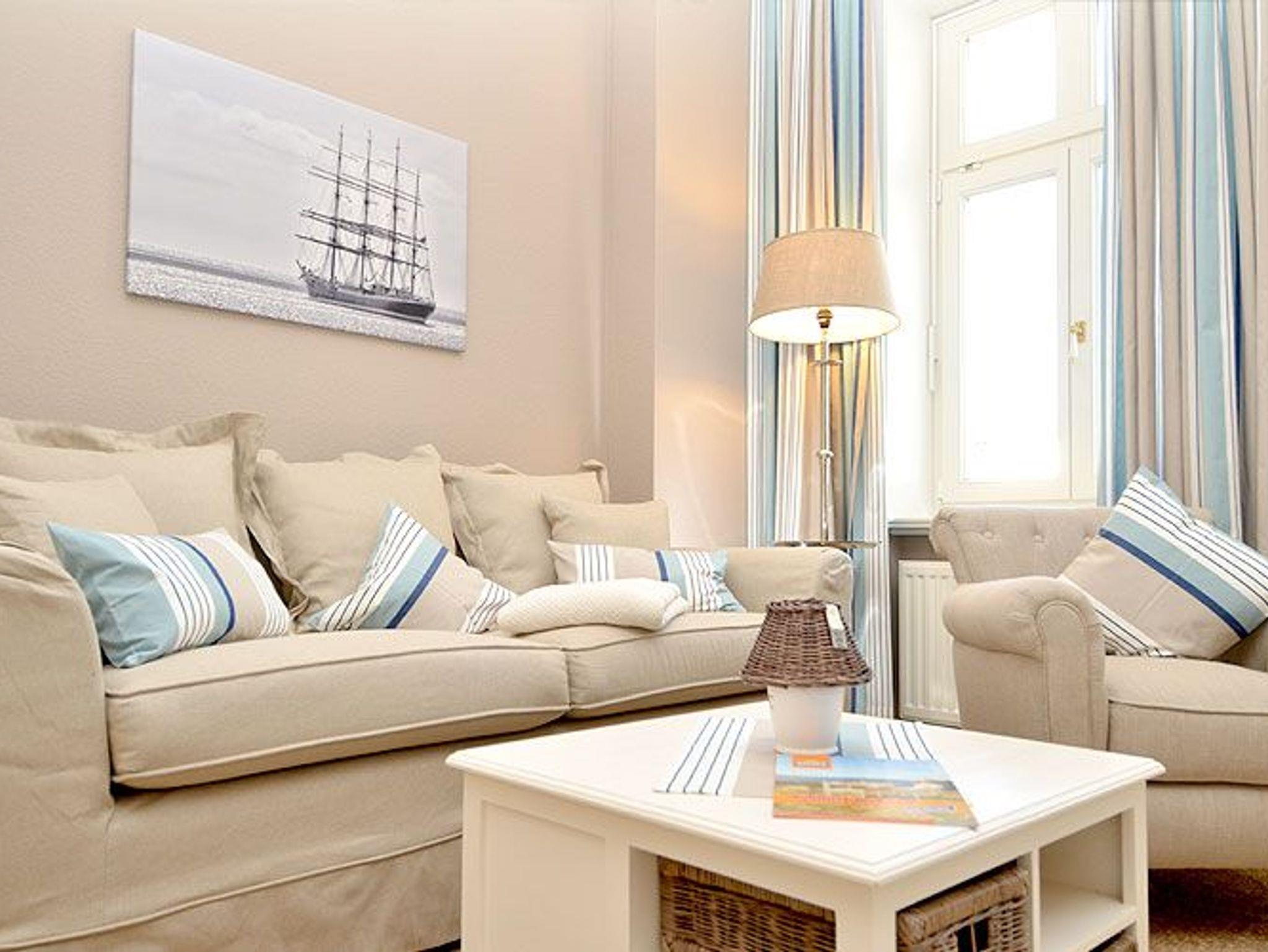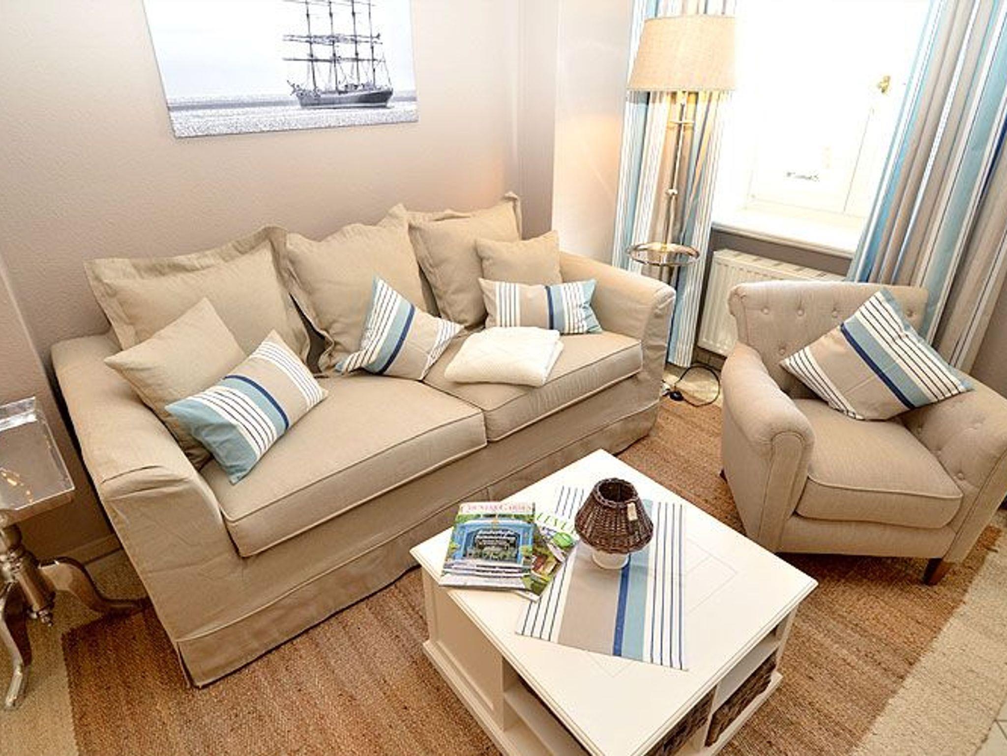 Dieses ca. 40 m² große, stilvoll eingerichtete 2-Raum-Appartement begrüßt Sie im 1. Obergeschoss und hat einen 12 m² möblierten Balkon nach Norden. Wunderschöne Landhausmöbel, ausgesuchte Stoffe und warme Erdtöne schaffen zusammen mit leicht maritimen Akzenten ein ganz einzigartiges Wohlfühlambiente. Die gesamte Nichtraucherwohnung ist gefliest bzw. mit Designerboden in Vintage-Oak-Optik versehen.