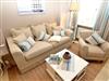 Vom Flur aus gelangen Sie in den überaus geschmackvoll ausgestatteten Wohnbereich mit der kuscheligen Couch und dem bequemen Sessel, einem Flachbild-TV, einer Stereoanlage und einem Esstisch für zwei Personen. Während Ihres Aufenthaltes steht Ihnen kostenfreies W-LAN zur Verfügung.