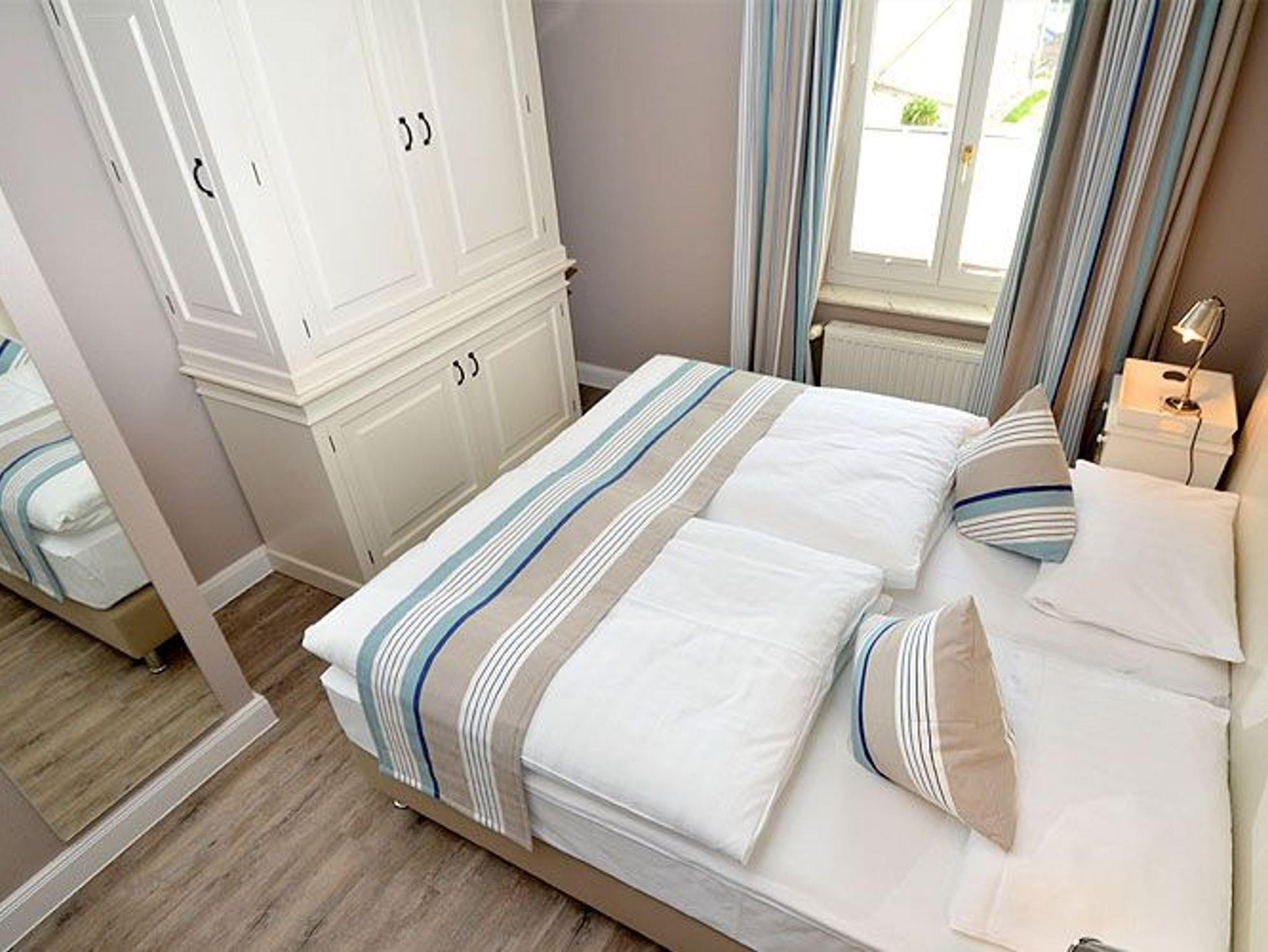 Die gesamte Nichtraucherwohnung ist gefliest bzw. mit Designerboden in Vintage-Oak-Optik versehen. Das Schlafzimmer ist mit einem 5 Star-Deluxe-Boxspring-Doppelbett (1,80 x 2,00 m) sowie ausreichend Stauraum für Ihre Garderobe ausgestattet. Die Wohnung verfügt darüber hinaus über ein modernes Duschbad.