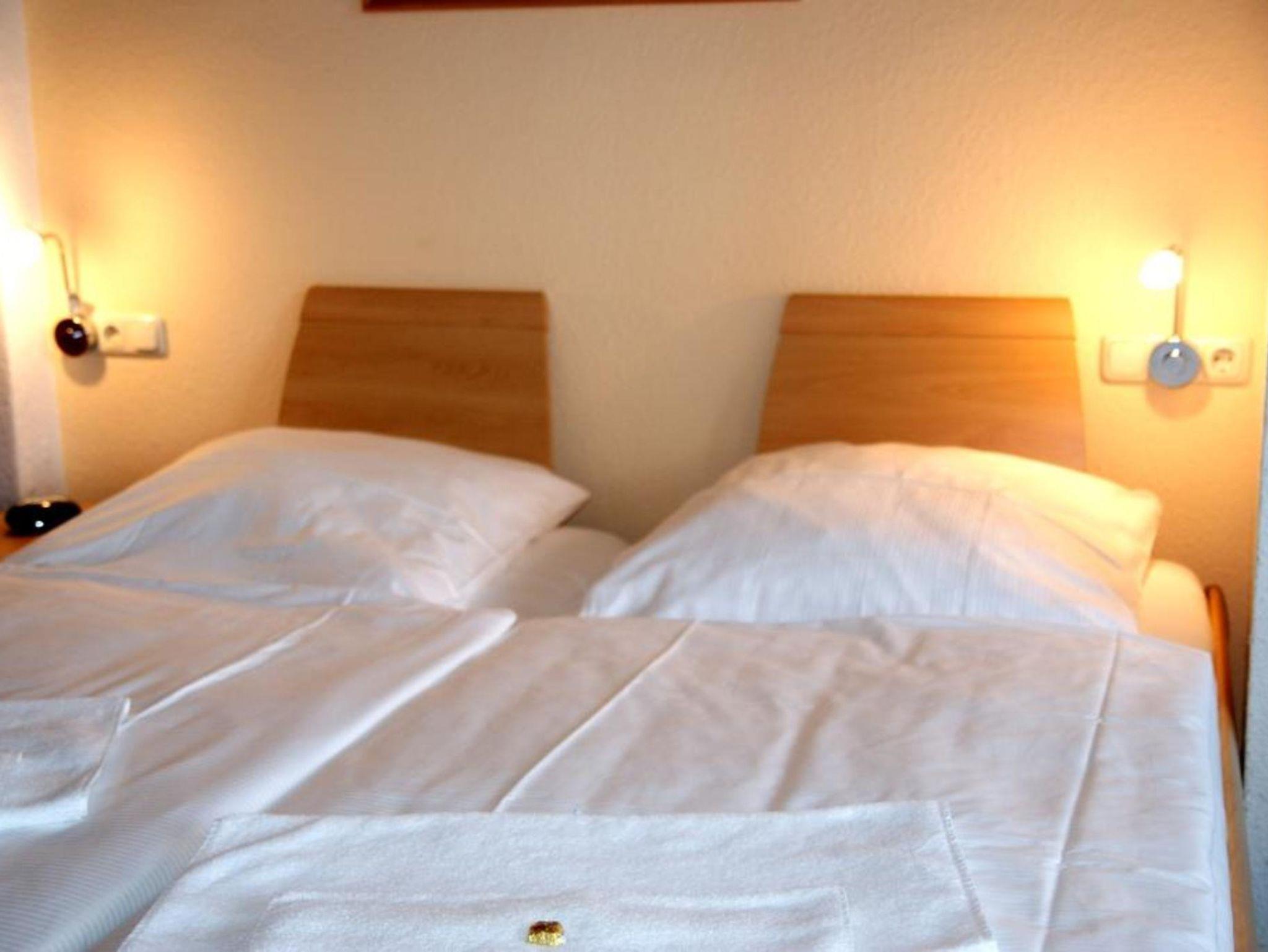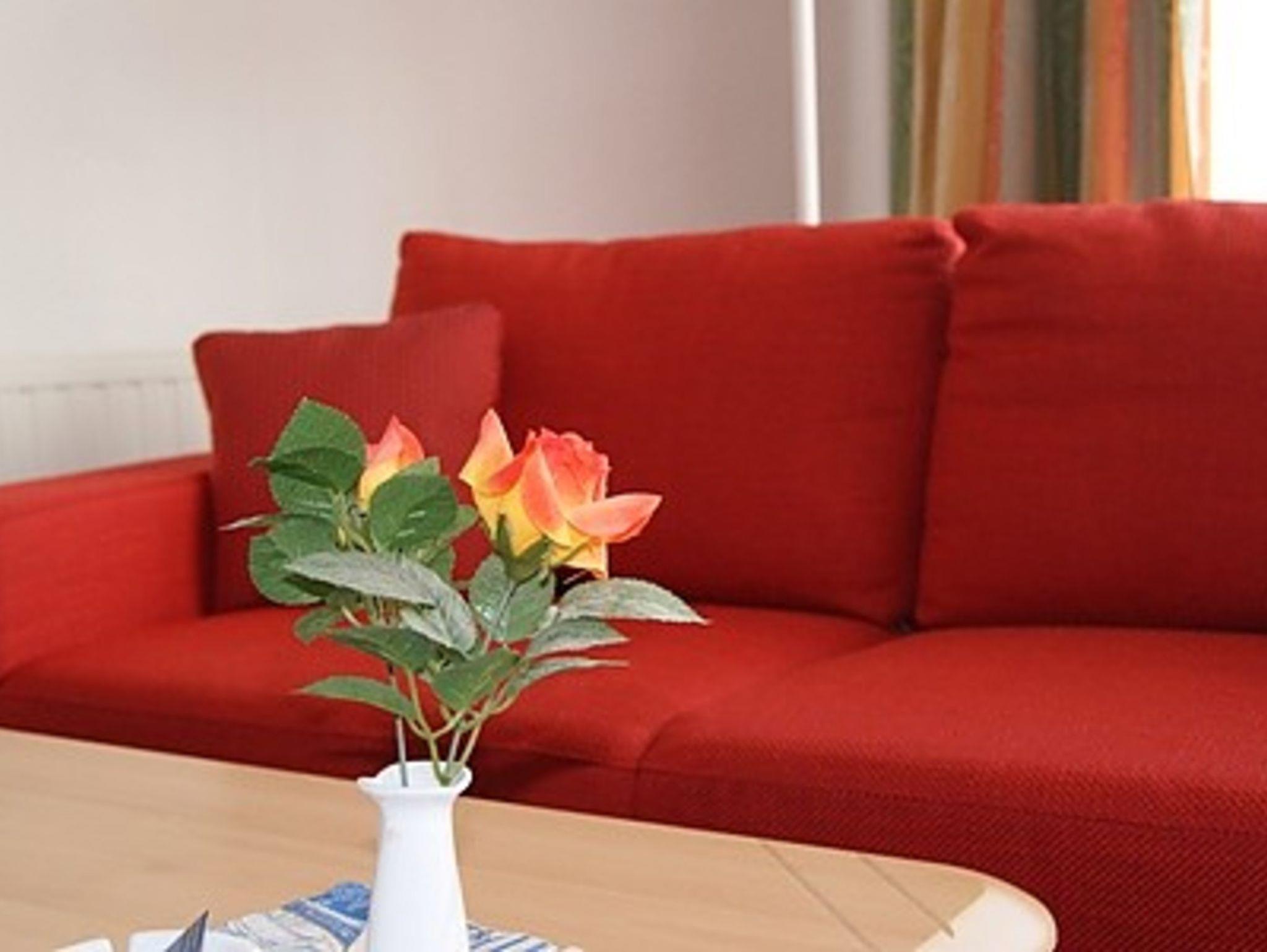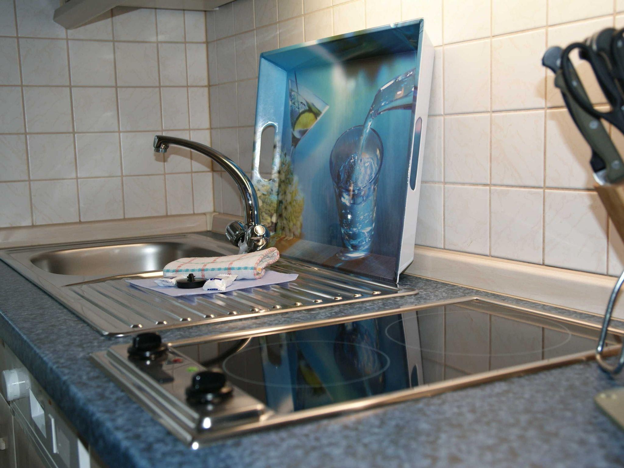 Das 1 Raumappartement hat einen Wohn-Schlafraum mit Doppelbett für 2 Pers.und einer ausziehbaren Couch, Kabel-TV,CD Stereoanlage ,Esstisch, gut ausgestattete Küchenzeile mit Geschirrspüler, Kaffeemaschine, Toaster und Microwelle. Babybett ( ohne Wäsche )und Hochstuhl für die Kleinen stellen wir zur Verfügung ( bitte vorbestellen ) .