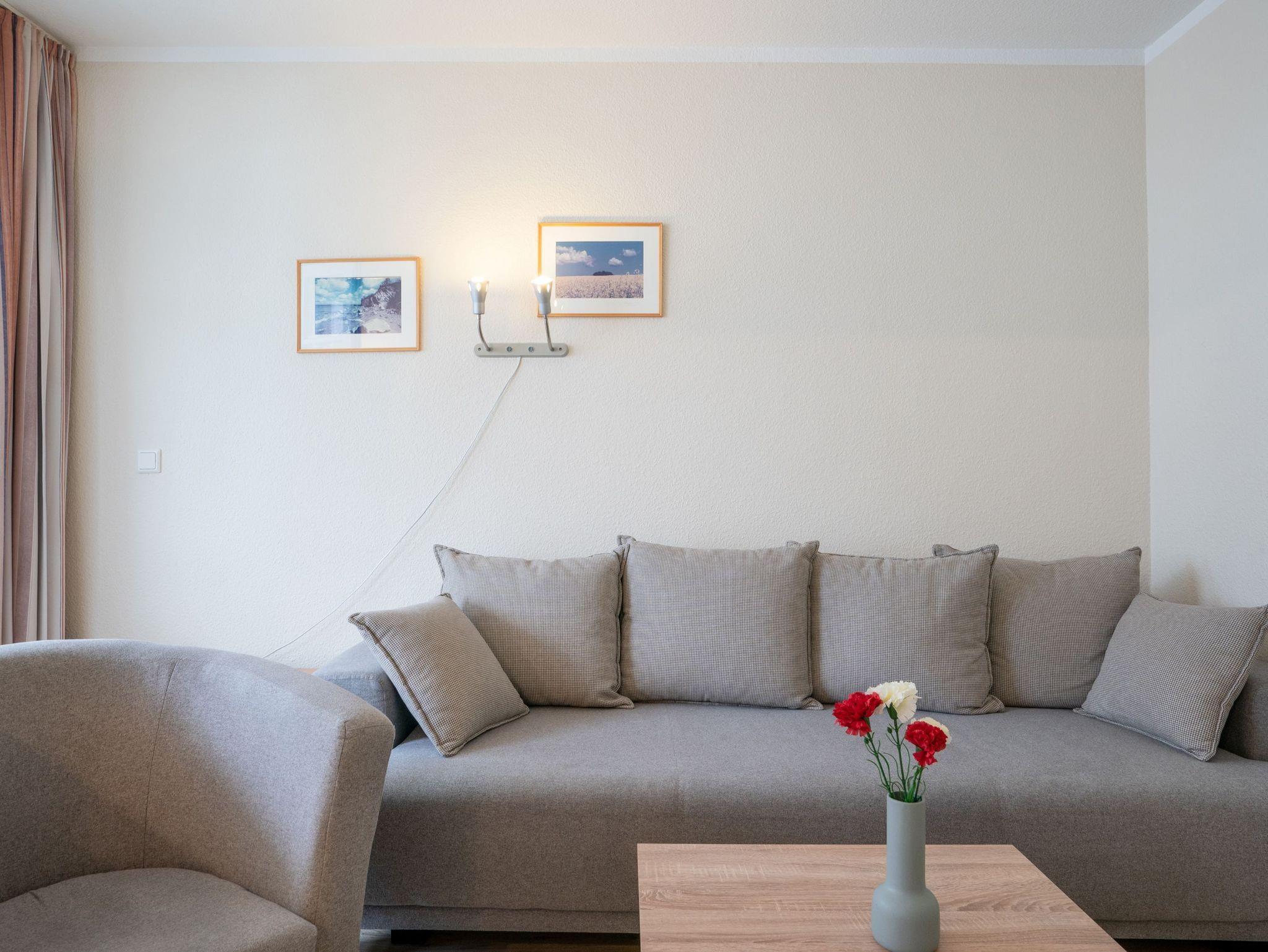 Herzlich willkommen in der Ferienwohnung 512 im Haus Göhren! Unsere 52 m² große Wohnung bietet Platz für bis zu 4 Personen und verfügt über ein gemütliches Schlafzimmer und ein modernes Badezimmer.
