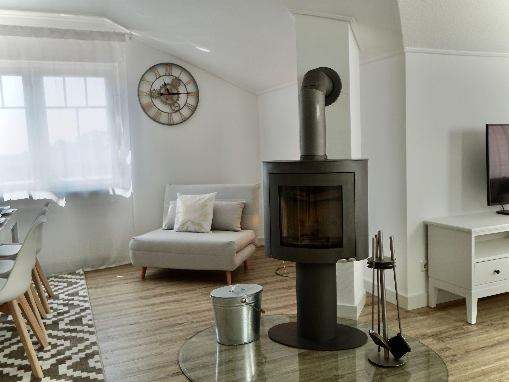Mit einer Größe von 85 m² eignet sich das Appartement für 1-4 Personen und befindet sich im Dachgeschoss zur Südseite mit großer möblierter Dachterrasse. In dem geräumigen Wohn-/Essbereichen mit großem Esstisch, einem Kamin, LCD TV und bequemer Sofaecke (Liegefläche 1,40 x 2 m) können Sie gemeinsam gemütliche Stunden verbringen. Außerdem verfügt das Appartement über eine voll ausgestattete offene Küche mit Geschirrspüler. Ein separates Schlafzimmer mit einem komfortablen Doppelbett (1,80 x 2 m) und TV bietet die Möglichkeit zum Rückzug. Entspannen Sie in der privaten Sauna, die sich im Bad mit Badewanne, Dusche, WC und Fön befindet. Bei Ankunft erwartet Sie eine Erstausstattung an Bettwäsche und Handtüchern.
