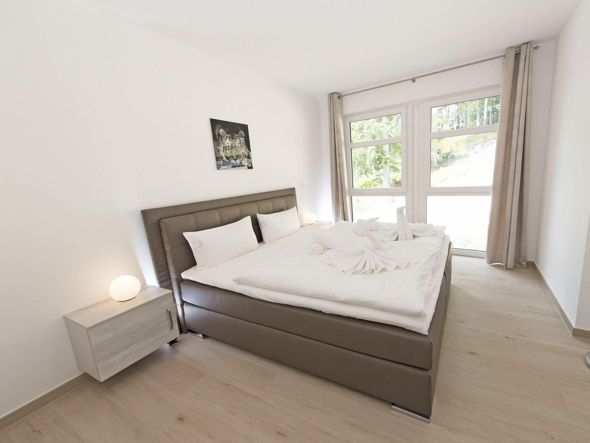 Die beiden Schlafzimmer verfügen je über ein elegantes Boxspringbett, je einen weiteren Full-HD-Fernseher sowie ausreichend Stauraum für Ihre Garderobe.
