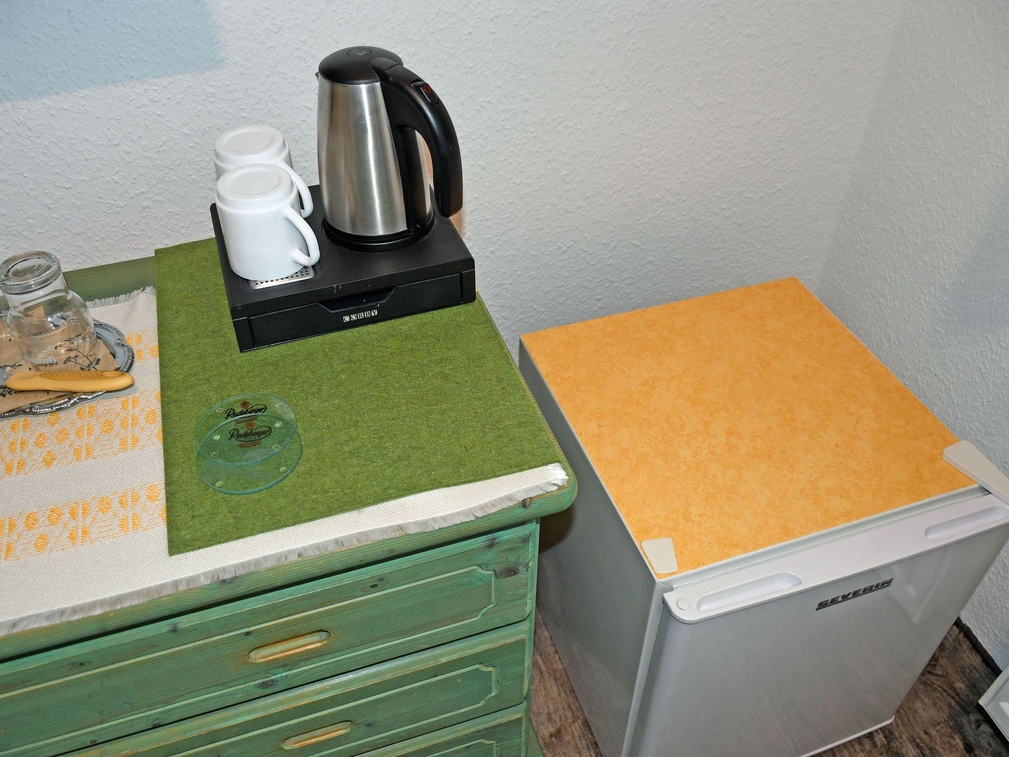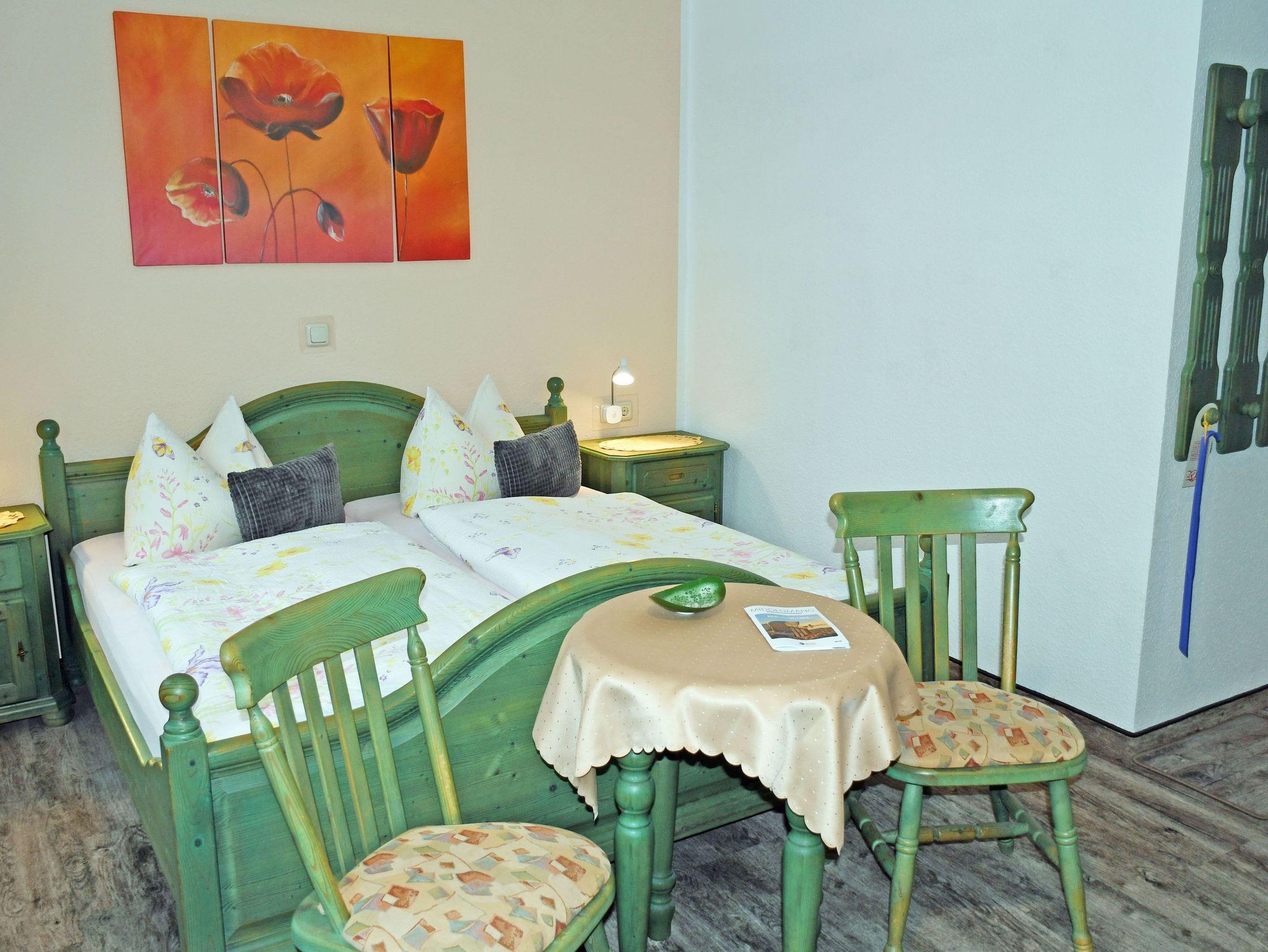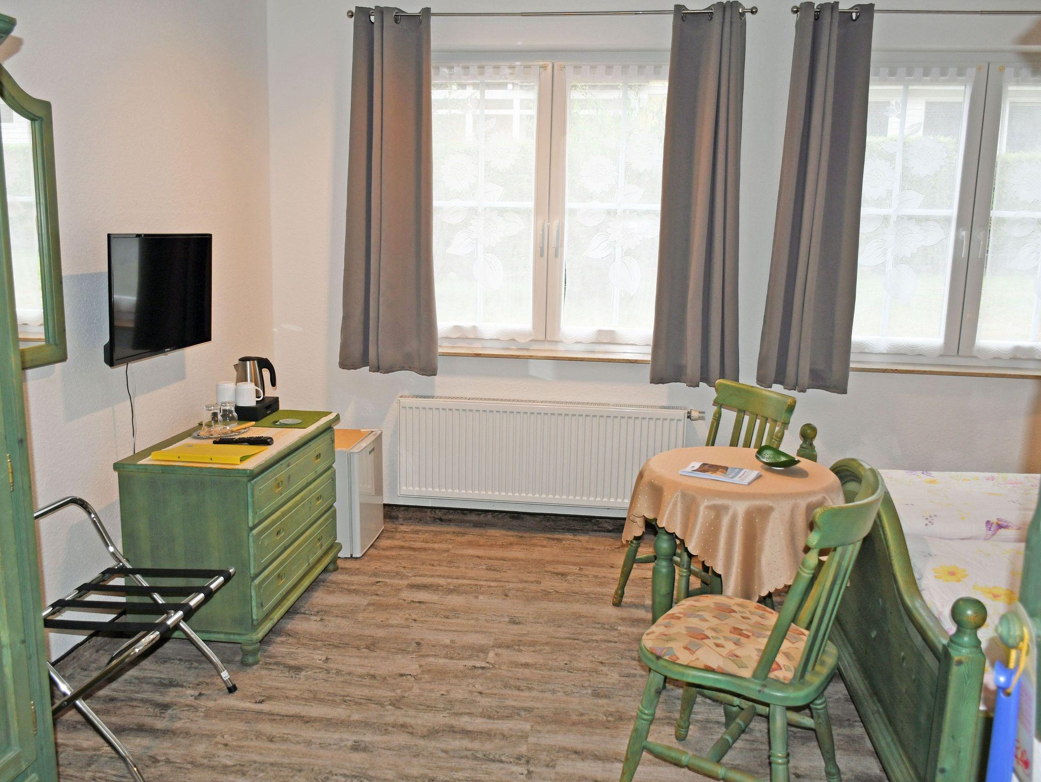 Unsere modern eingerichteten Doppelzimmer (21 qm) sind mit rustikalen Bauernmöbeln komfortabel ausgestattet und in den Farben Blau oder Grün gehalten. Zur Ausstattung gehören bequeme Doppelbetten mit Nachttischen und Leselampen, Sitzmöbel mit Tisch, Kleiderschrank, Kühlschrank, Wasserkocher, Flachbild-TV und Radio.Tassen und Löffel sind ebenfalls vorhanden. Separat für alle Gäste haben wir Geschirr, wie Teller, Teetassen sowie Besteck und Geschirrhandtücher. Ab 2016 gibt es auch einen kostenlosen WLAN-Anschluss. Bei Ihrer Anreise liegen frische Handtücher bereit und die Betten sind selbstverständlich bereits mit Bettwäsche bezogen. Alle Zimmer verfügen über ein separates Bad mit Tageslicht, Dusche und WC. In unserem Frühstücksraum starten Sie den Tag mit einem ausgiebigen Frühstück vom reichhaltigem Buffet. Wir halten auch eine Auswahl an Getränken für Sie bereit.