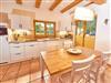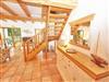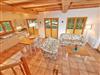 Zwei Sofas vor dem großen Flachbild-TV, kostenfreies W-LAN und der Kaminofen ermöglichen angenehme Abende, auch wenn es draußen vielleicht gerade nicht so schönes Wetter ist. Der große Esstisch ist für vier Personen geeignet. Die harmonisch in den Wohnbereich integrierte Küchenzeile ist ausgestattet mit einem 4-Zonen-Cerankochfeld, einem Kühlschrank mit Gefriermöglichkeit, einer Spülmaschine, einer Mikrowelle mit Grill, Kaffeemaschine, Toaster, Wasserkocher und diversem Kleininventar, das die Ausstattung komplettiert. Auch eine Waschmaschine ist hier untergebracht.