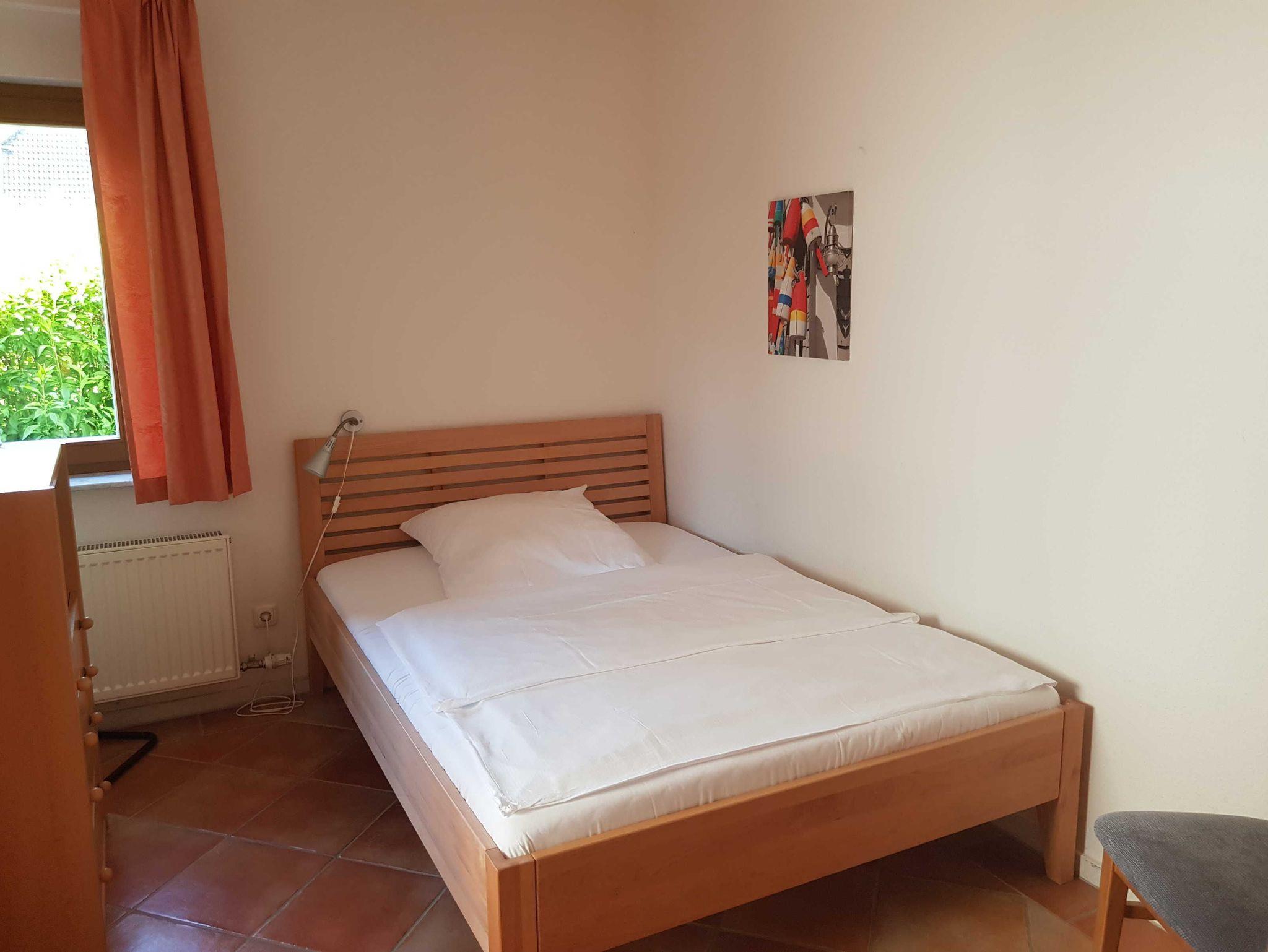 An die Terrasse schließt sich der Wohnraum mit Sofaecke, Essbereich und Küchenzeile an. Ein Tageslicht-Bad mit Dusche und drei Schlafzimmer (ein SZ mit Doppelbett, ein SZ mit französischem Bett und ein sehr kleines SZ mit Etagenbett) komplettieren die Ferienwohnung.