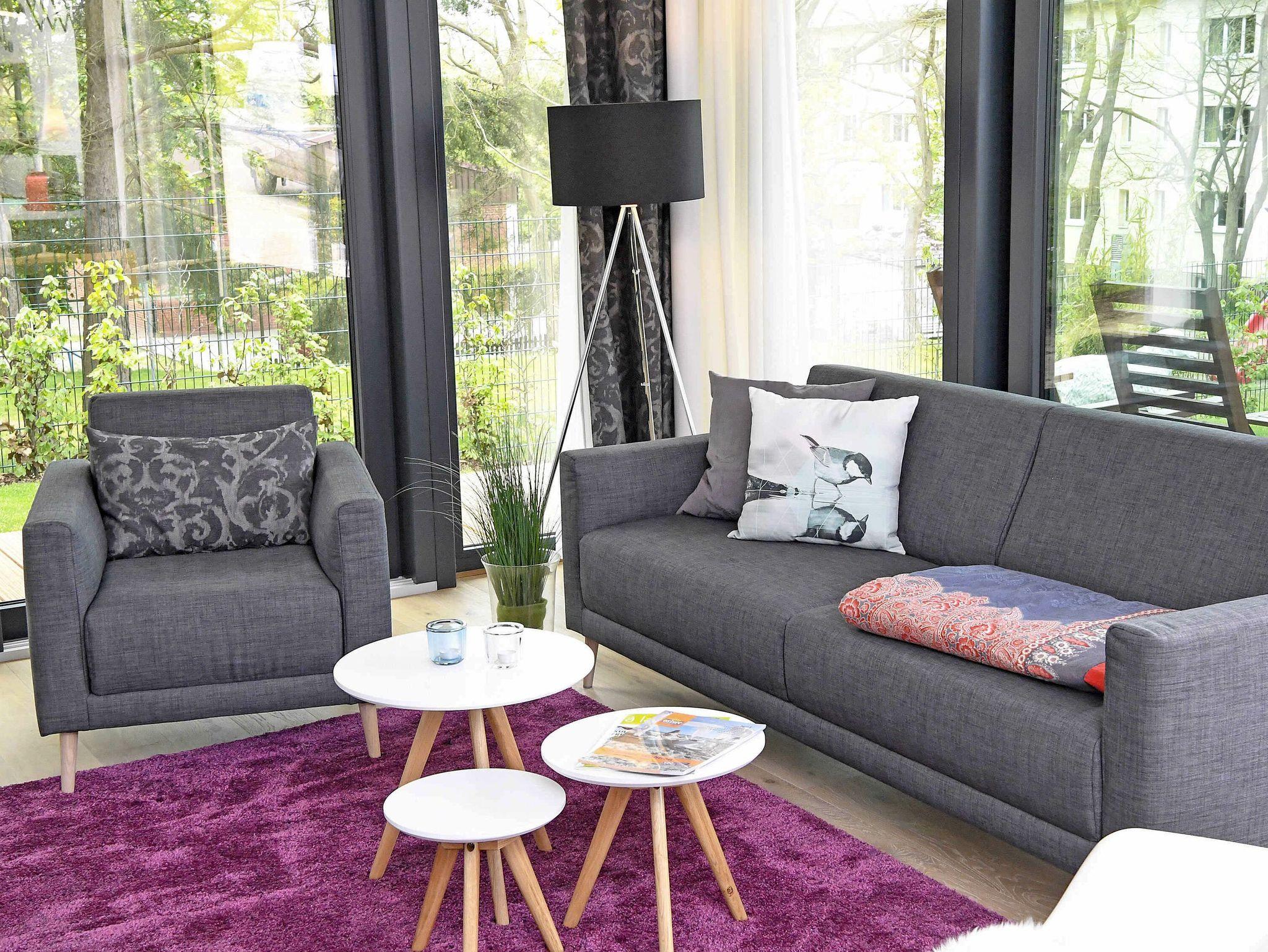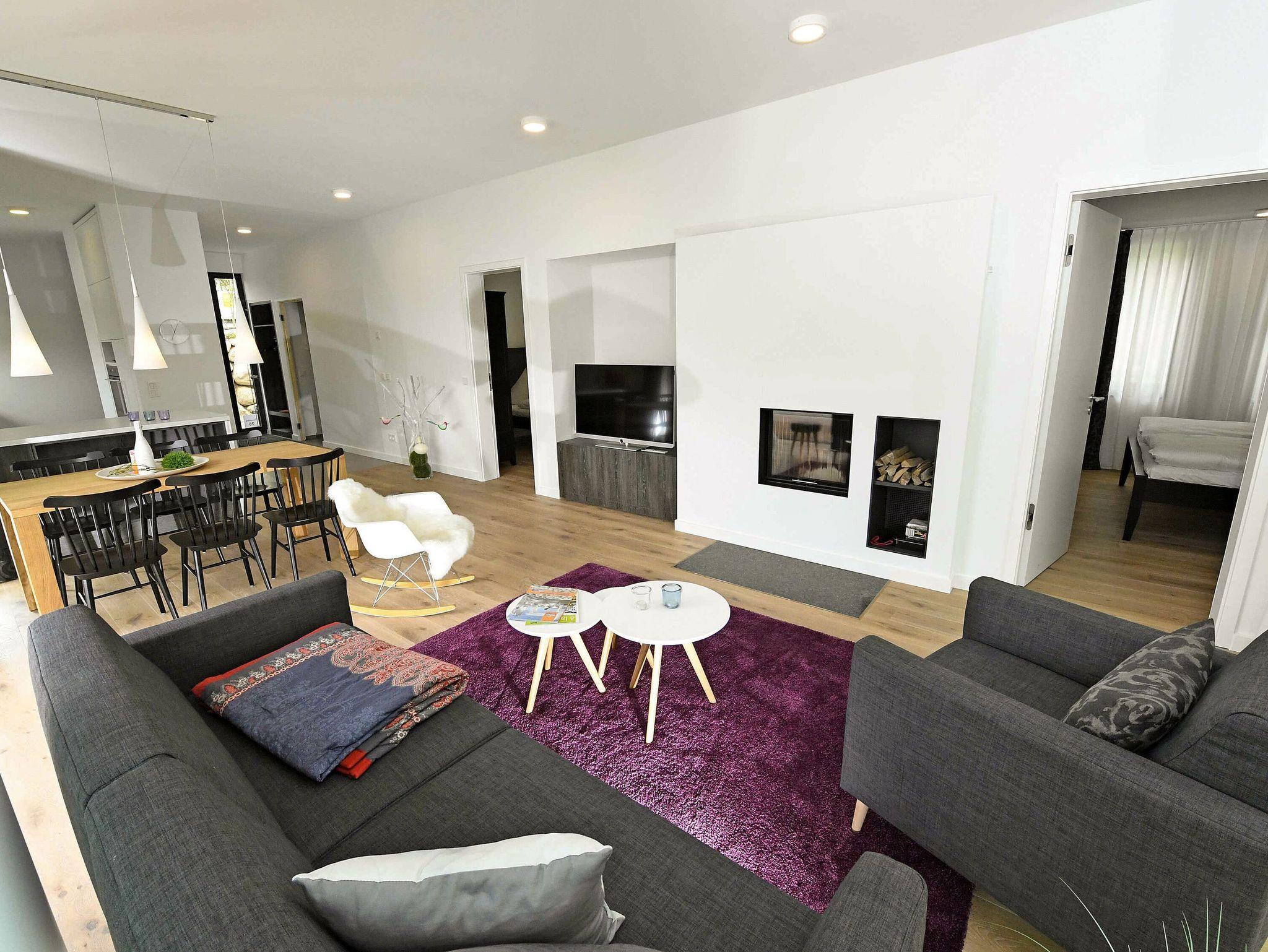 Diese wohltuend großzügige Wohnung im Erdgeschoss mit ca. 103 m² Wohnfläche betreten Sie über einen separaten Eingang. Sie verfügt über einen offenen Wohn-/Essbereich mit hochwertiger Sitzgruppe, einem Plasma-TV sowie einem großen Esstisch. Der Kaminofen sorgt für behagliche Wärme. Kaminholz steht Ihnen kostenfrei zur Verfügung. Zudem ist eine Fußbodenheizung vorhanden.