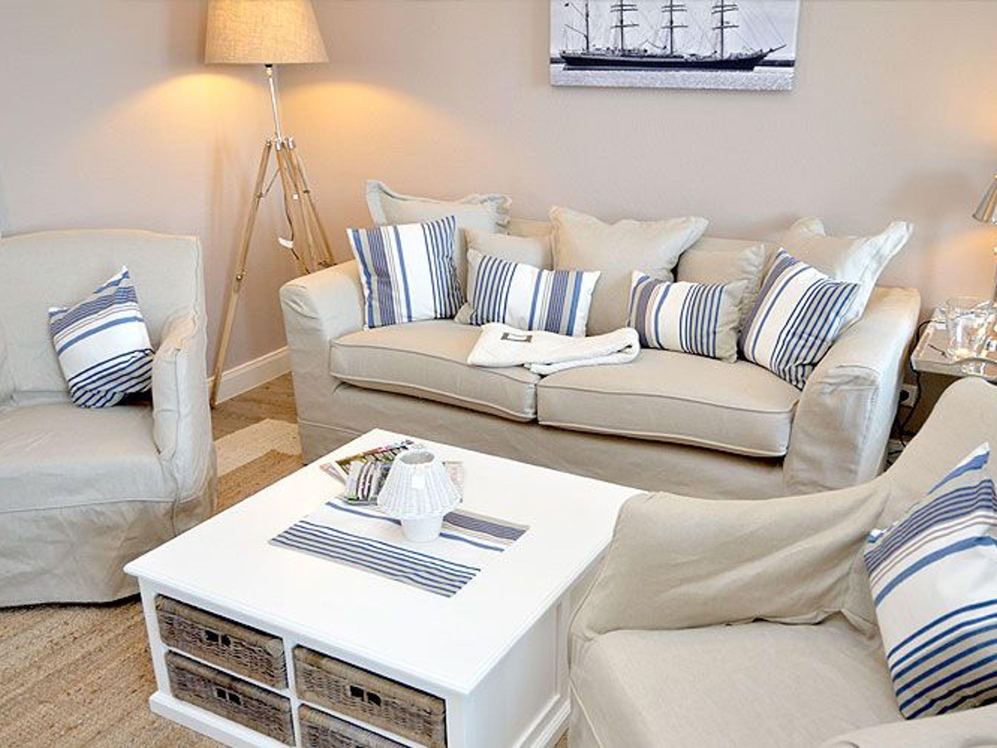 Vom Flur aus gelangen Sie in den überaus geschmackvoll ausgestatteten Wohnbereich mit der kuscheligen Couch und dem bequemen Sessel, einem Flachbild-TV, einer Stereoanlage und einem Esstisch für vier Personen. W-LAN steht Ihnen kostenfrei zur Verfügung.