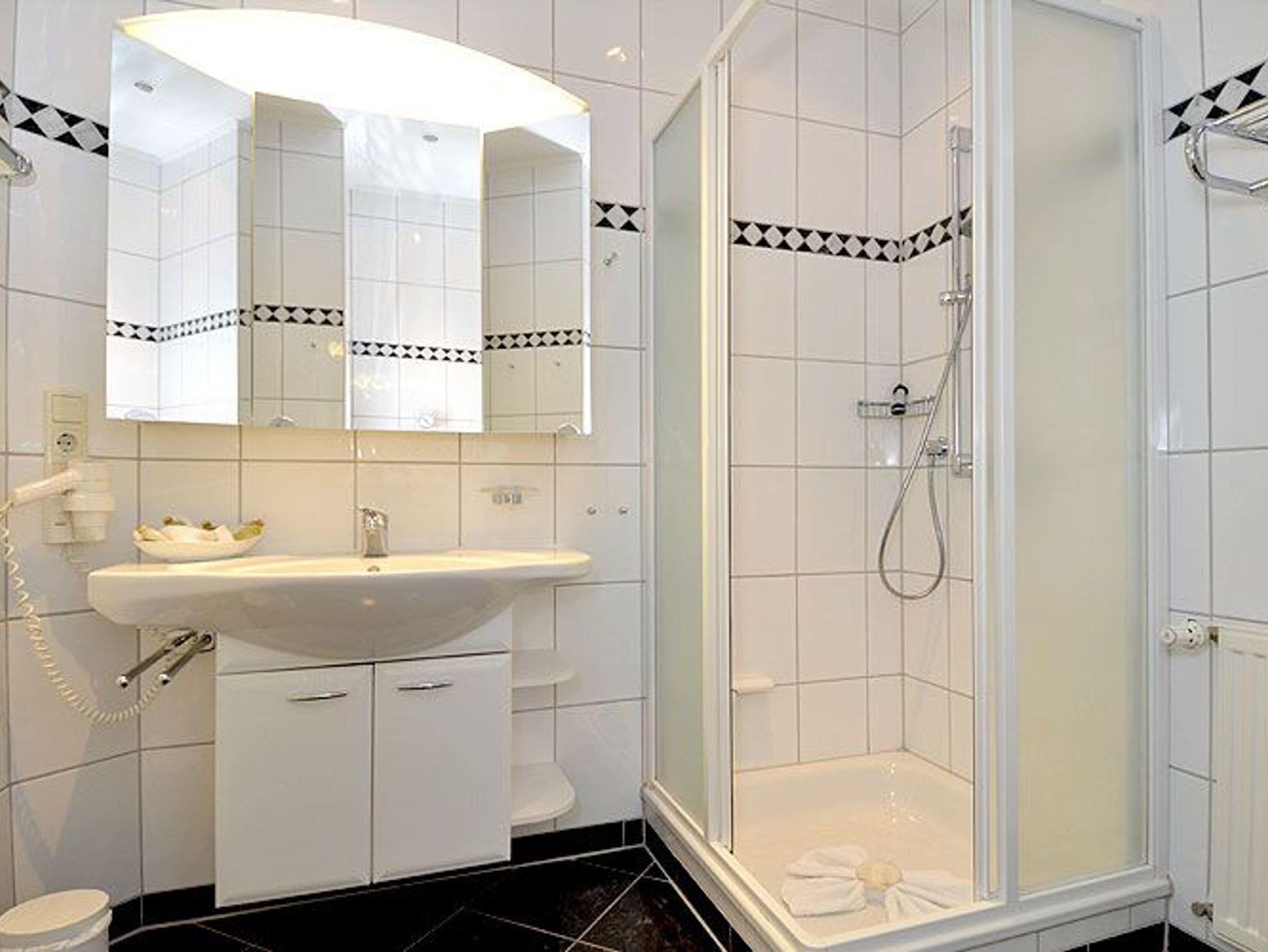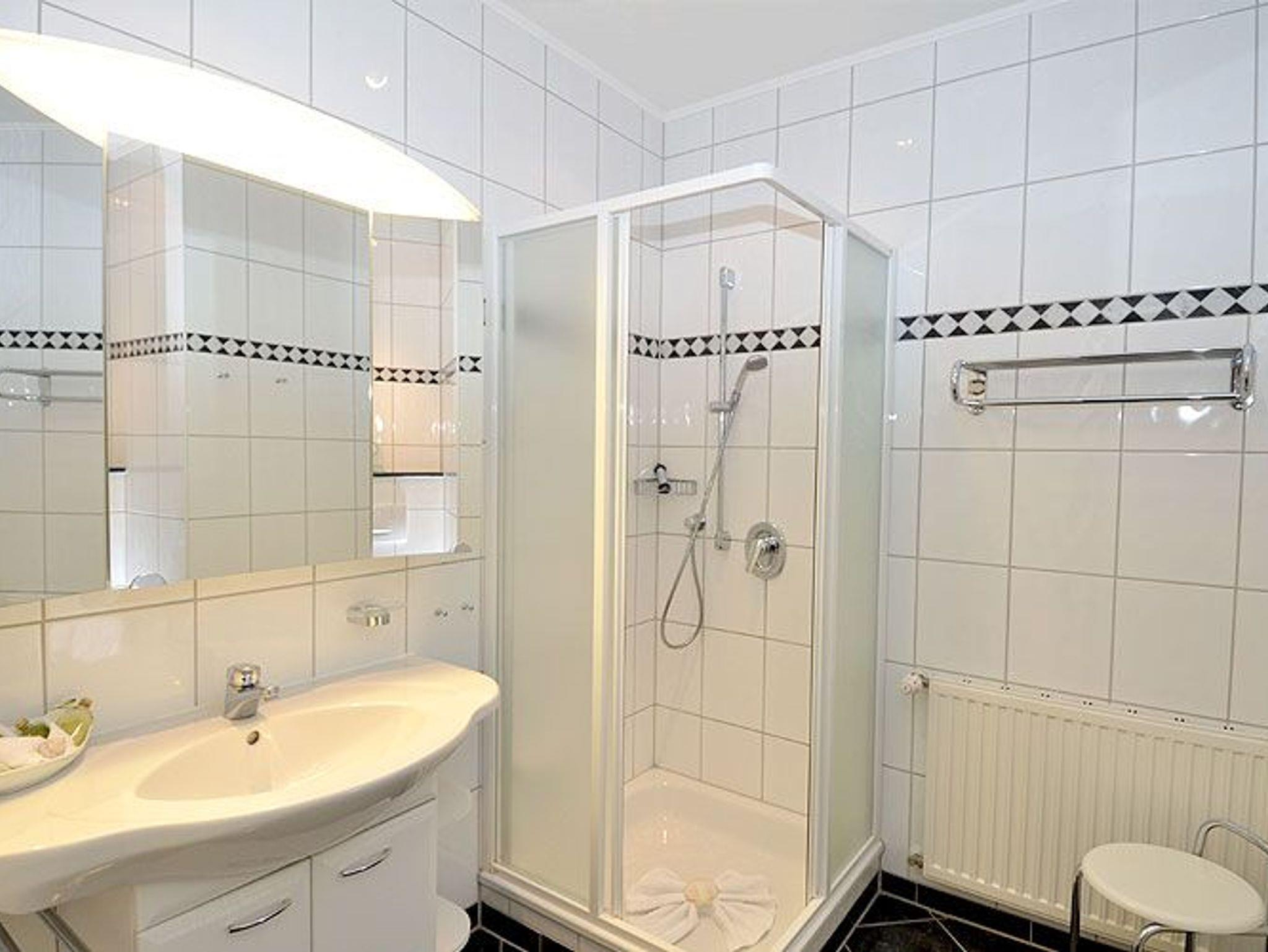 Die Wohnung verfügt auch über ein modernes Duschbad und ein zusätzliches Gäste-WC.