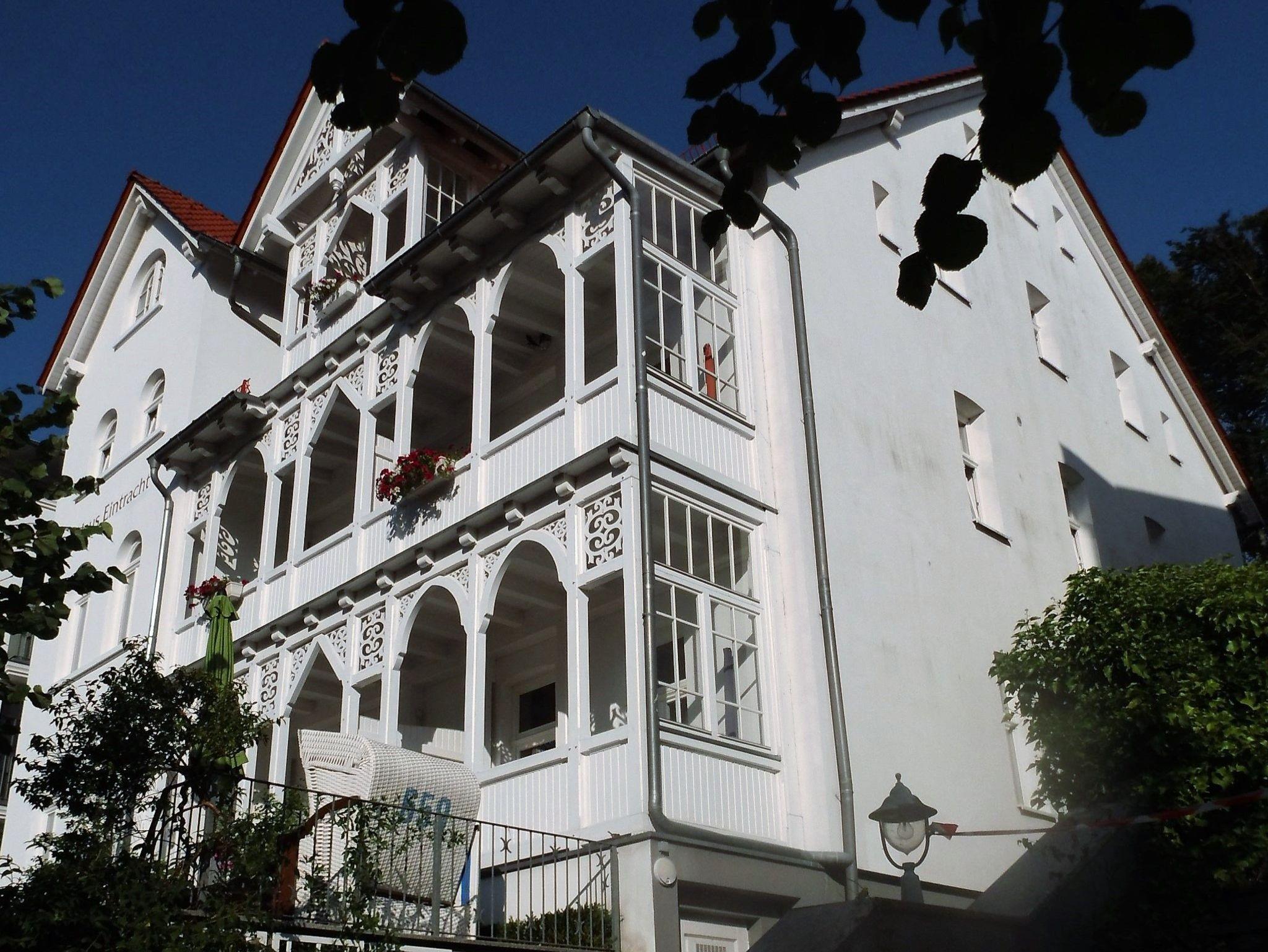 Das Haus „Eintracht befindet sich an der denkmalgeschützten Wilhelmstraße, der Promenadenstraße Sellins, etwa 150 m von der Seebrücke und dem Strand entfernt, inmitten von Cafés, Restaurants und Bistros. Es ist ein traditionelles Haus in der typischen Bäderarchitektur und wurde komplett renoviert. 12 komfortable, moderne Ferienwohnungen für bis zu 6 Personen befinden sich hier, von denen einige über Balkons zur Sonnenseite verfügen, andere über geschlossene Veranden. Die Küchen sind reichhaltig ausgestattet und verfügen alle über einen Backofen und teilweise über einen Geschirrspüler.