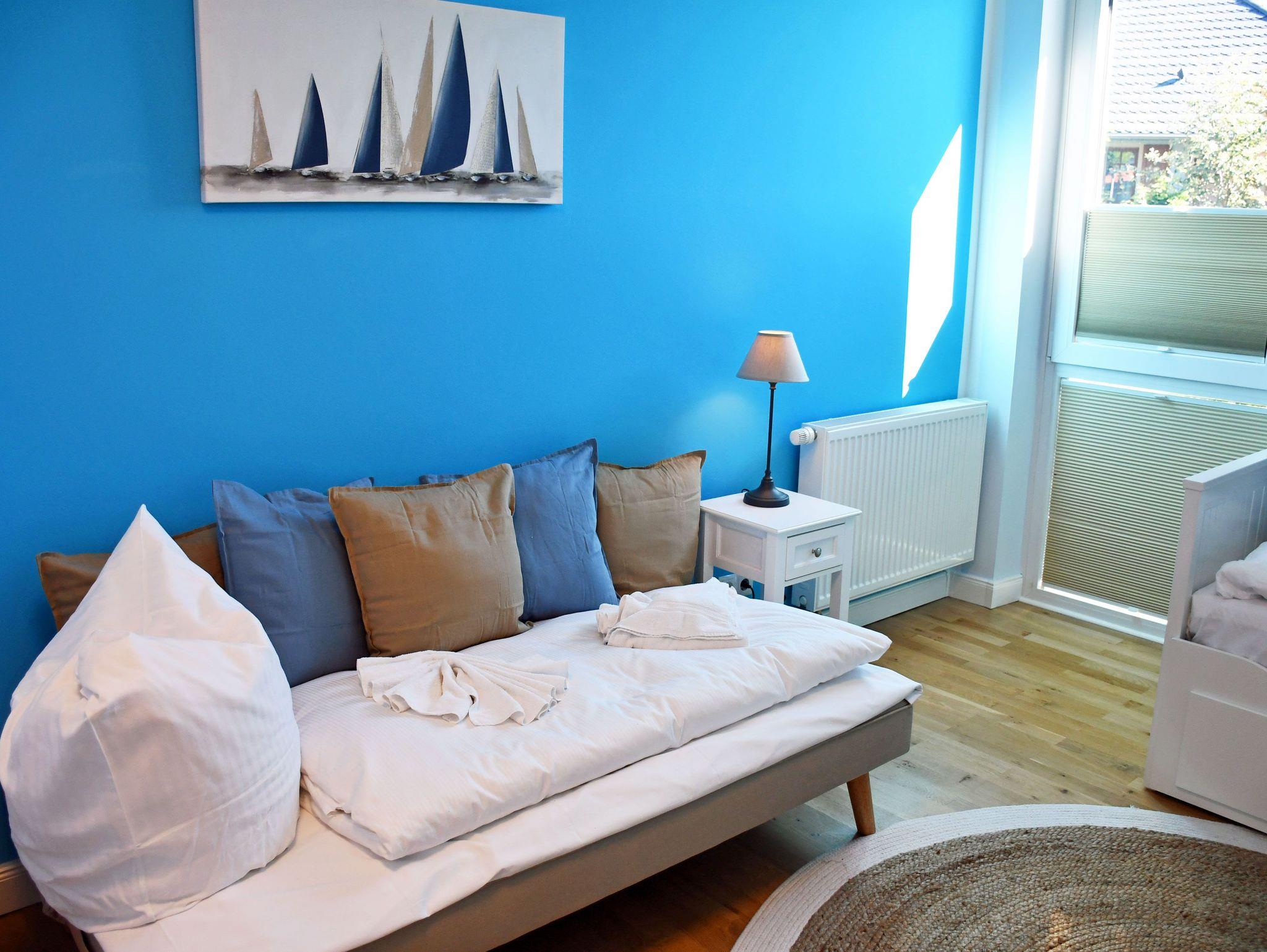 Unsere Maisonett-Ferienwohnungen 64 bietet Platz für 6 Gäste und ein Kind bis 3 Jahre im Kinderreisebett, sie wurden 2022 komplett renoviert und neu im modernen nördlich maritimen Stil eingerichtet.