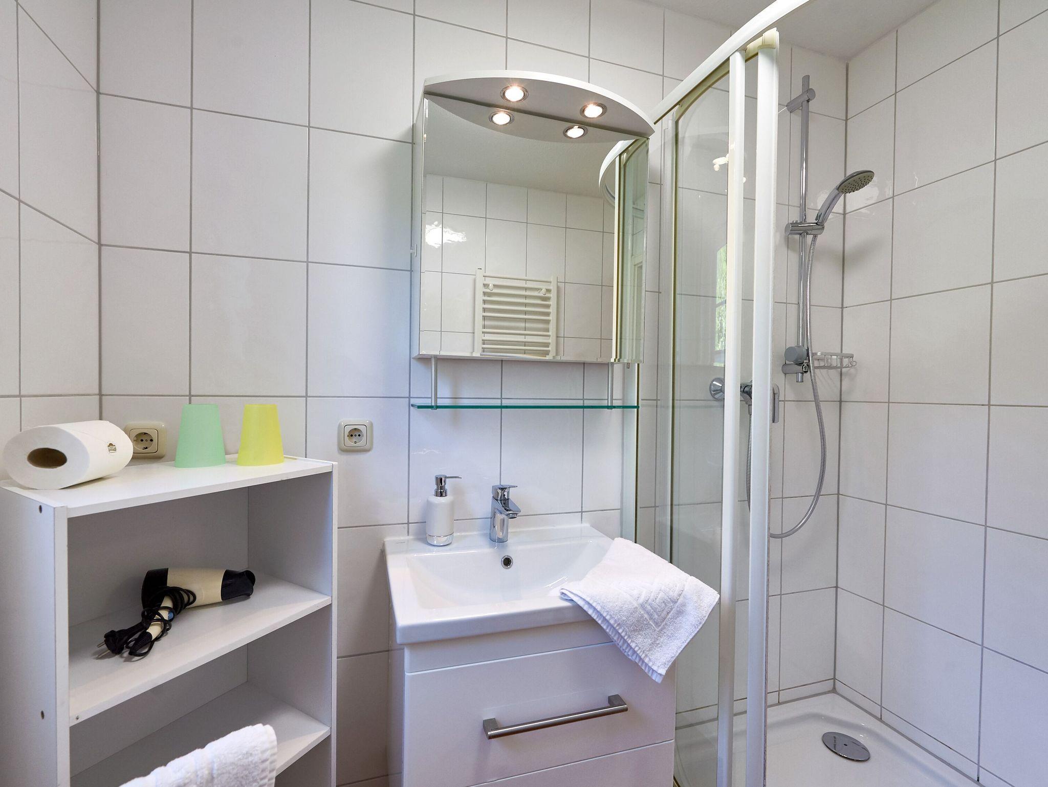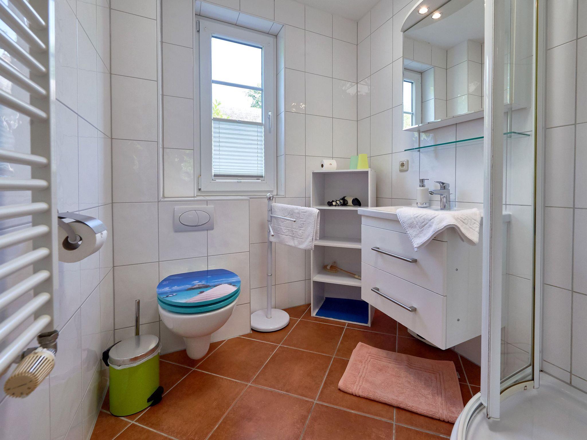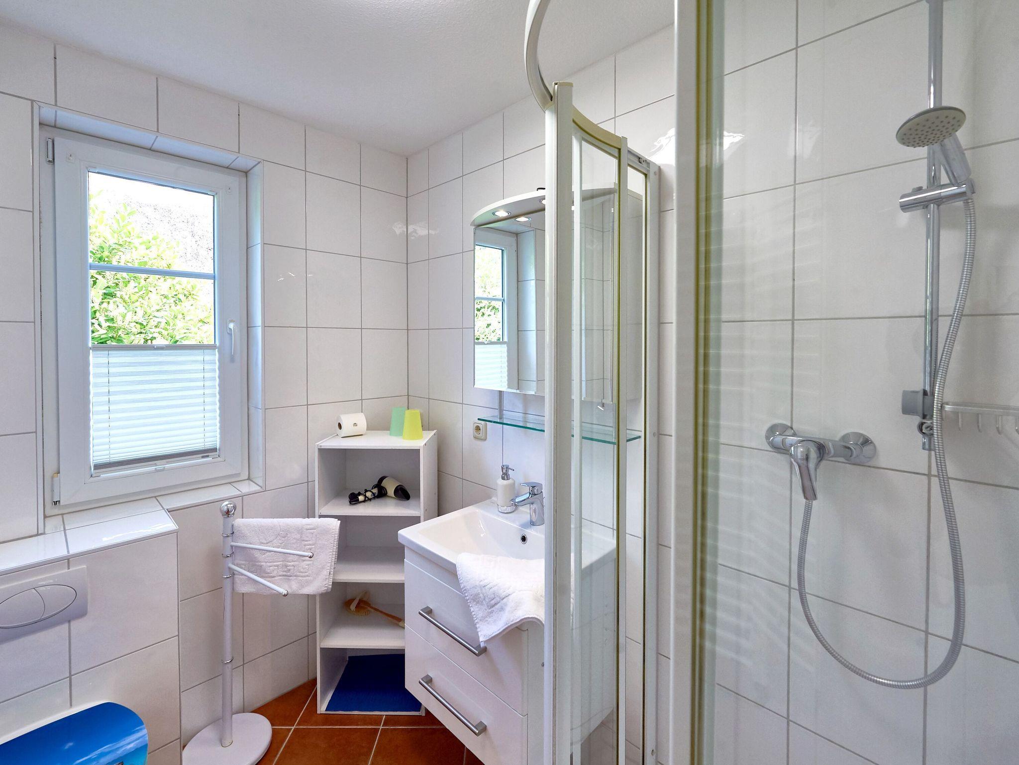 Weiterhin verfügt die Wohnung über ein Badezimmer mit Dusche/WC und ein separates Schlafzimmer mit einem komfortablen Doppelbett und einem Kleiderschrank für Ihre Urlaubsgarderobe.