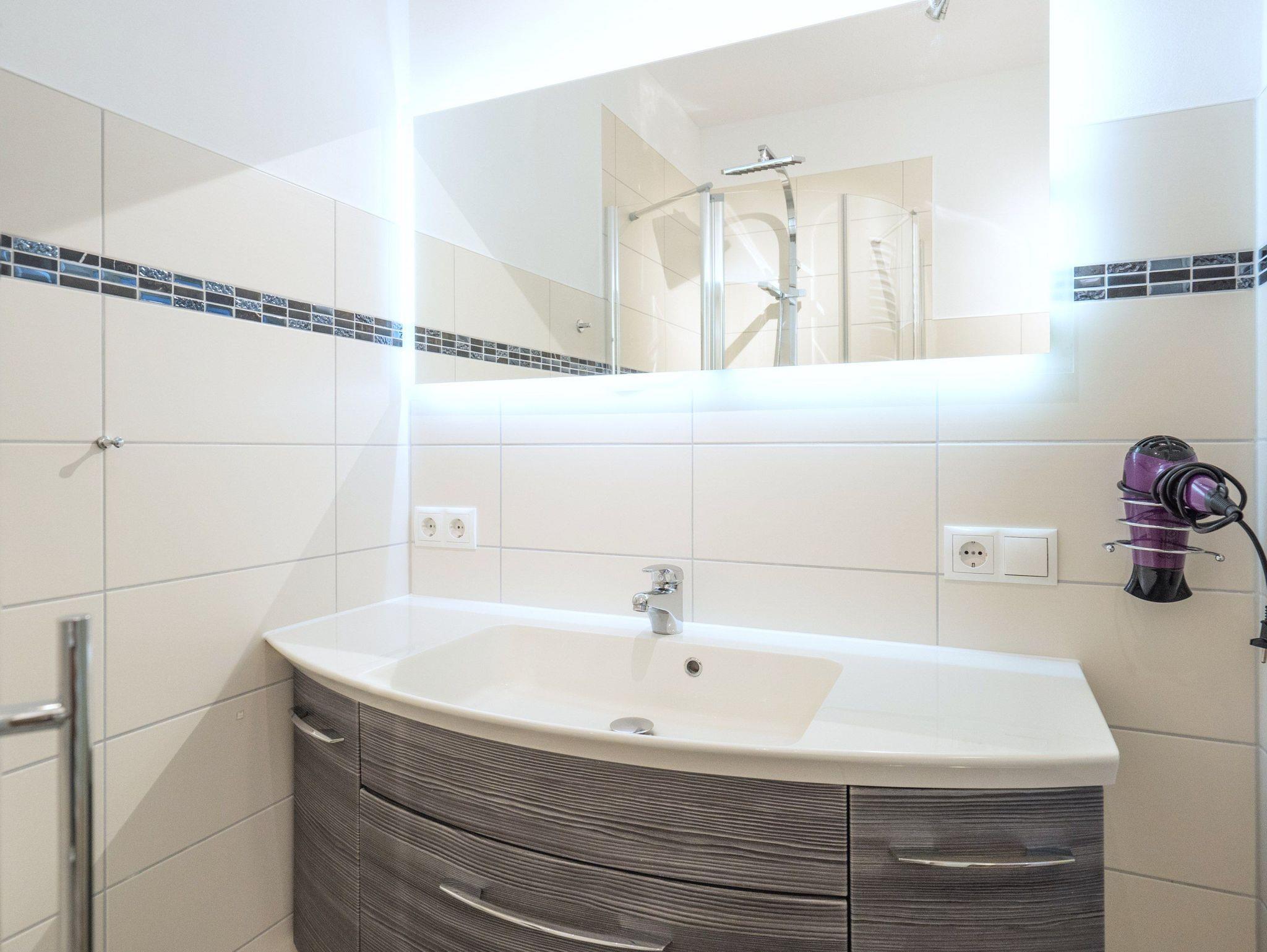 Die Ferienwohnung verfügt über kostenfreies WLAN und die Erstausstattung an Bettwäsche ist inklusive. Das Schlafzimmer mit Verdunklung verfügt über ein Doppelbett, im Wohnzimmer befindet sich zusätzlich eine Doppelschlafcouch. Darüber hinaus verfügt die Ferienwohnung über ein Bad mit Dusche, Föhn sowie ein separates WC. Die voll ausgestattete, offene Küche mit Backofen, Mikrowelle, Geschirrspüler, Kaffeemaschine und Toaster lässt keine Wünsche offen. Ein Fernseher inkl. 3 Sky-Sender rundet die hochwertige Einrichtung ab.
