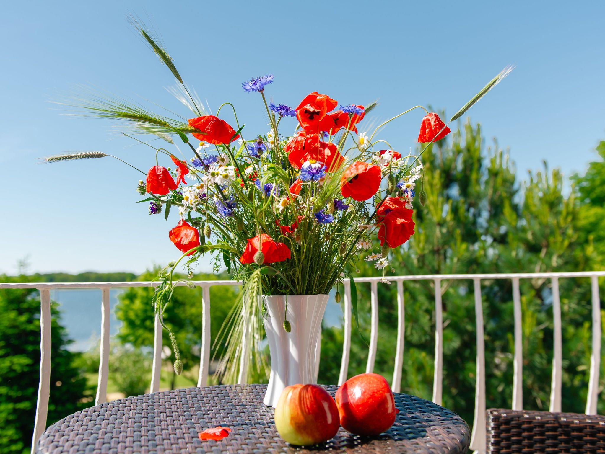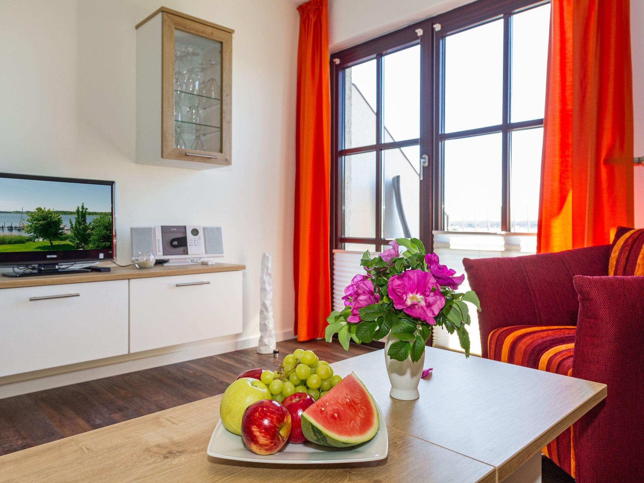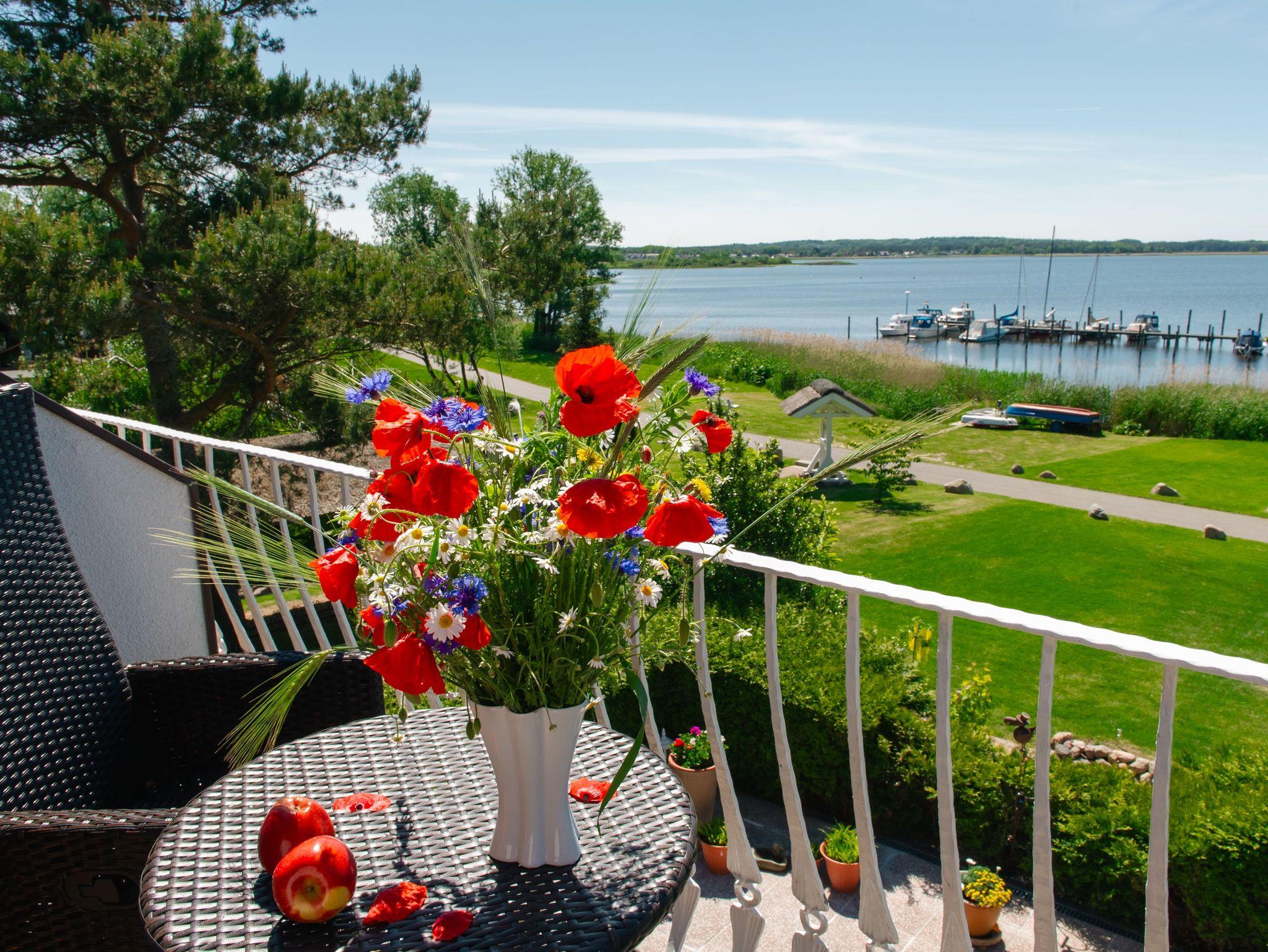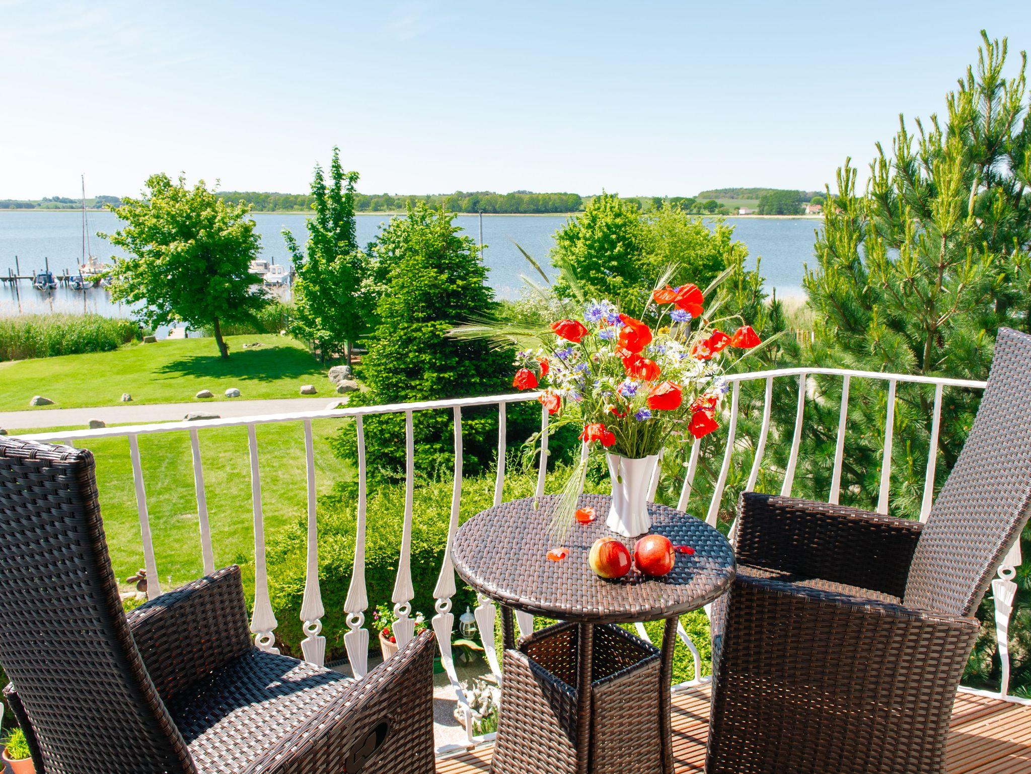 Zum diesem Appartement gehört auch ein schöner Balkon (Südseite) mit modernen Terrassenmöbeln. Von hier aus haben sie einen herrlichem Ausblick über den Selliner See. Hier sind die Sonnenuntergänge einzigartig. Kurtaxe ist vor Ort zu entrichten.