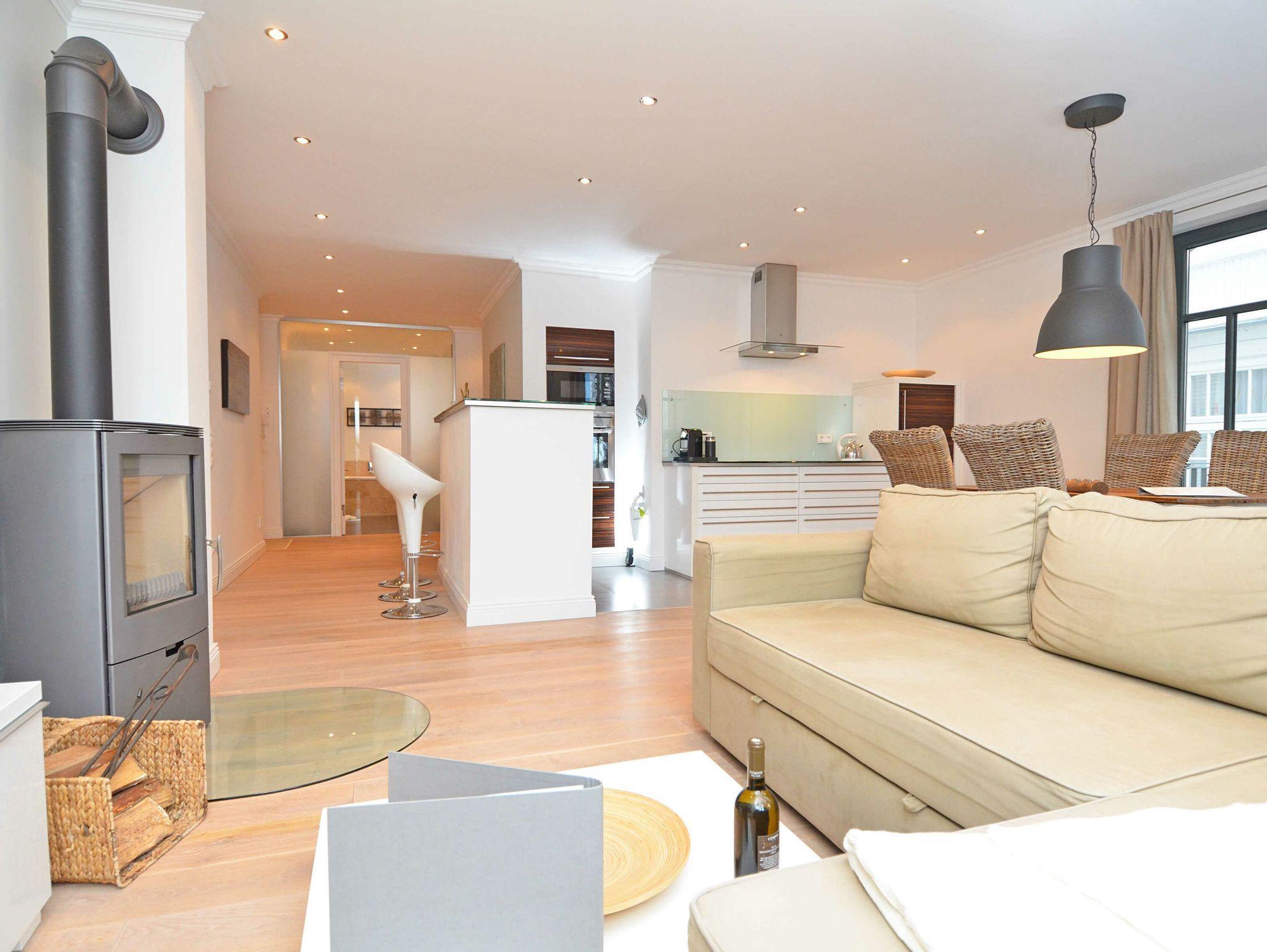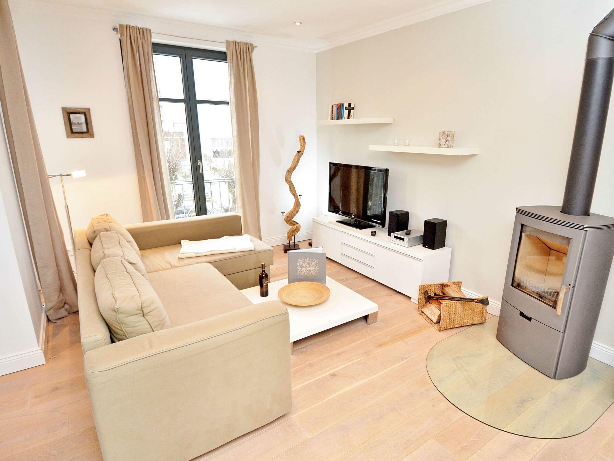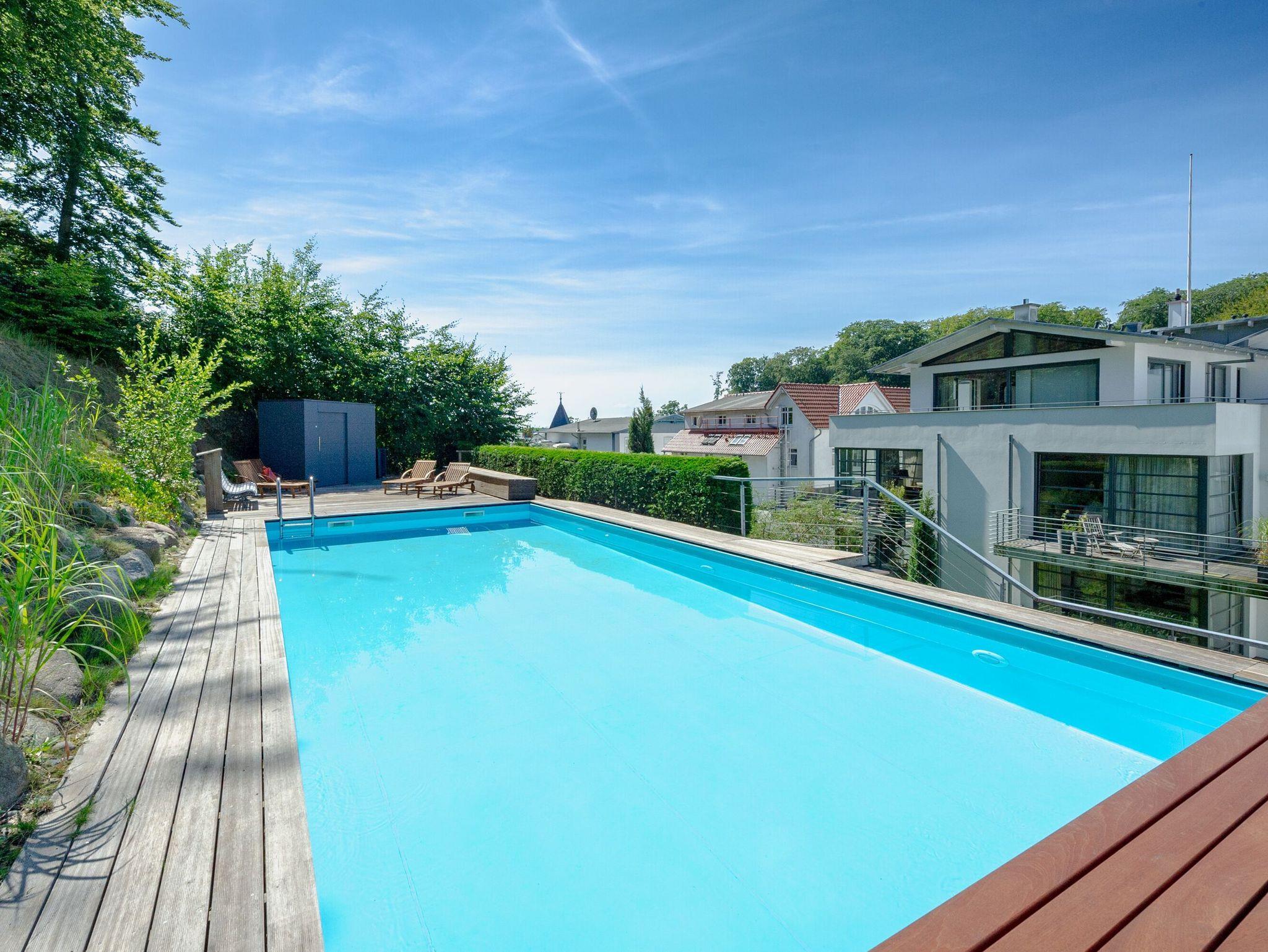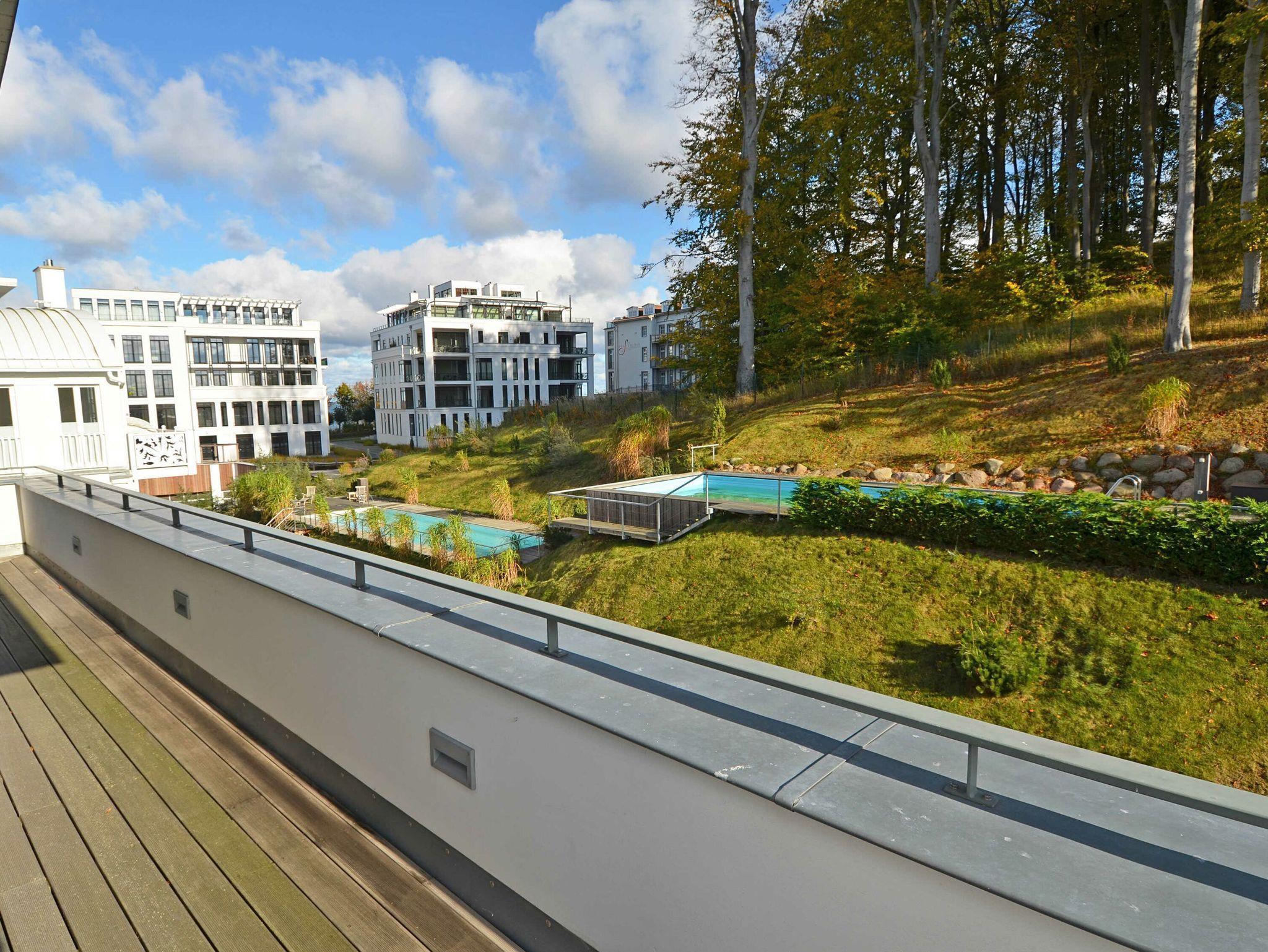 Das großzügige Appartement besitzt einen West-Balkon mit Blick auf die Wilhelmstrasse sowie eine großzügige, geschützte und sonnige über 20m² große Gartenterrasse. Genießen Sie den Frühling mit einem ausgedehnten Frühstück auf der eigenen Sonnenterasse oder nehmen Sie im villeneigenen Pool ein entspannendes Bad an warmen Sommertagen. Genießen Sie die ersten Herbststürme am prasselnden Kaminfeuer oder einen herrlich verschneiten Jahreswechsel mit Feuerwerk über dem Meer.