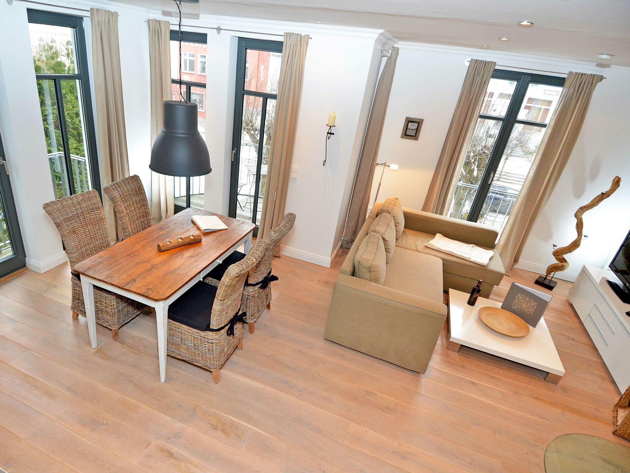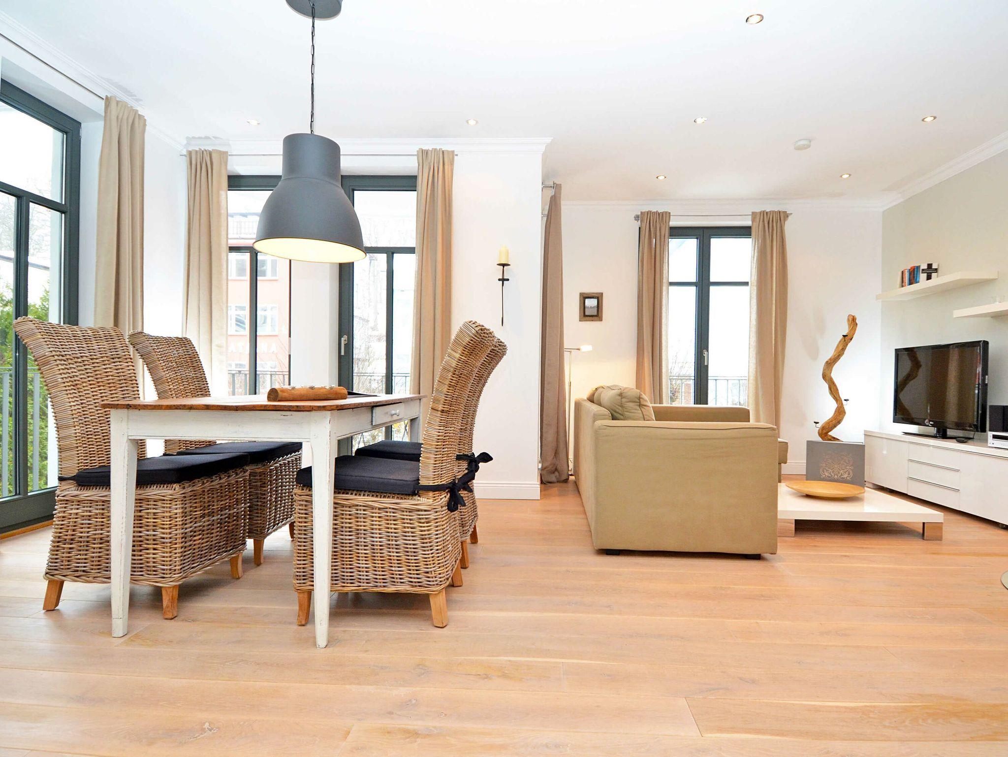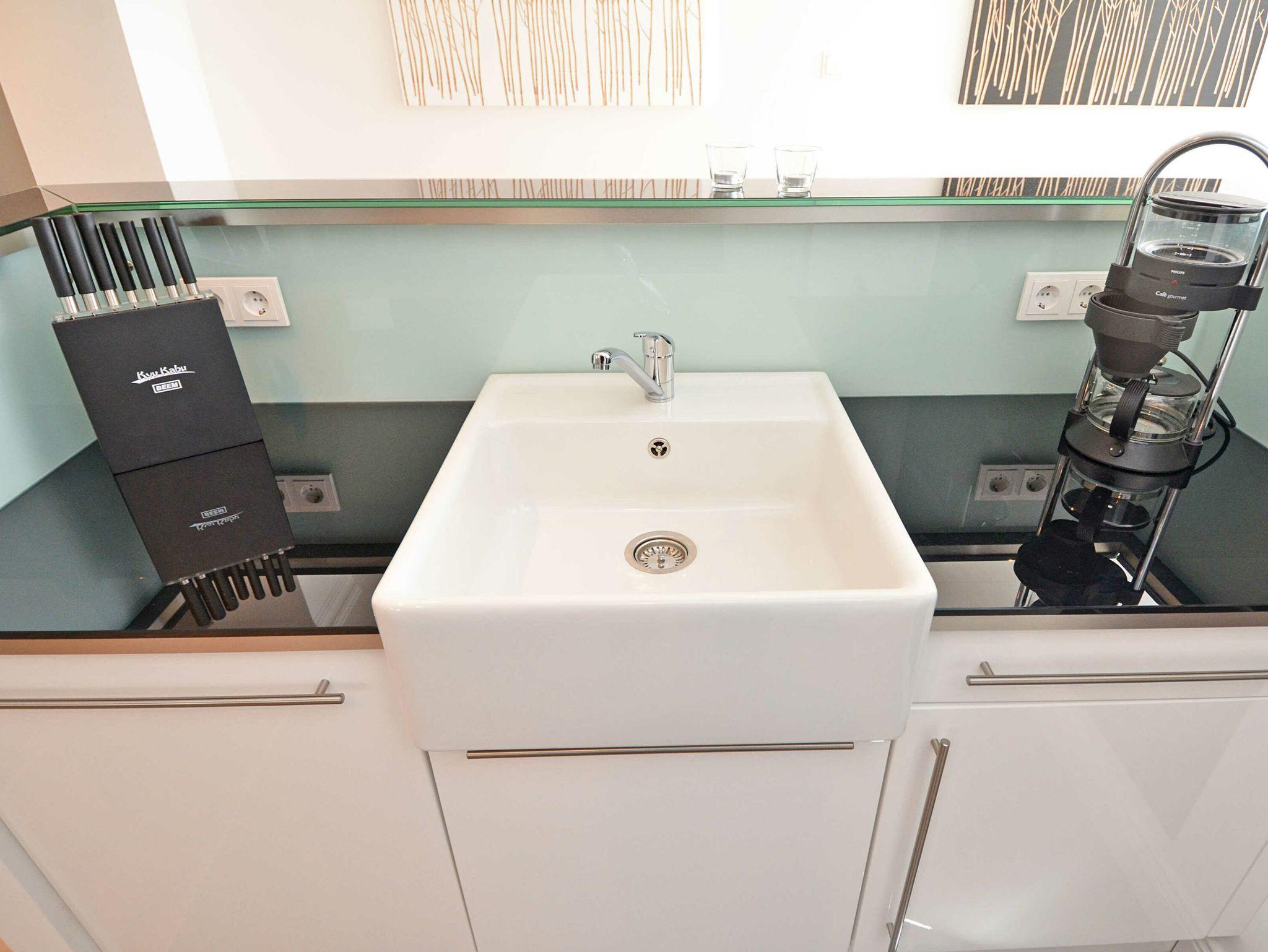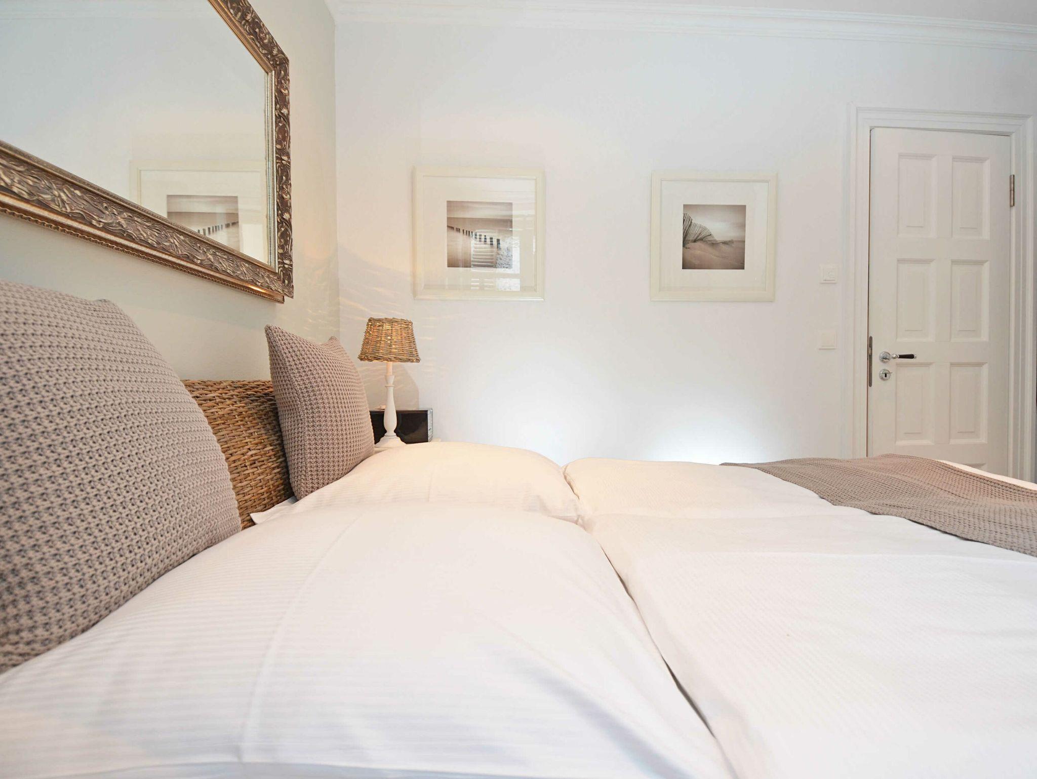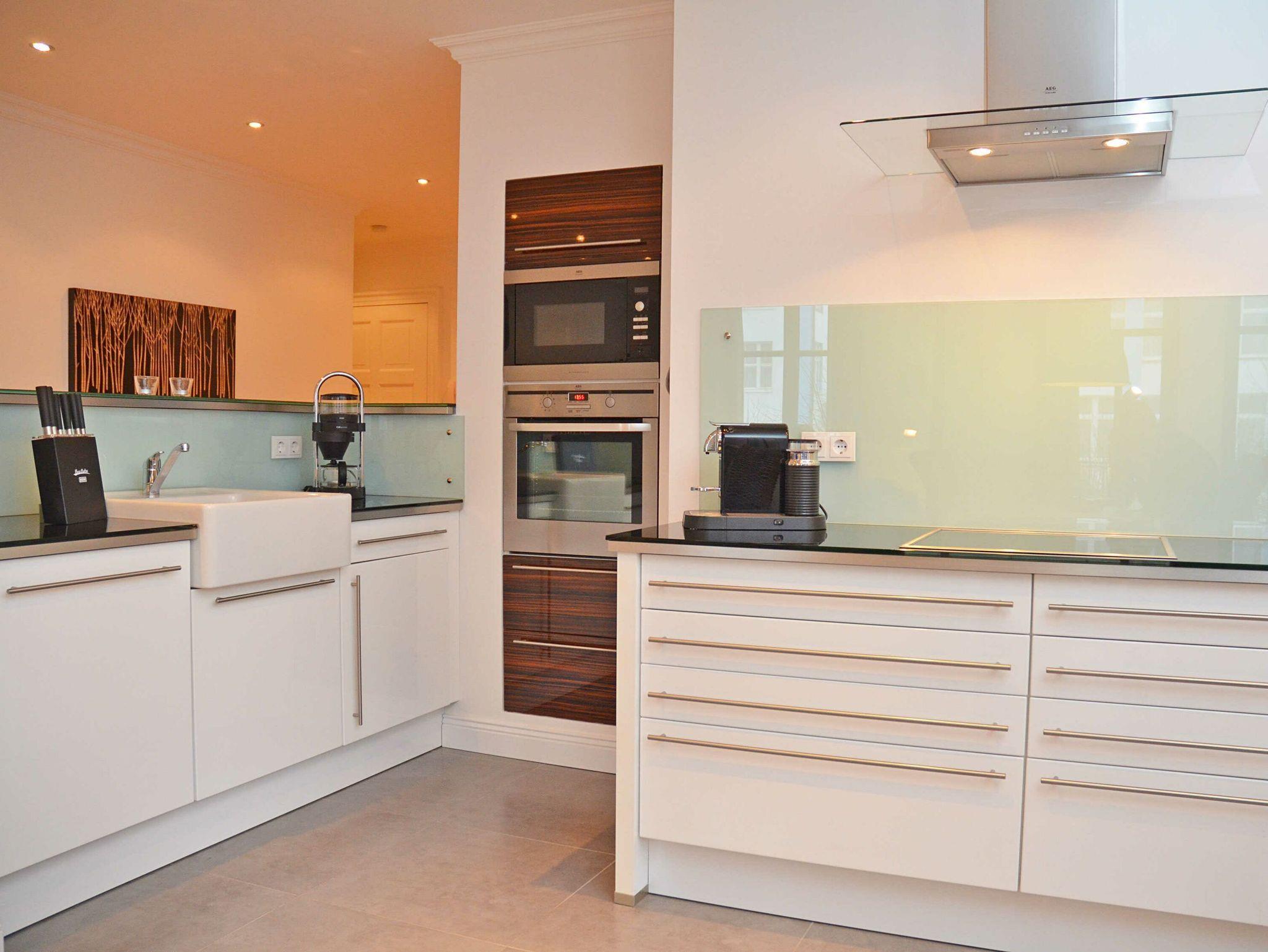 Das großzügige Appartement besitzt einen West-Balkon mit Blick auf die Wilhelmstrasse sowie eine großzügige, geschützte und sonnige über 20m² große Gartenterrasse. Genießen Sie den Frühling mit einem ausgedehnten Frühstück auf der eigenen Sonnenterasse oder nehmen Sie im villeneigenen Pool ein entspannendes Bad an warmen Sommertagen. Genießen Sie die ersten Herbststürme am prasselnden Kaminfeuer oder einen herrlich verschneiten Jahreswechsel mit Feuerwerk über dem Meer.