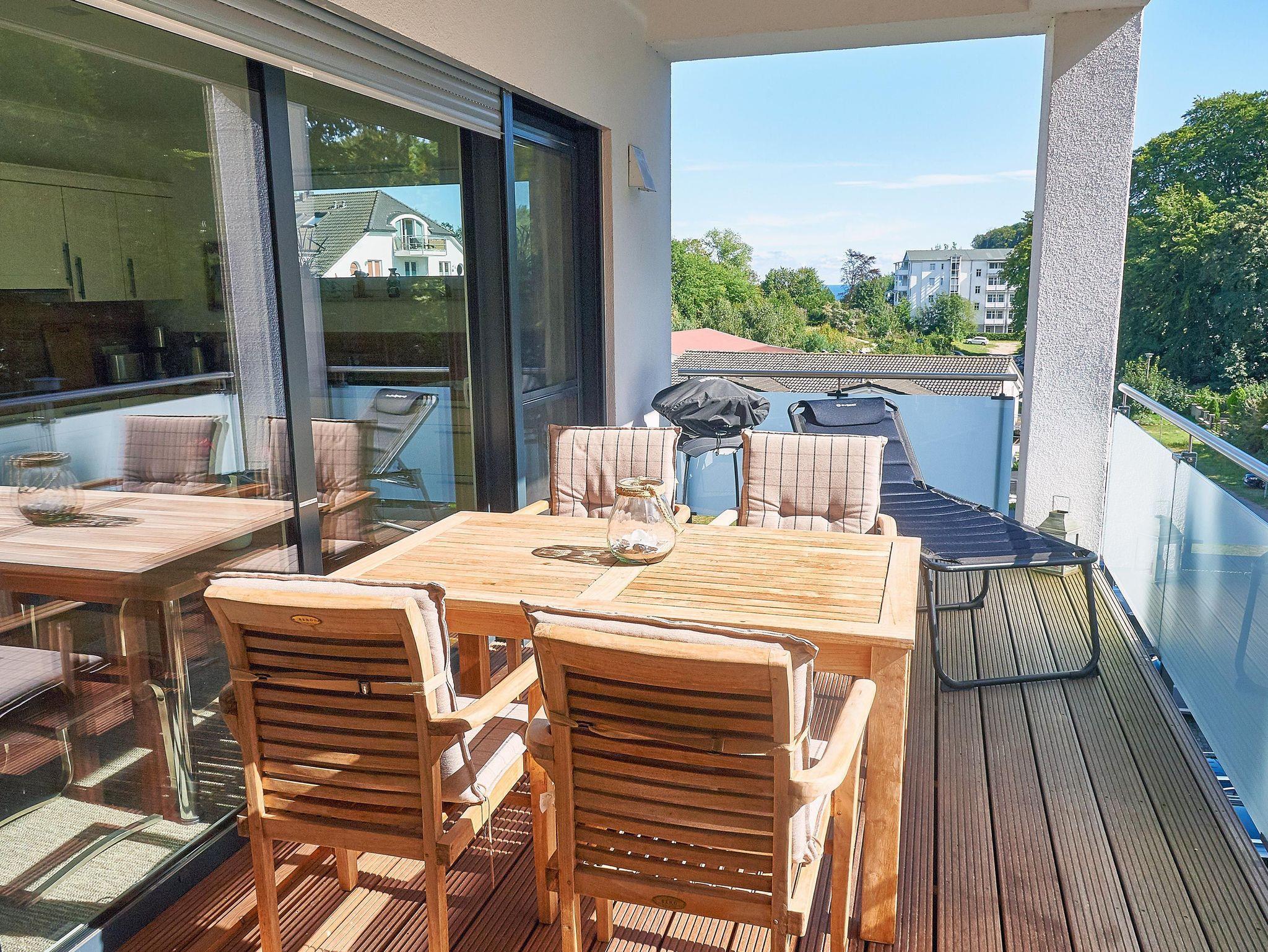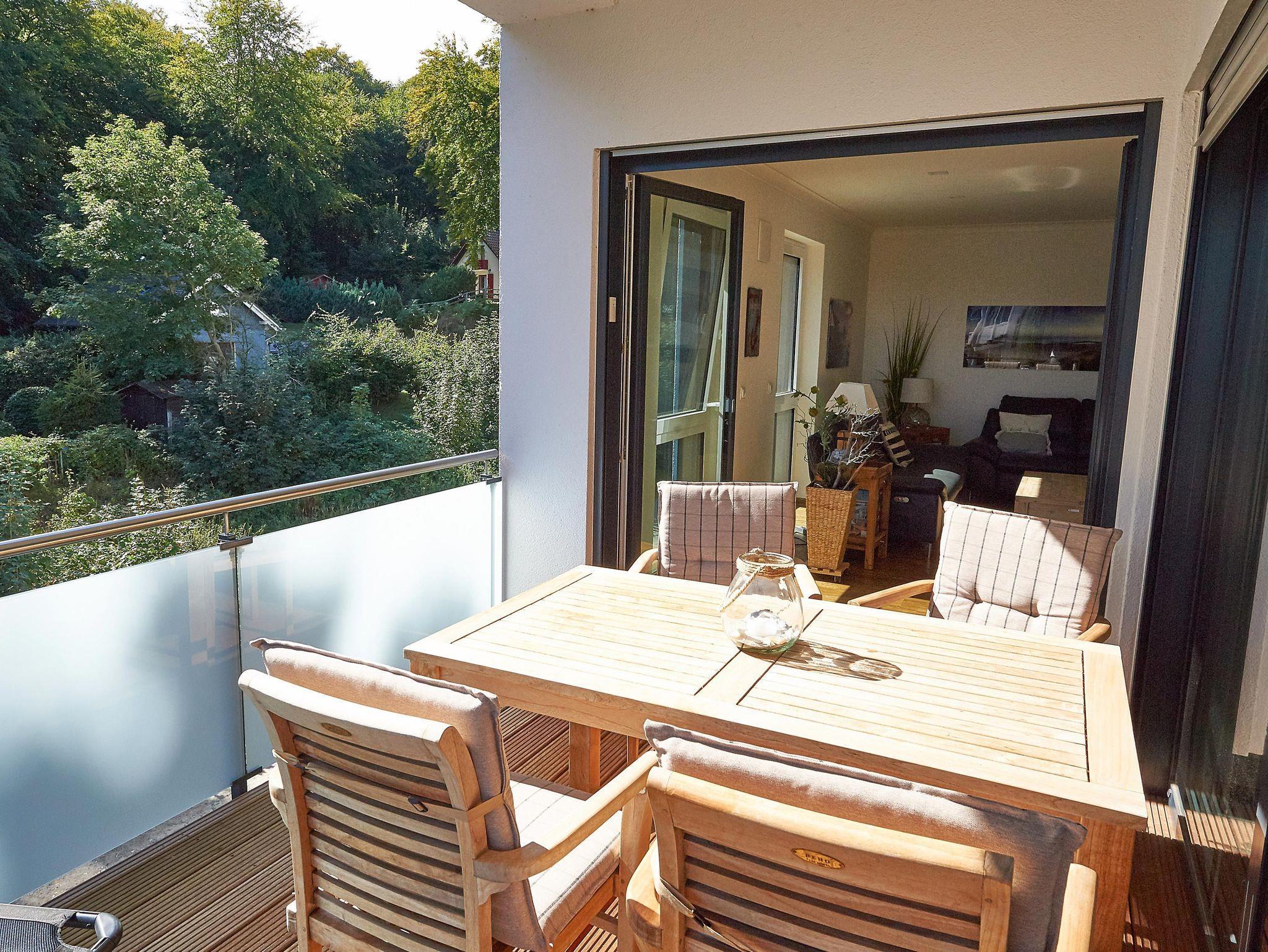 Der große Balkon (ca. 13m²) ist von Küche und Wohnzimmer zugänglich. Er eignet sich sehr gut zum Frühstücken oder relaxen. Nutzen Sie gerne die gemütliche Sitzgruppe und den dort vorhandenen Weber-Elektrogrill.