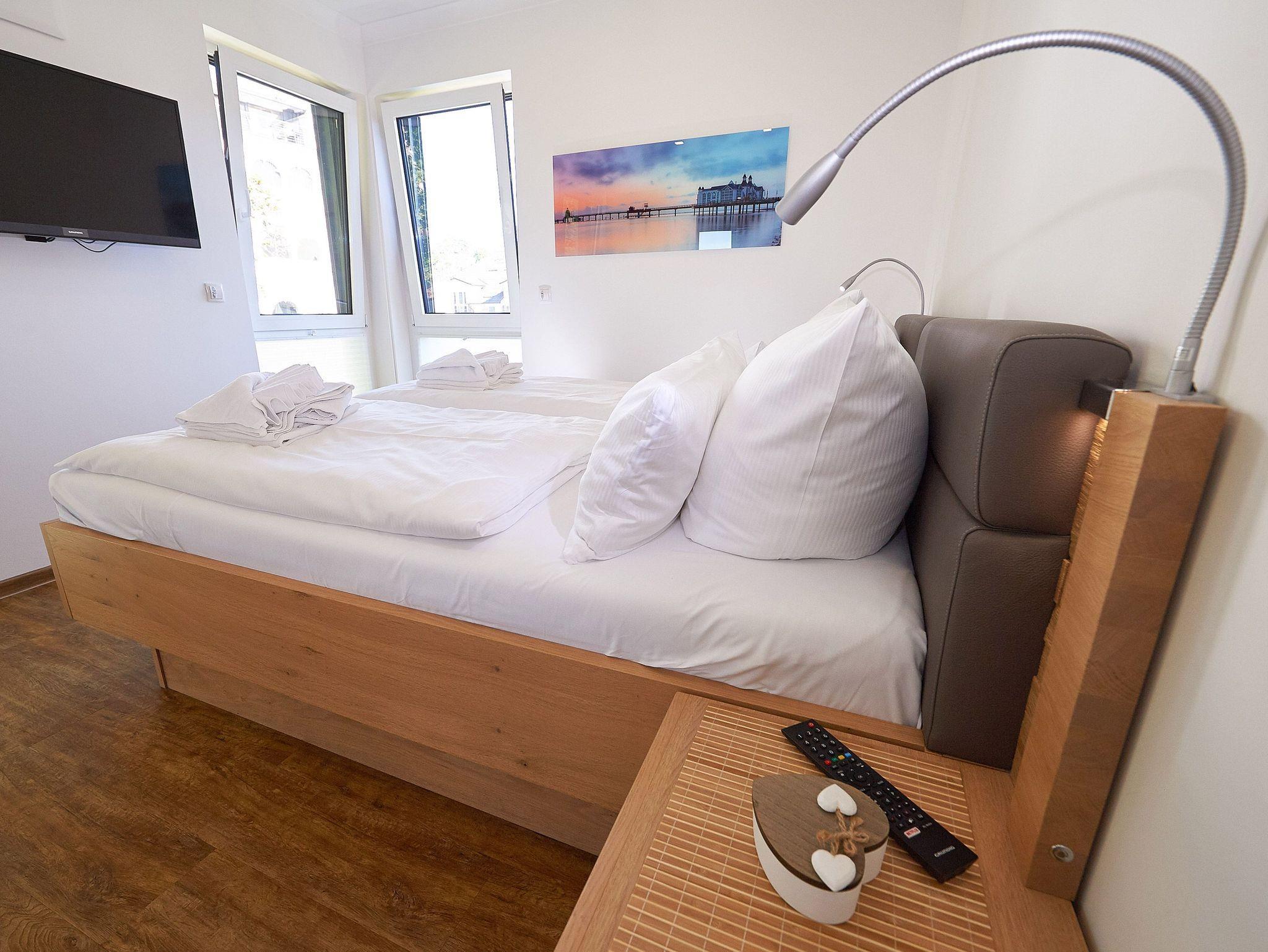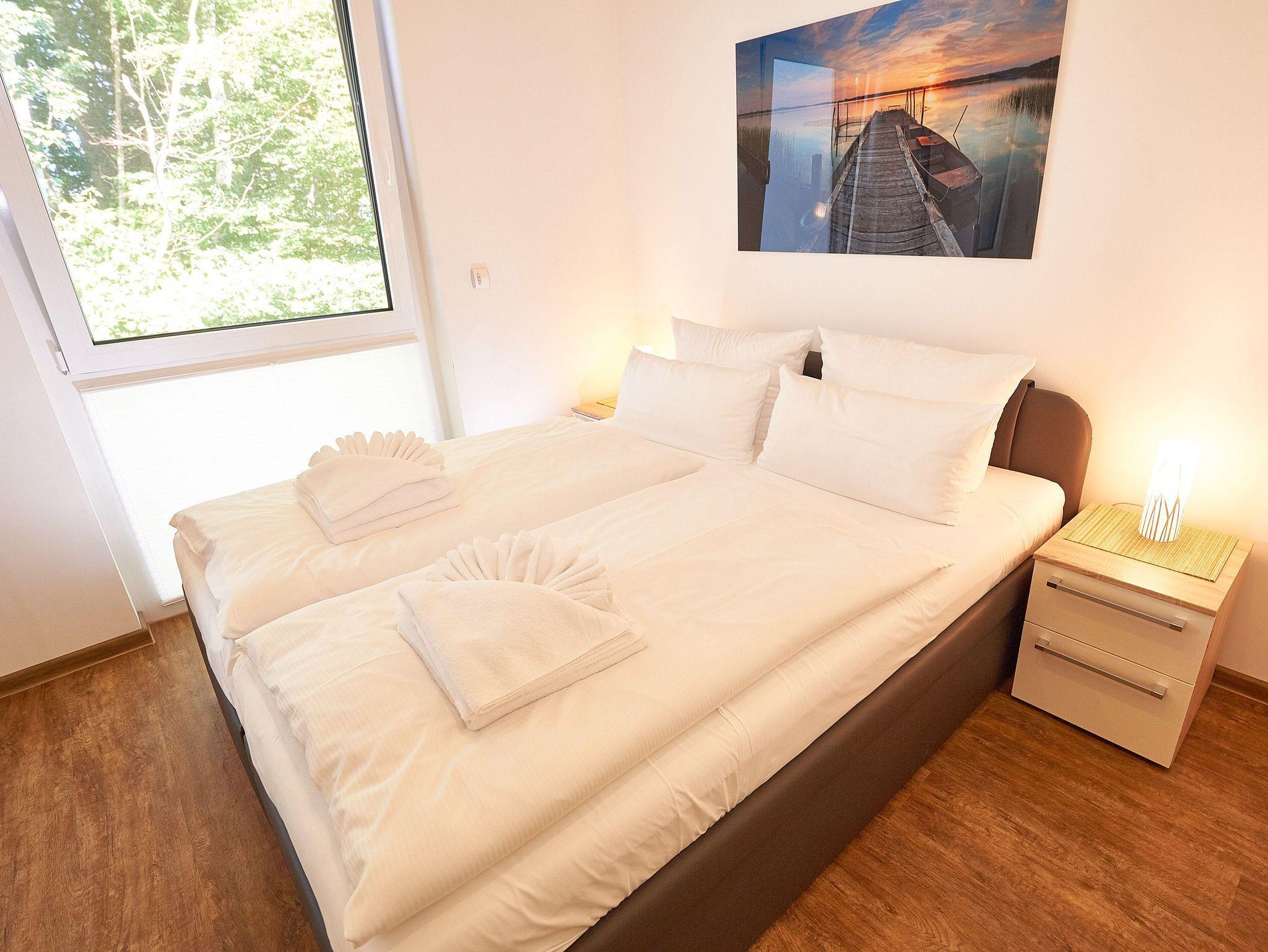 Das Doppelbett im zweiten Schlafzimmer kann wahlweise auch in zwei Einzelliegen aufgeteilt werden.
