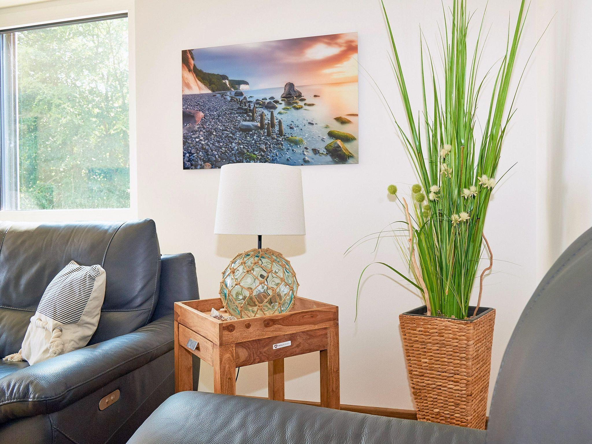 Der Wohn- und Essbereich (ca. 44m²) ist mit einer bequemen Ledersitzgruppe und einem 58 UHD SMART-TV ausgestattet.
