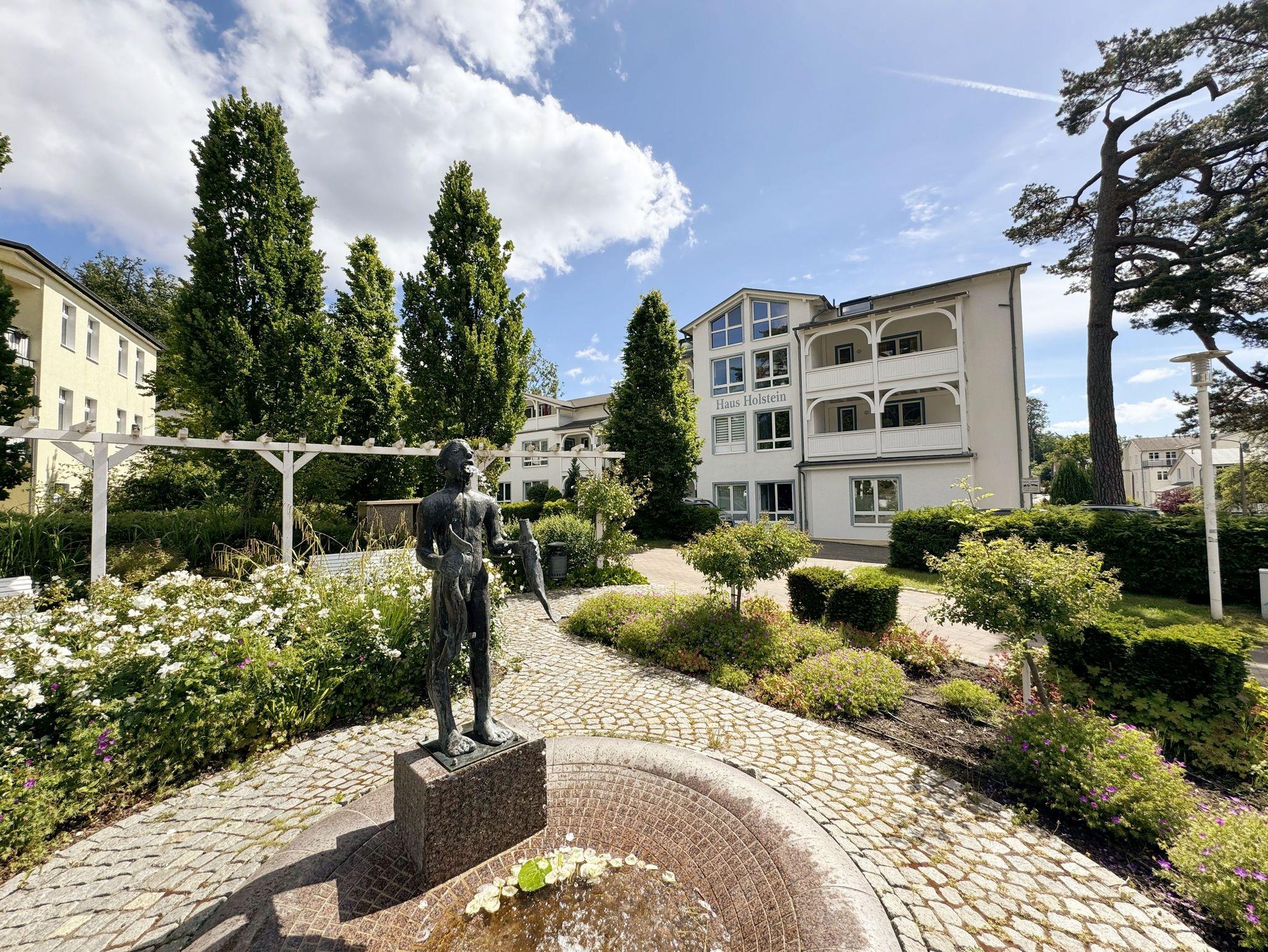 Das Haus Holstein wurde im Stile der Bäderarchitektur errichtet. Es liegt zentral und zugleich ruhig in der Hermannstraße im Ostseebad Sellin. Sie erreichen in unmittelbarer Nähe nach etwa 100 Metern die Flaniermeile Wilhelmstraße, die direkt zur Seebrücke und damit nach etwa 300 Metern von Ihrem Appartement zum Ostseestrand führt. Direkt neben dem Gebäude gelangen Sie durch den erweiterten Kurpark unter anderem zur Kurverwaltung. Ebenfalls schnell und fußläufig erreichen Sie Bäckereien, tolle Cafés, eine Drogerie oder einen Fahrradverleih. Sellin sticht durch ein großes Angebot an touristischen Möglichkeiten heraus. So können Sie ganzjährig das Freizeitschwimmbad mit Saunalandschaft und saisonal die Wasserrutschen nutzen. Von Ihrer Ferienwohnung können Sie die Erkundung der sonnenreichen Insel Rügen in alle Richtungen starten. Besuchen Sie Binz als Nachbarort oder das Jagdschloss Granitz. Erleben Sie die Störtebeker Festspiele vor einmaliger Kulisse des Jasmunder Boddens, radeln Sie ins einstige Fischerdorf Seedorf oder zur Halbinsel Mönchgut. Genießen Sie dort kilometerlange Sandstrände oder die Abgelegenheit und abendliche, natürliche Ruhe. Besuchen Sie Deutschlands größte Insel und machen Sie sich selbst Ihr schönstes Bild.